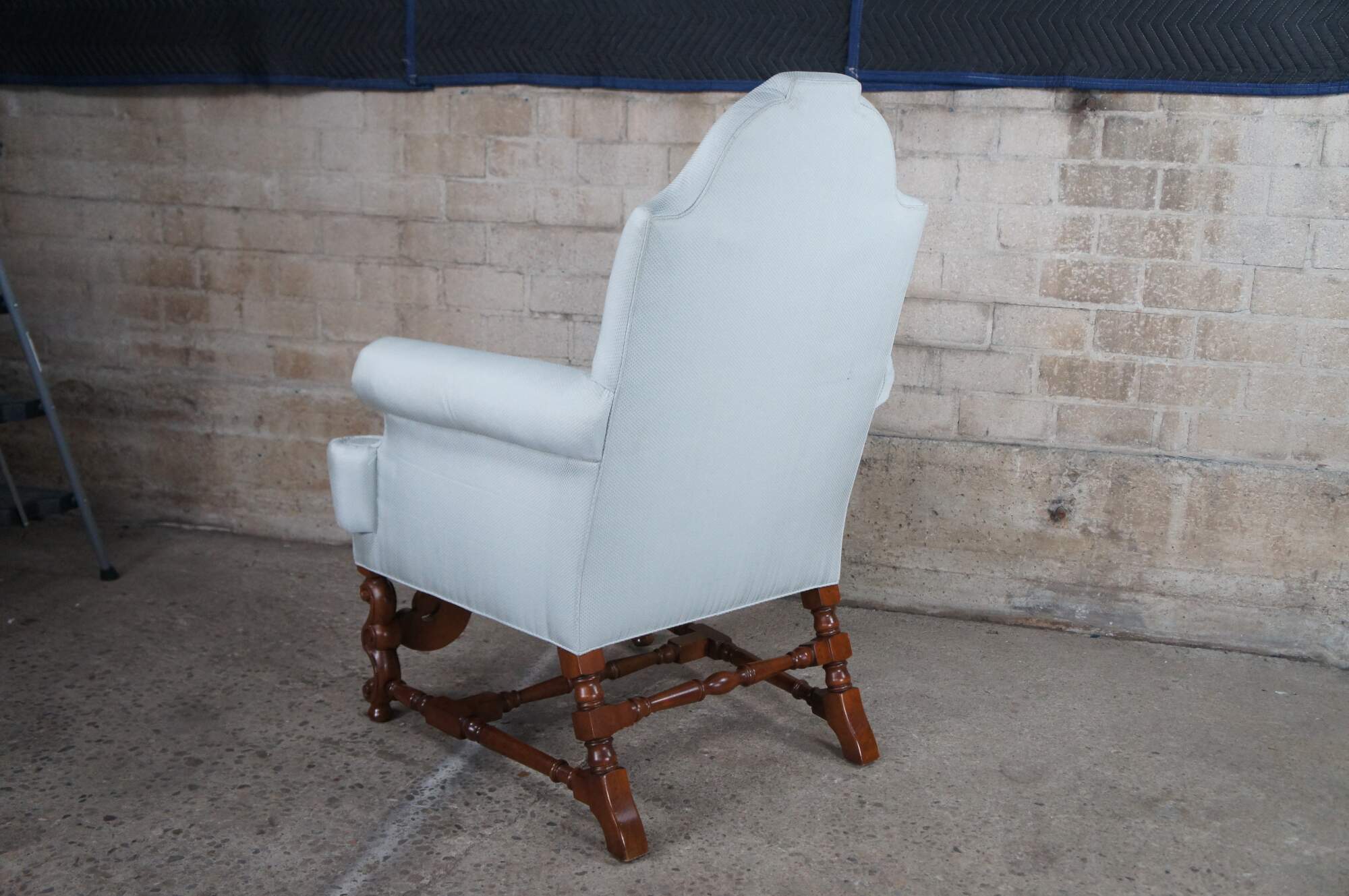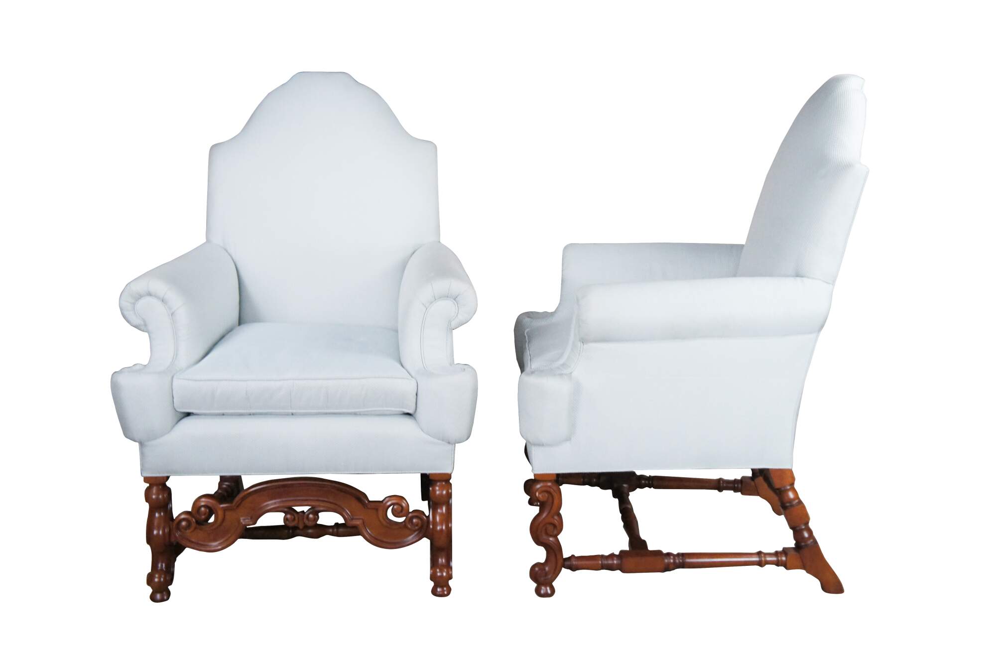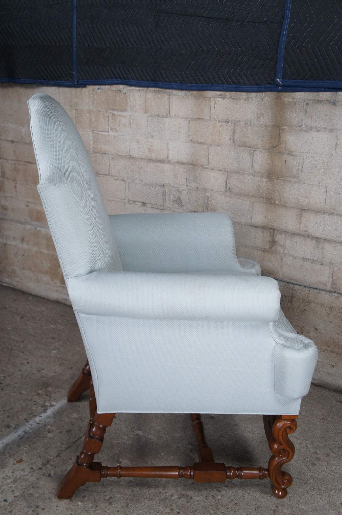 2 Baker William & Mary Style Walnut Club Lounge Library Arm Chairs