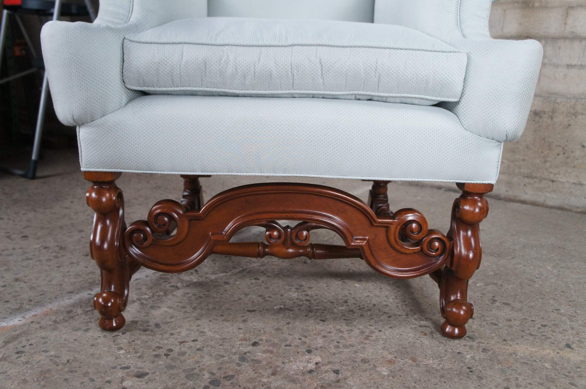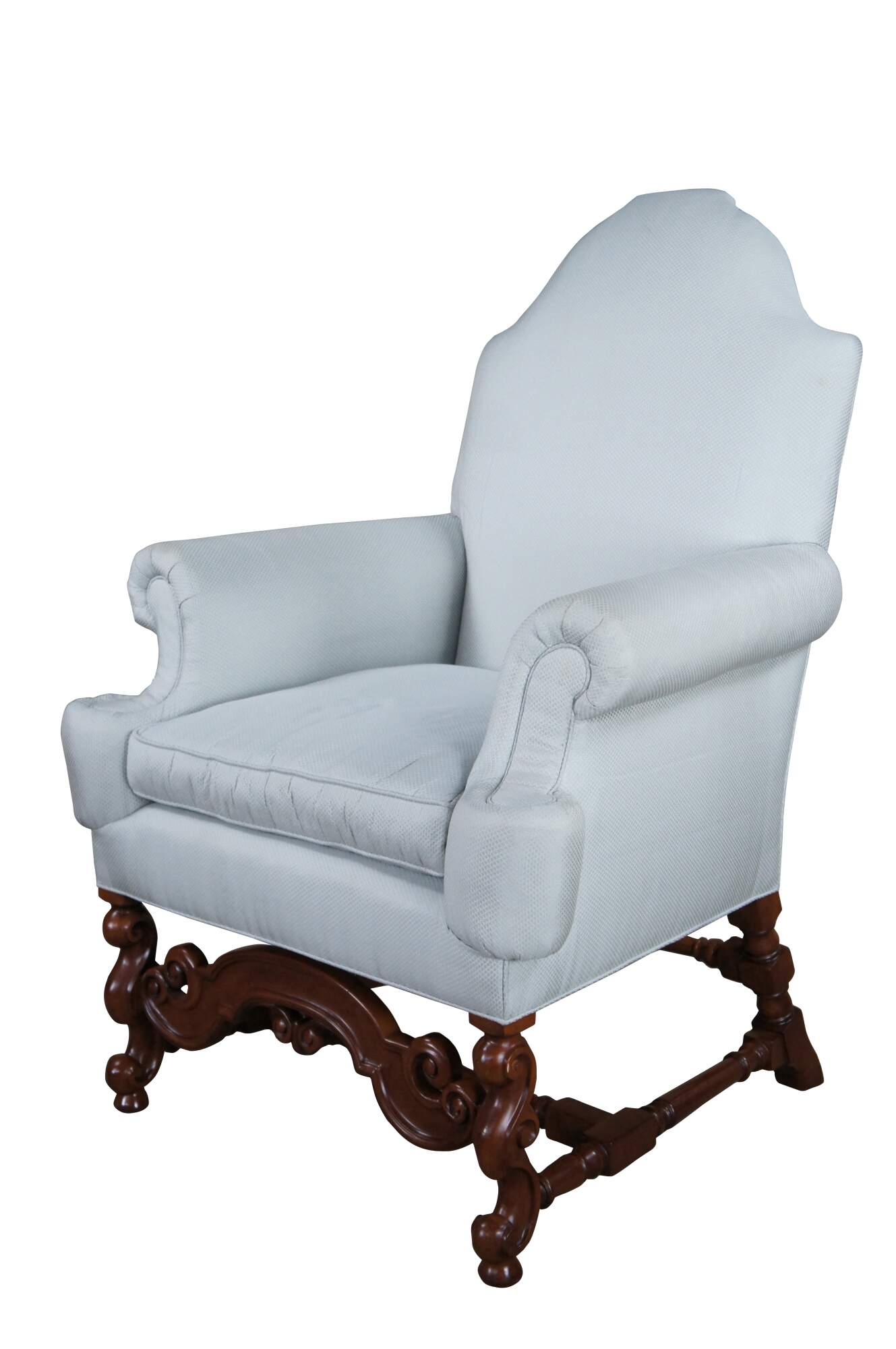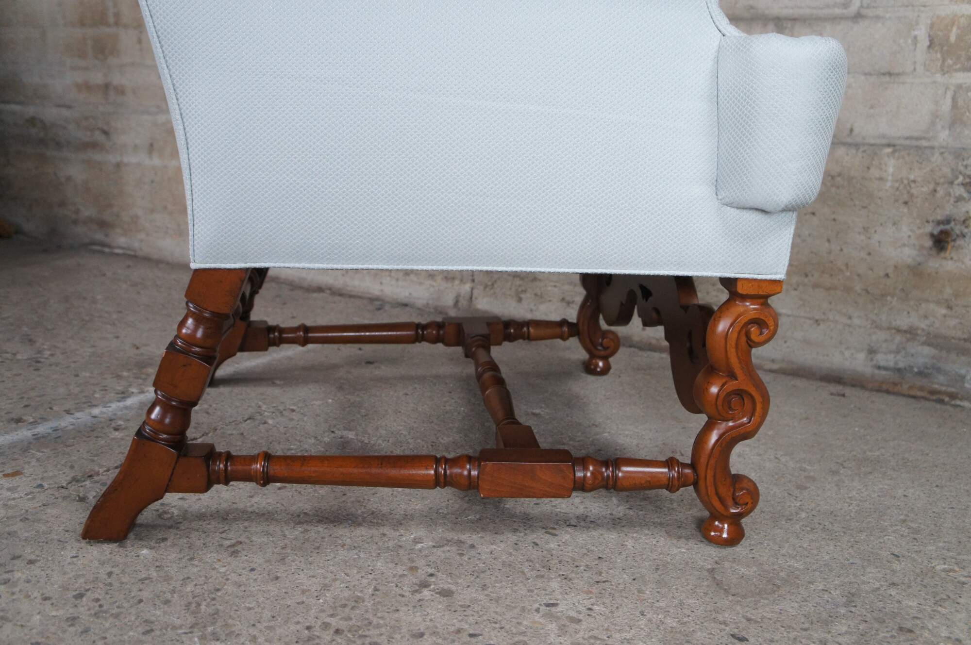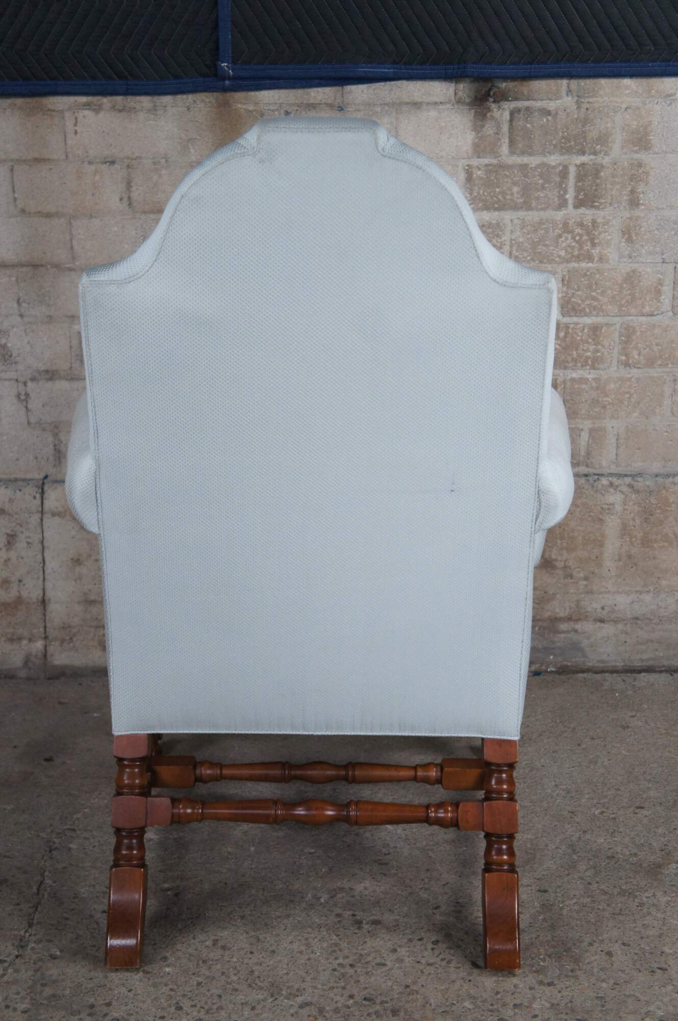 2 Baker William & Mary Style Walnut Club Lounge Library Arm Chairs