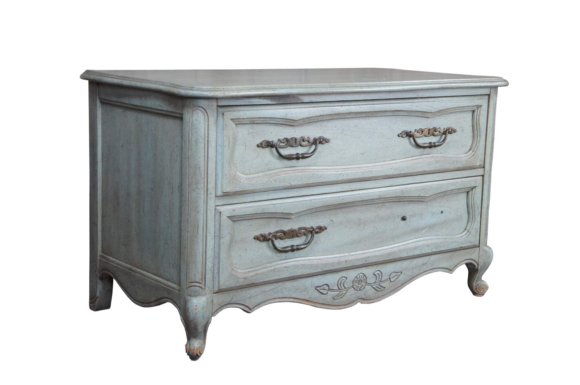 Fair condition, wear and distressing, finish / paint loss, broken / missing drawer pull.