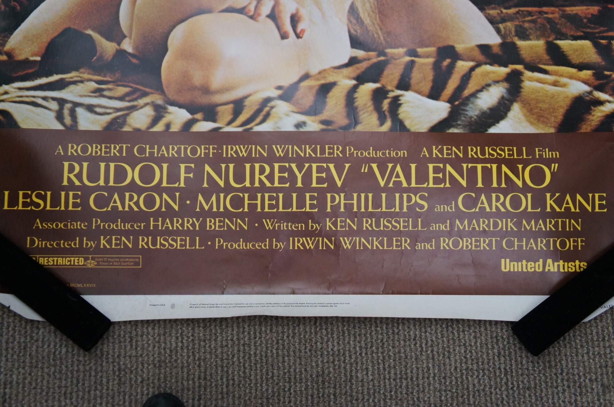 Vintage 1977 movie poster for "Valentino" starring Rudolf Nureyev, Leslie Caron, Michelle Phillips, Carol Kane. Directed by Ken russell. Produced by United Artists.