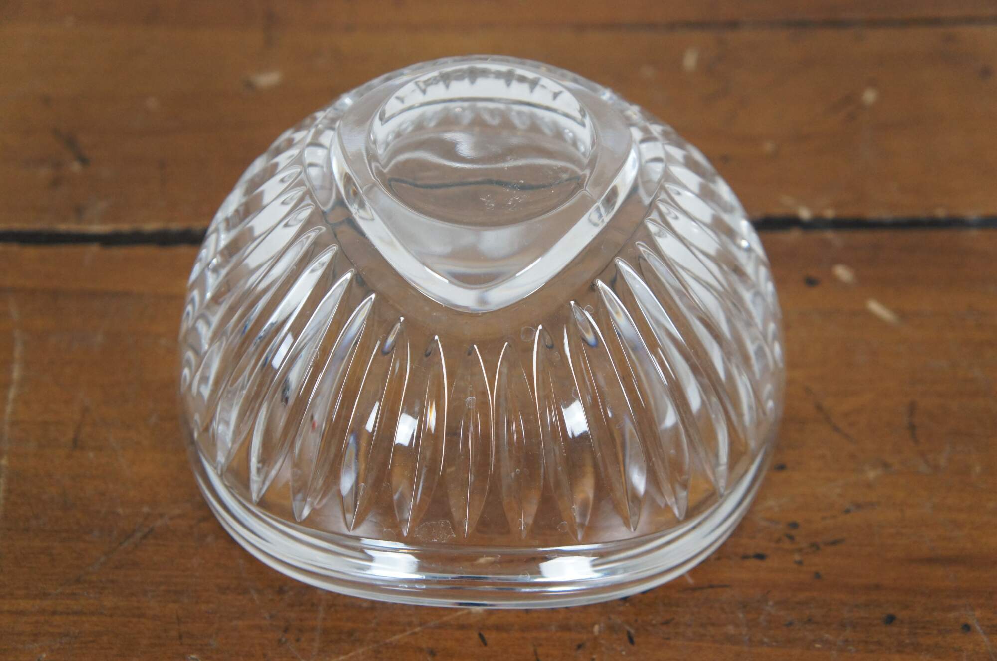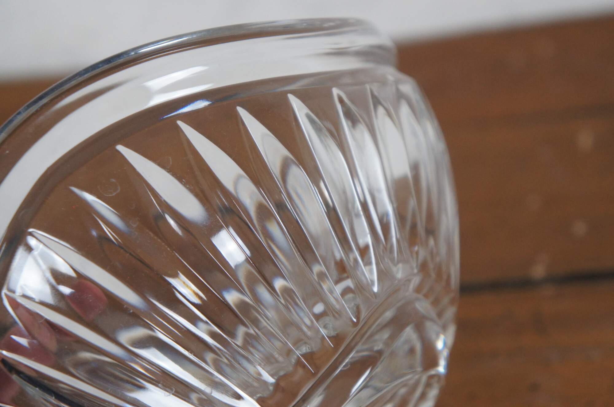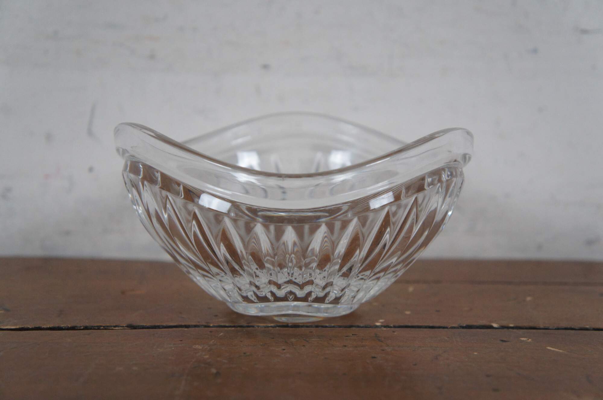 Late 20th century Mikasa crystal small serving dish / bowl in the Cimarron pattern, featuring a rounded triangular form with waveform rim and fluted texture on the sides.