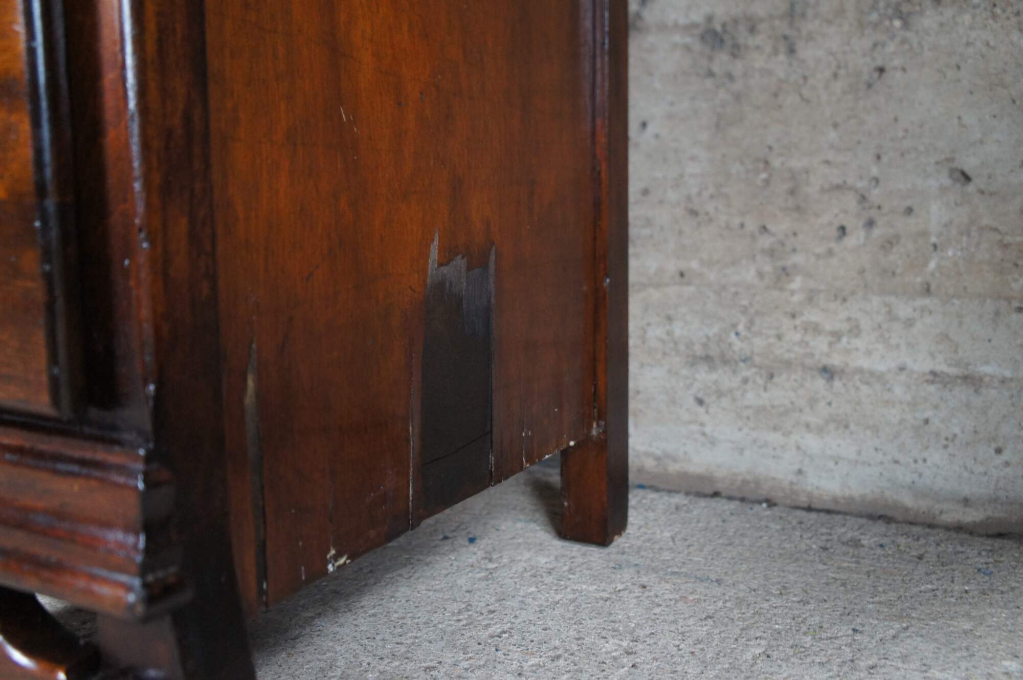 Fair condition, wear and distressing commensurate with age and use, some marking / scuffing, veneer damage / missing on sides.