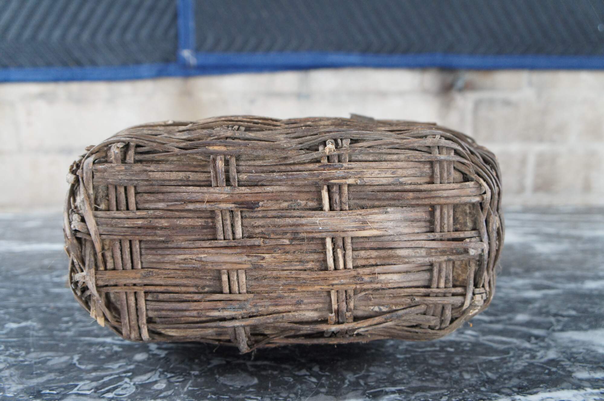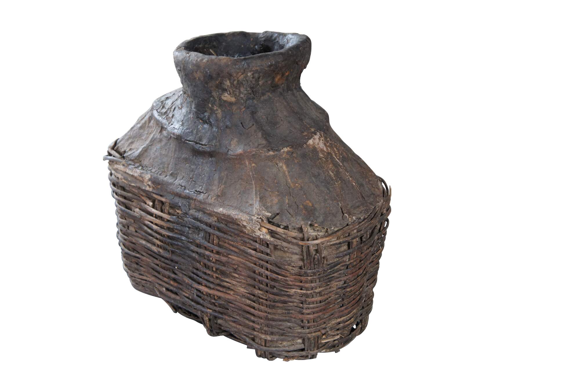 Early 20th Century Chinese Shanxi Willow Oil Container / Food Storage Vessel. Beautifully woven with natural patina from years of use. An unusual yet perfect decorative piece for display in a corner, on a bookcase or in a nook.