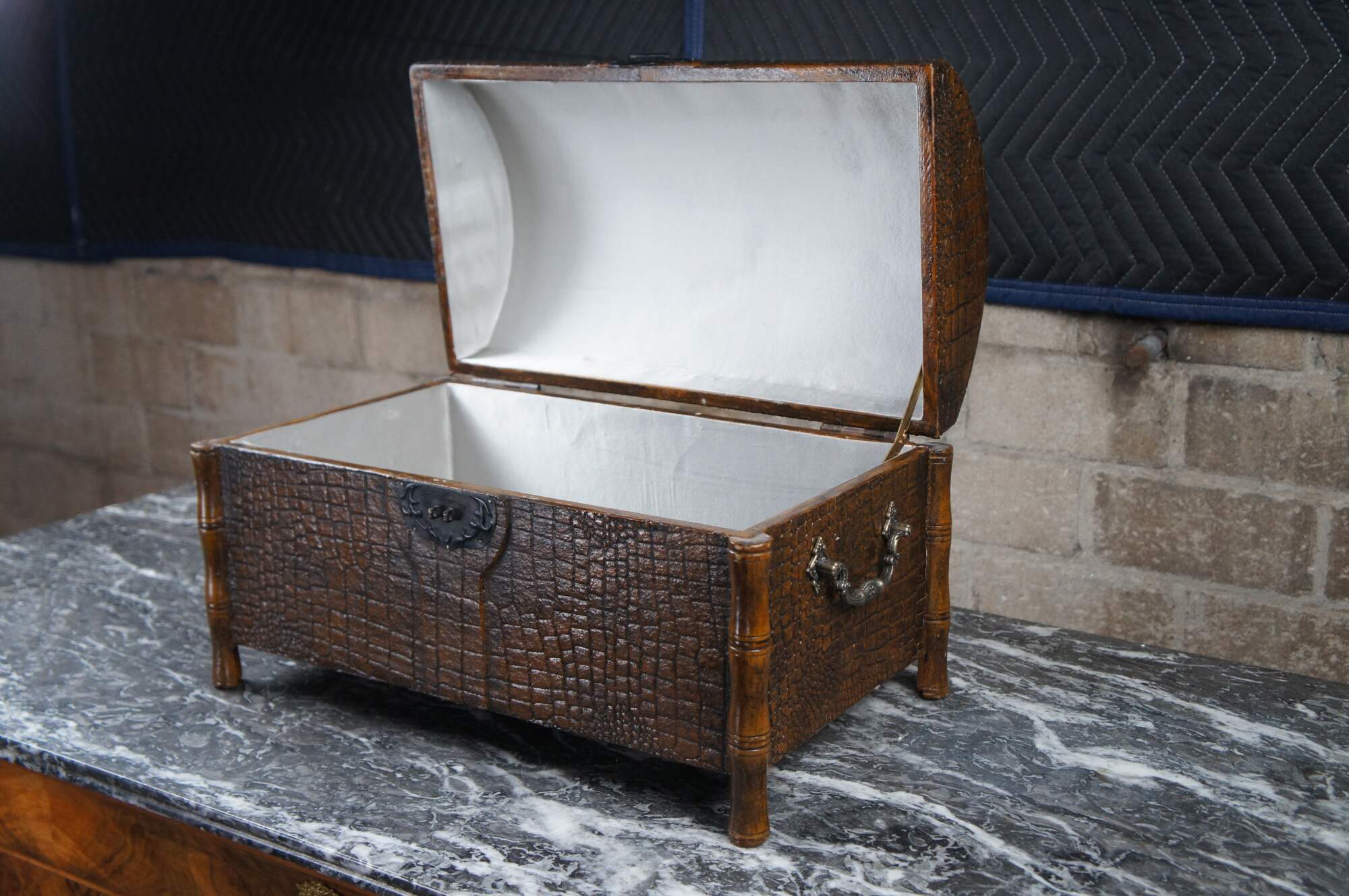 Chateau Edgewater Inc keepsake box. Features a domed exterior with faux alligator / bamboo form. Includes brass hardware with a silk line interior.