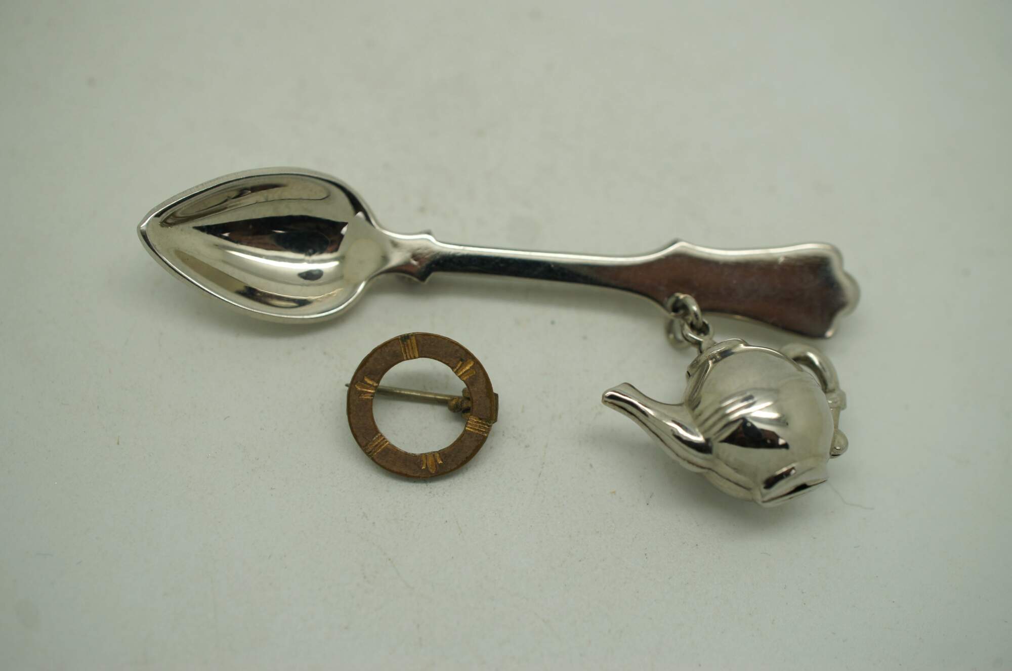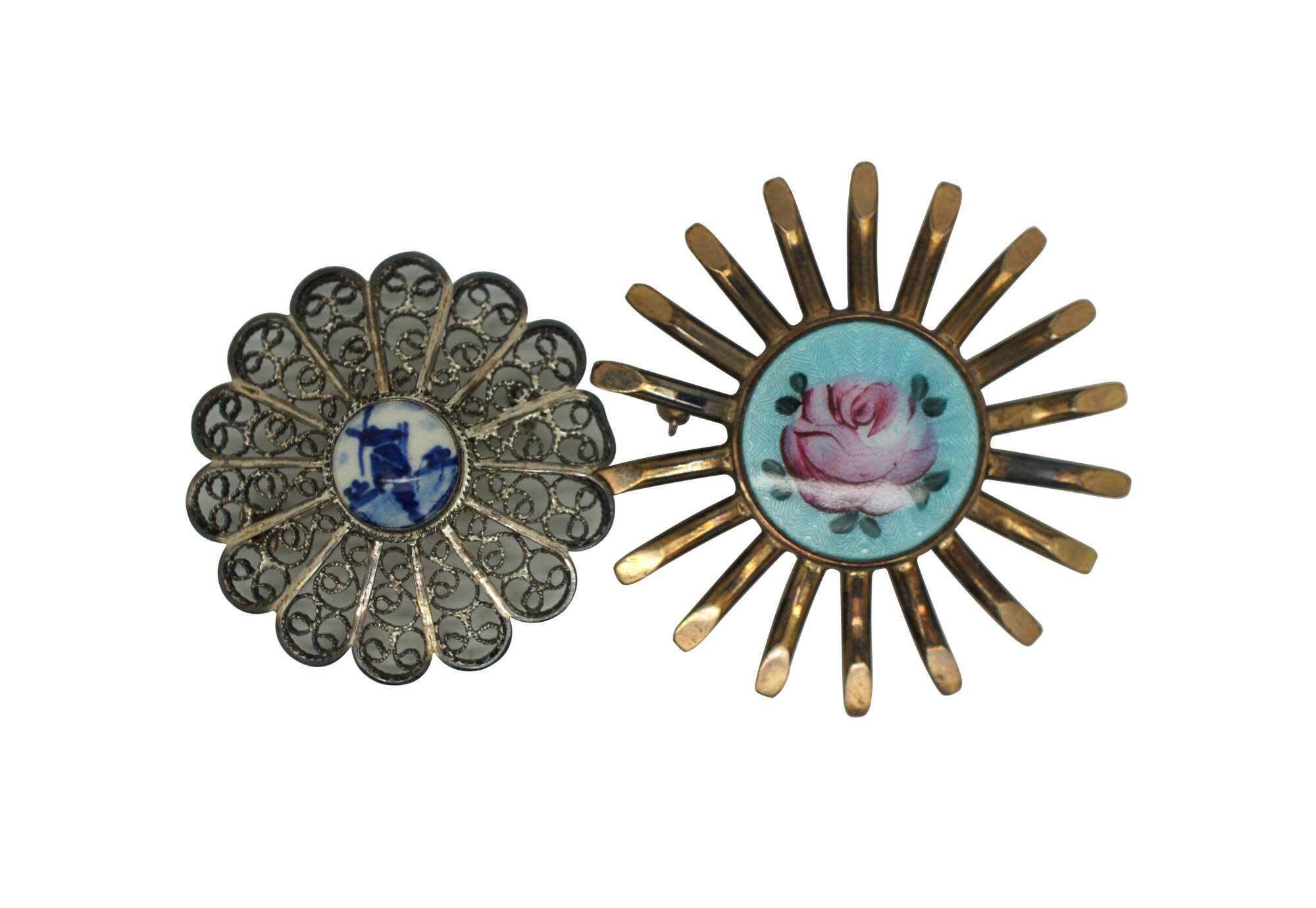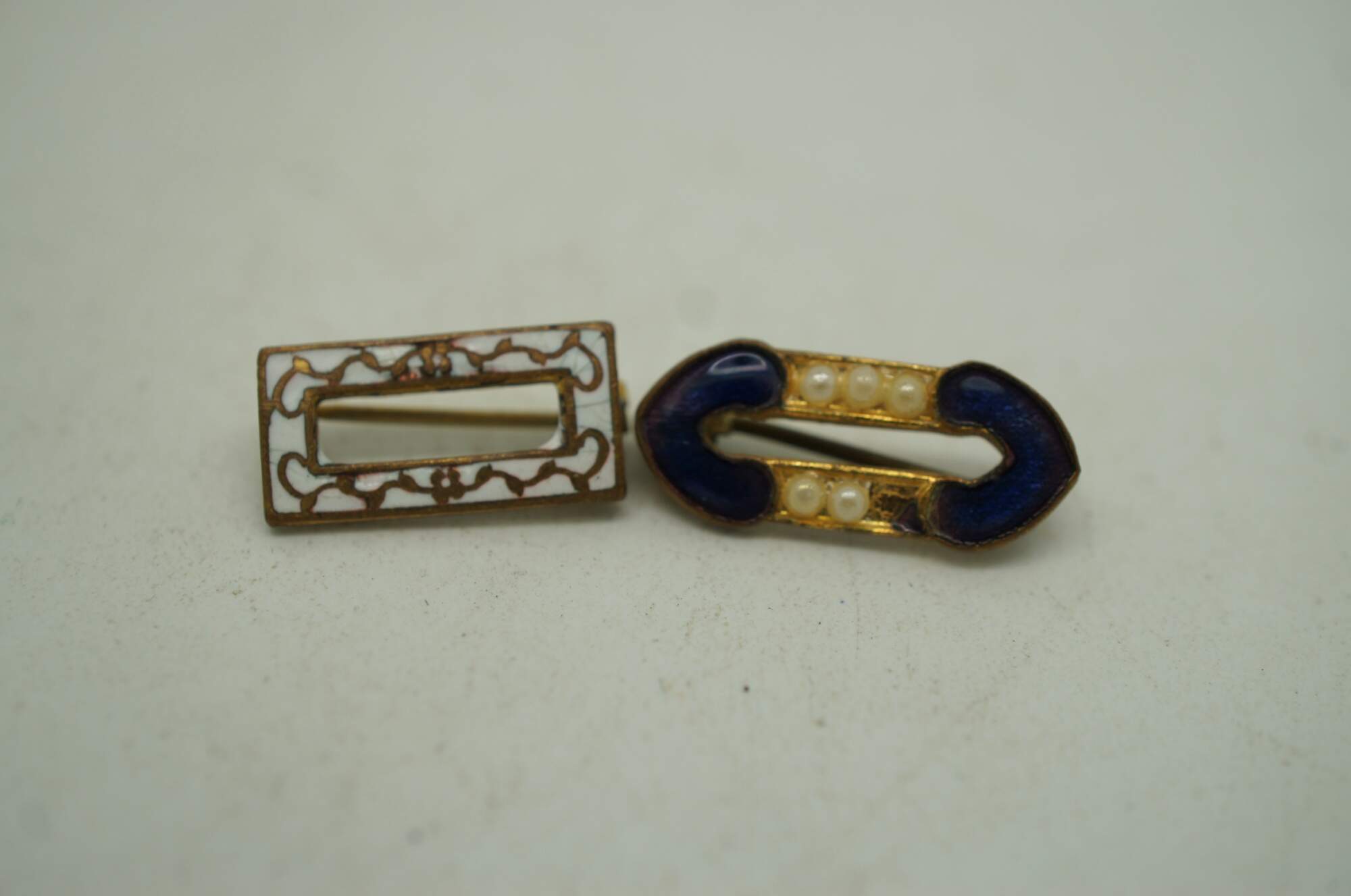 Lot of 16 mid to late 20th century pins / brooches in a variety of styles. Rhinestones, mother of pearl, enamel. One Army-Navy Production Award. Souvenir pin from USSR / Soviet 1959 exhibition in New York City. Marked brands include Weiss, AMA.