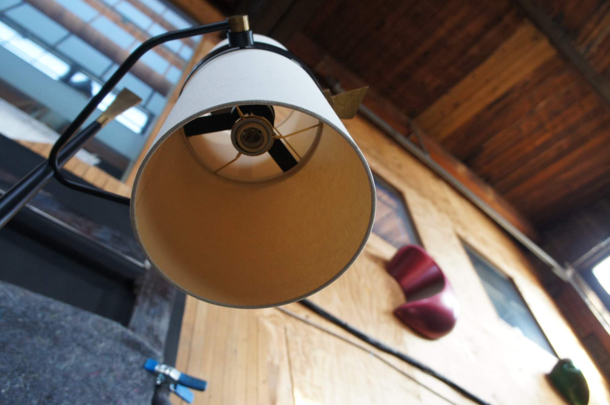 Anthroploie Yasmin Floor Lamp. A forged iron frame wraps around a soft linen shade, lending an industrial appeal to this versatile light fixture that includes two an uplight and down light.