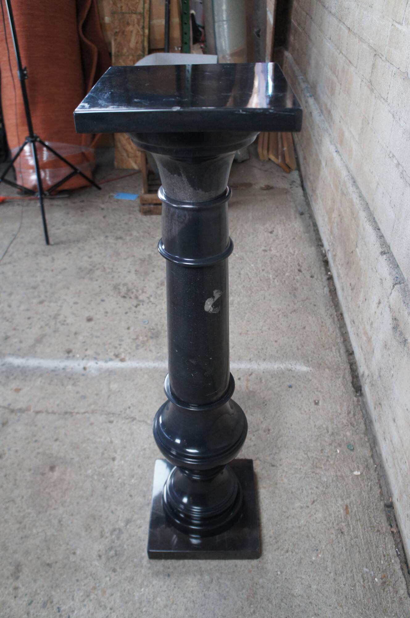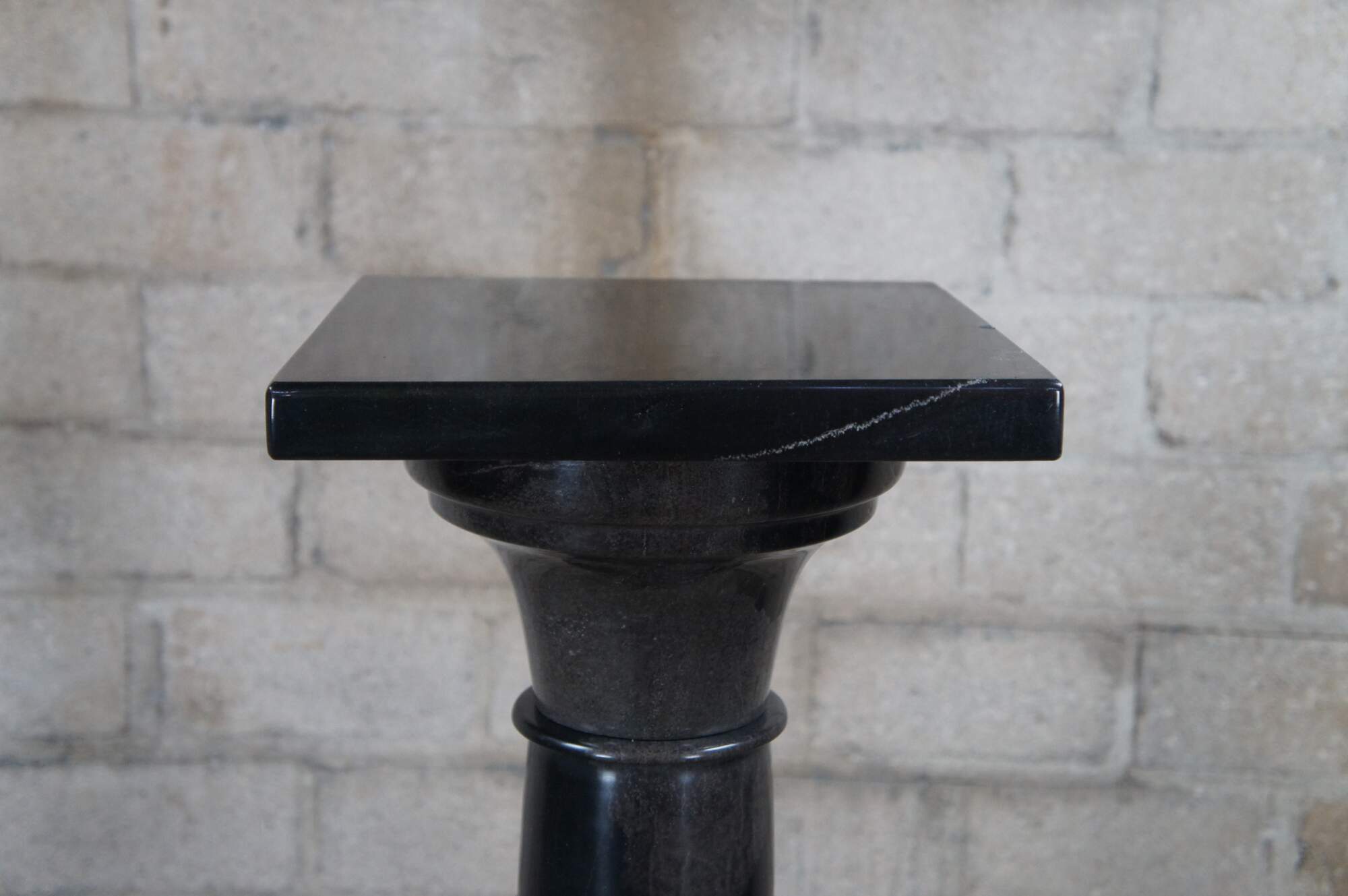 20th century Vintage Italian Classical Revival black marble column. An elegant trophy or baluster form. Made in Mexico.