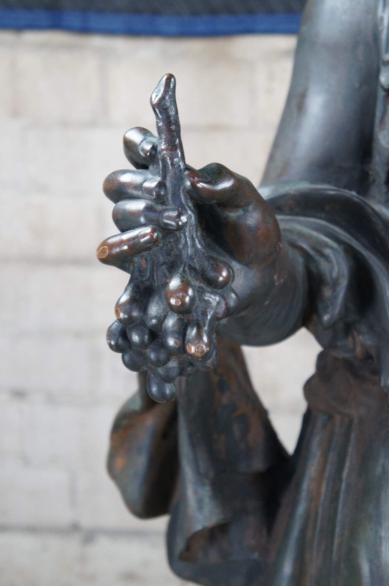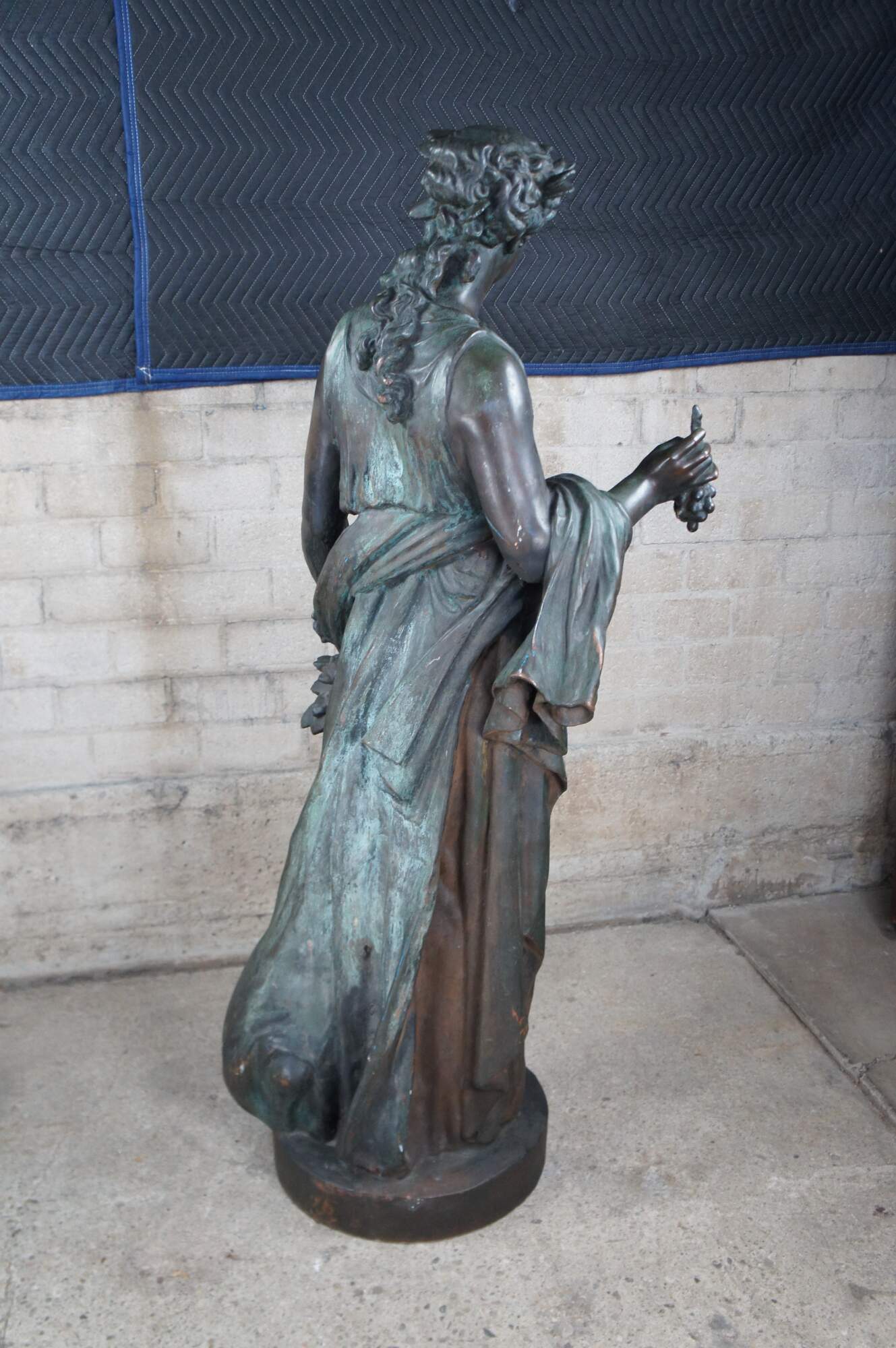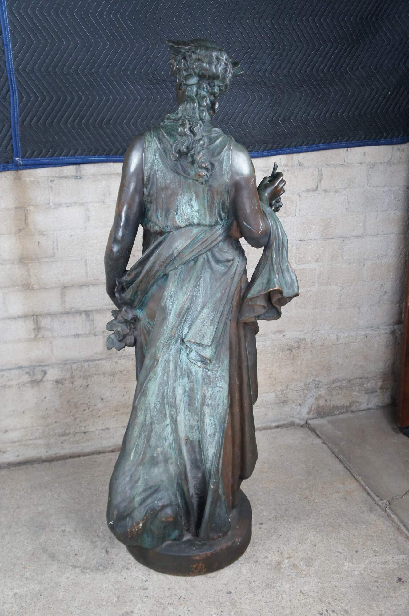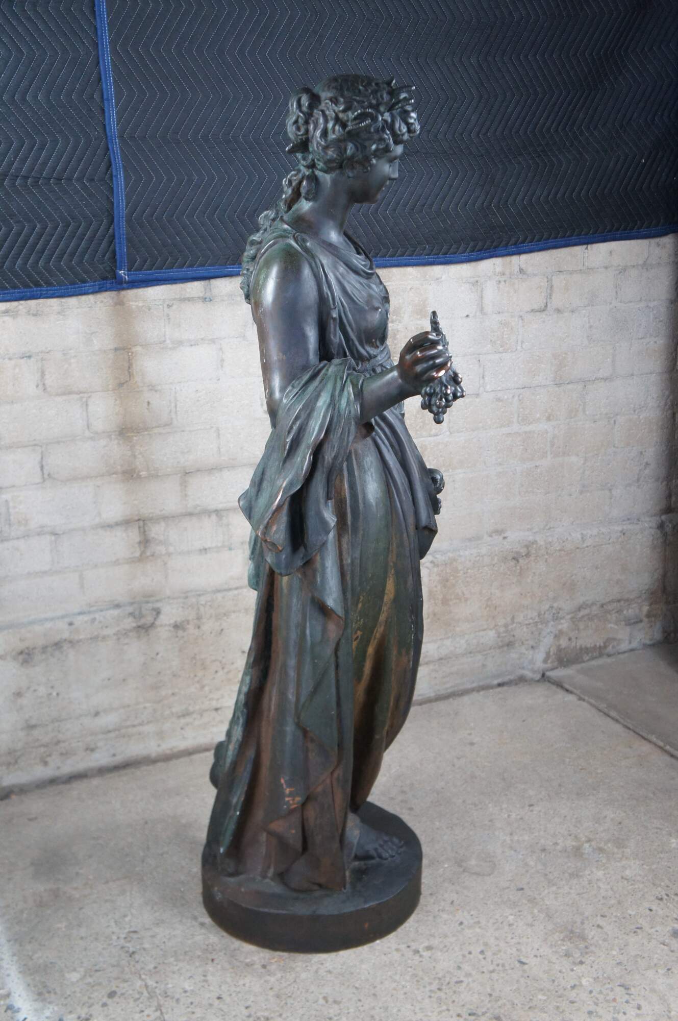 A rare and Impressive solid bronze sculpture of Demeter, The Goddess of Harvest, Circa late 18 to early 19th Century. She's is shown standing with tunic, grapes in one hand and a wreath with fruit in the other. Cast in a dark bronze with green verdigris patina.