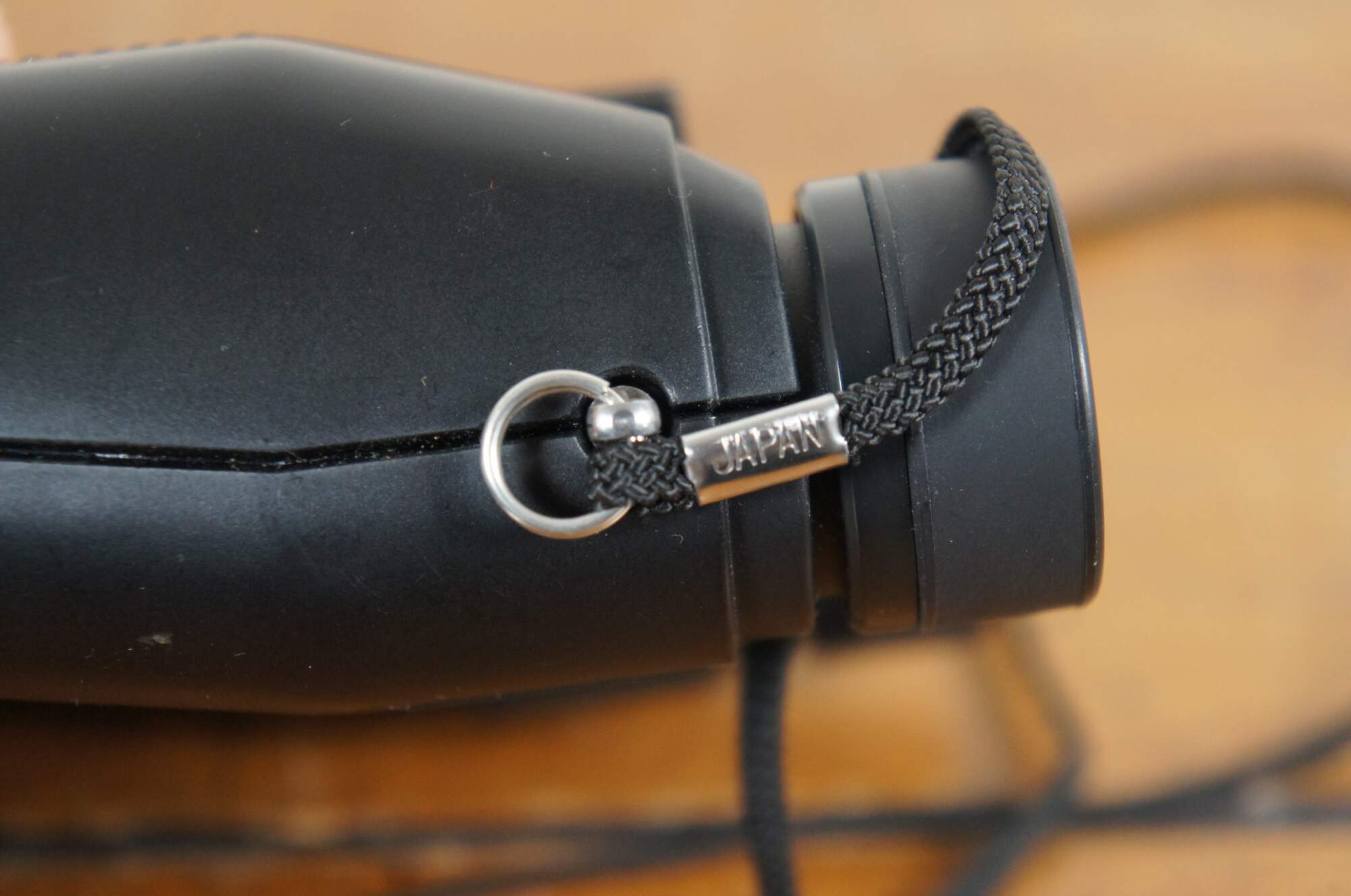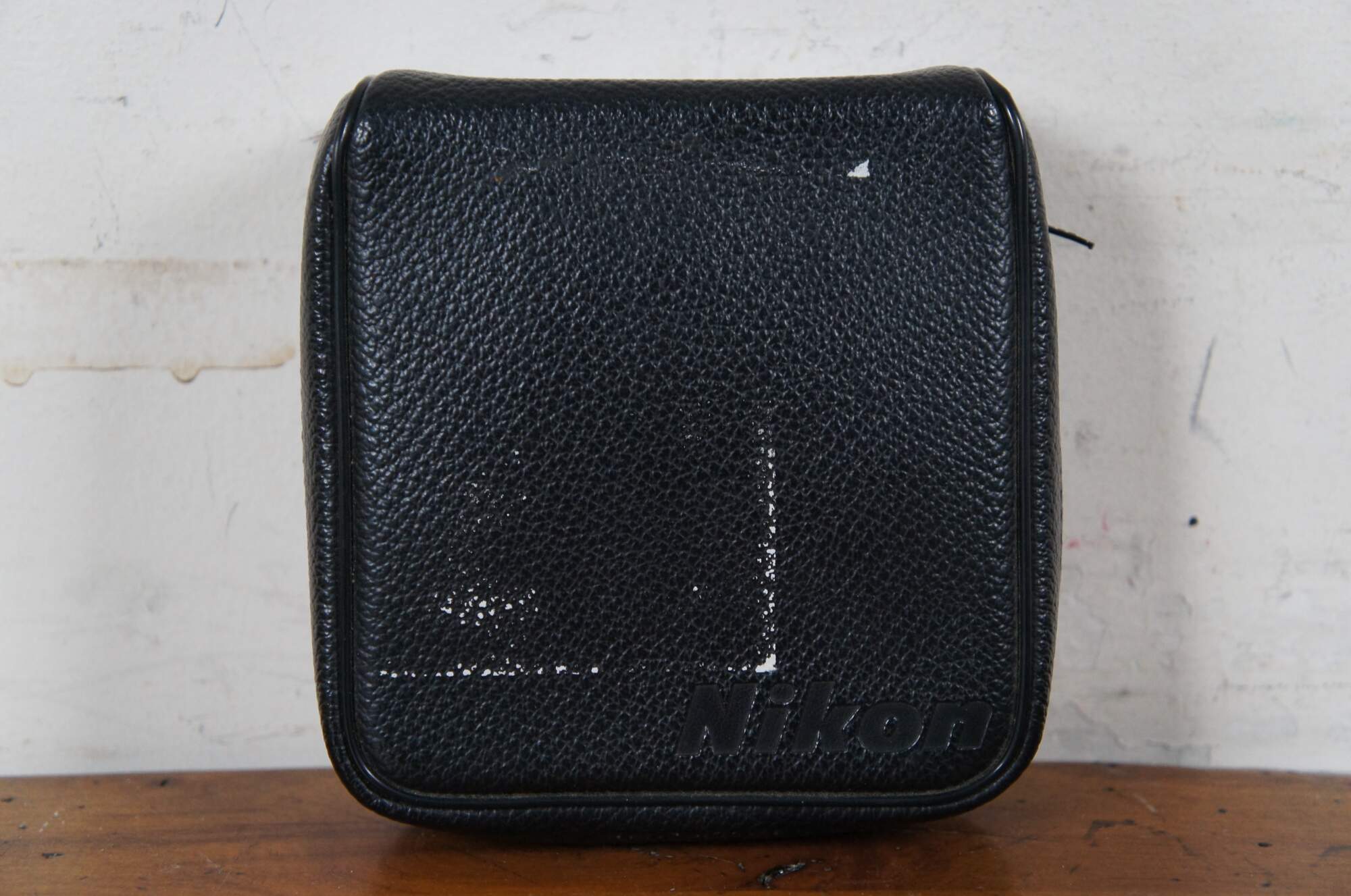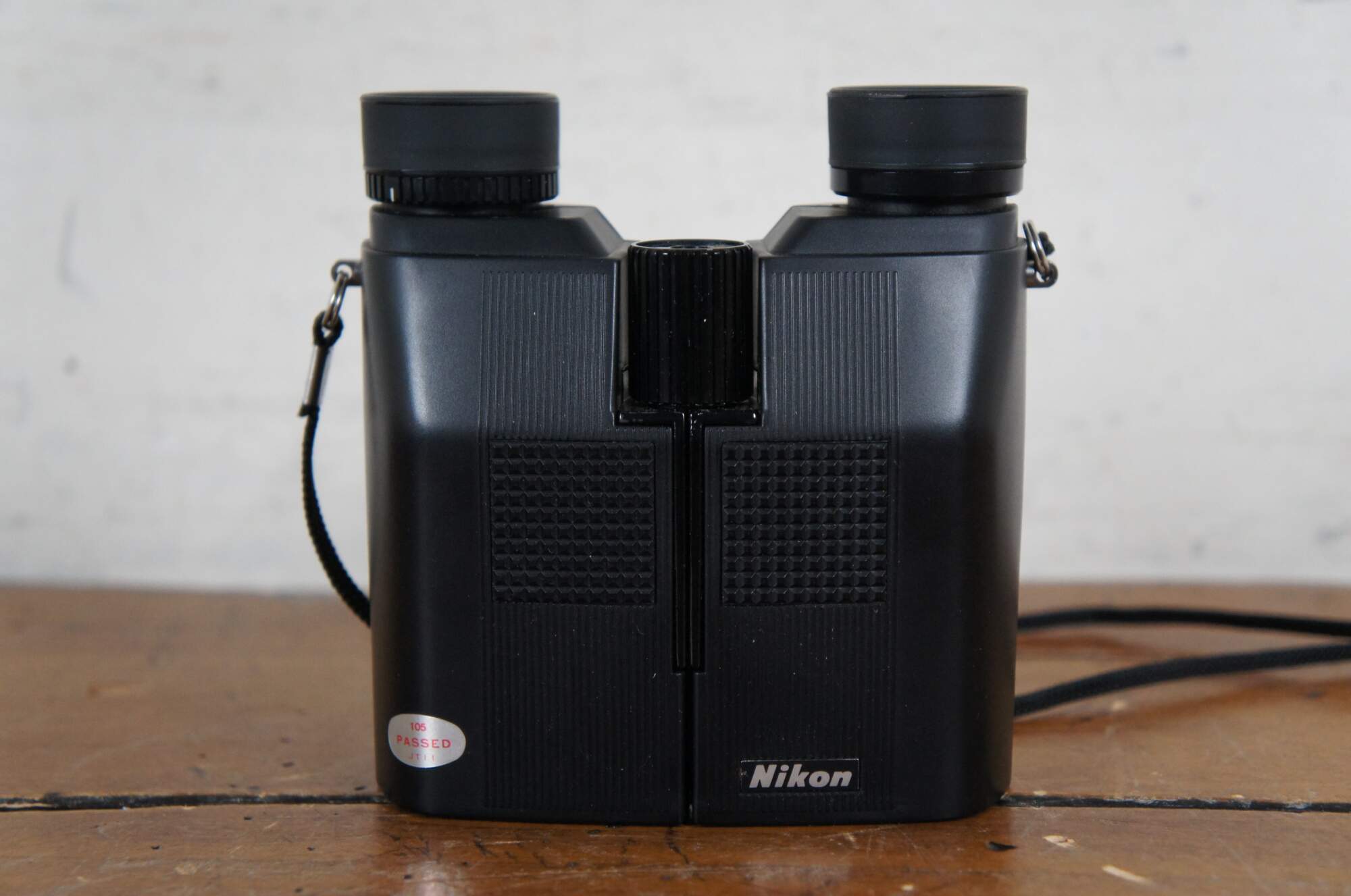 Late 20th century Nikon travelite compact binoculars with blaack leather zippered pouch and neck strap. Sticker missing but appear to match models labeled 9x25 5.6 degrees. Made in Japan.