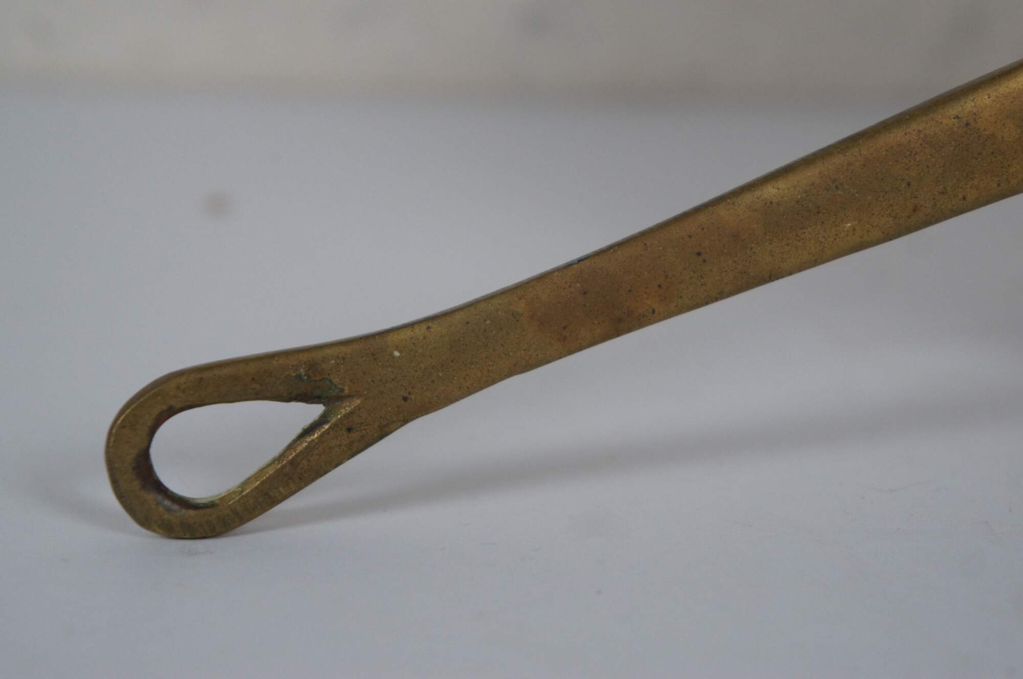 20th century copper sauce pot / pan. Slightly tapered round body with two brass handles - one straight, one fixed bail.