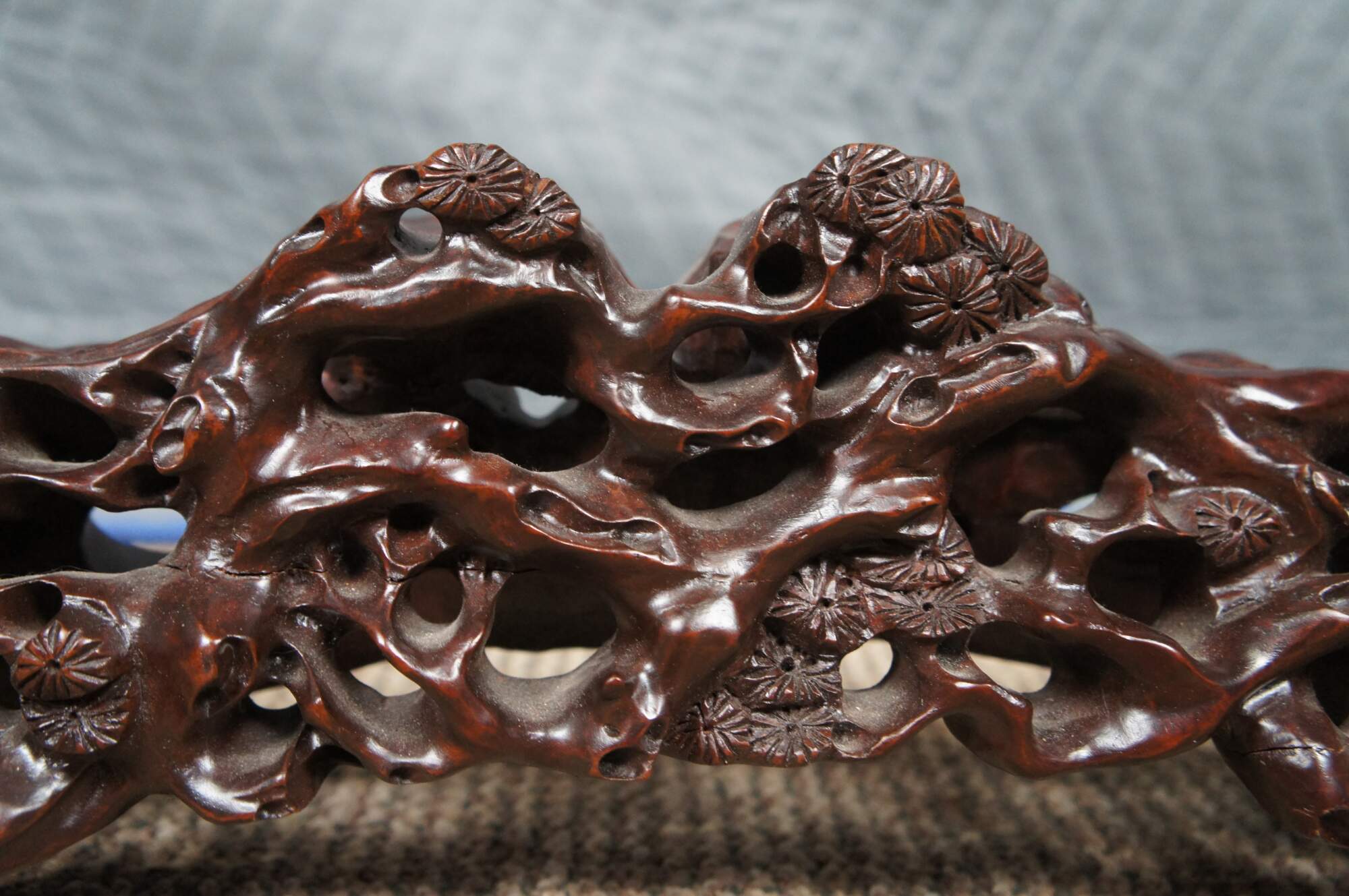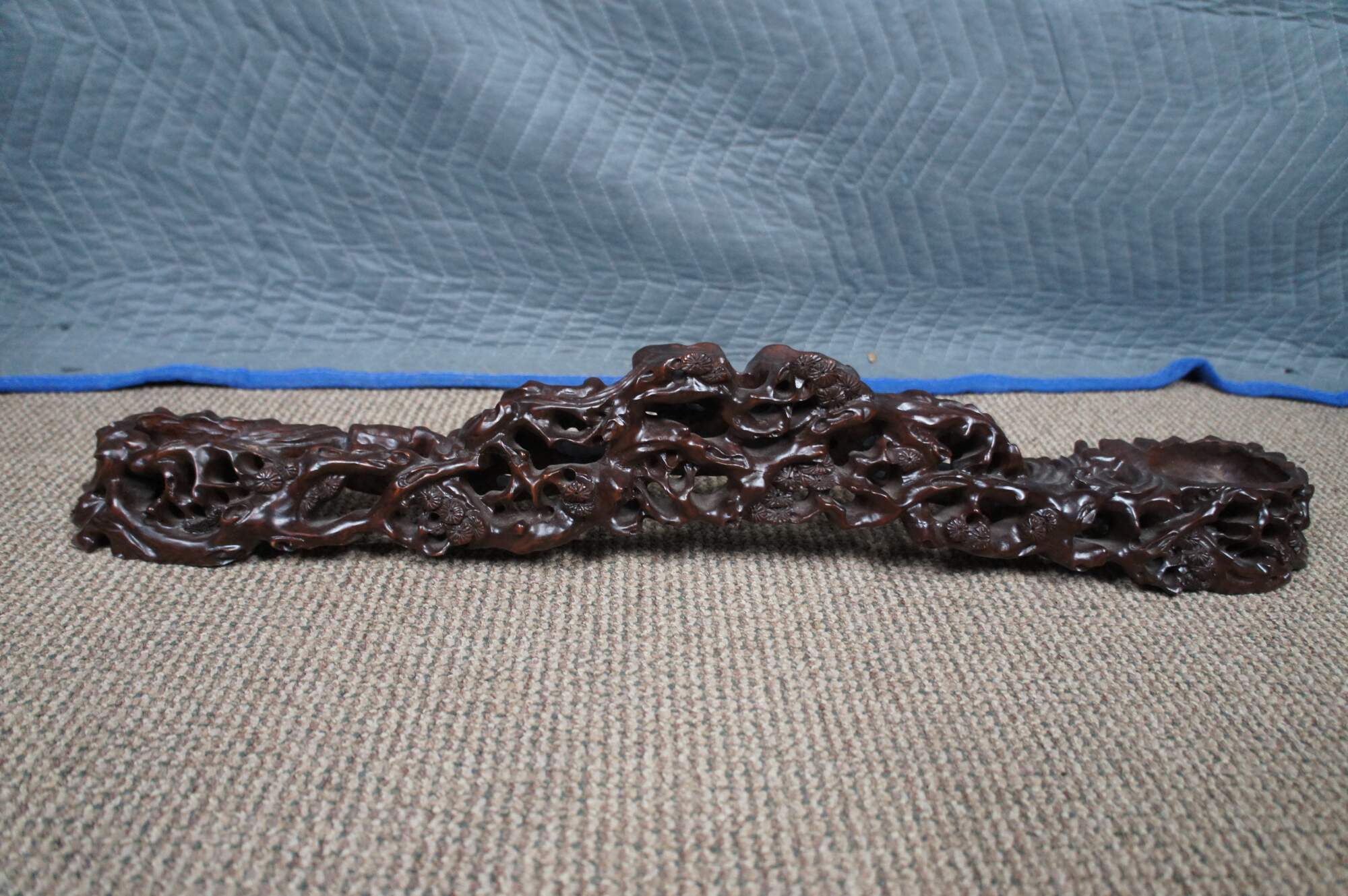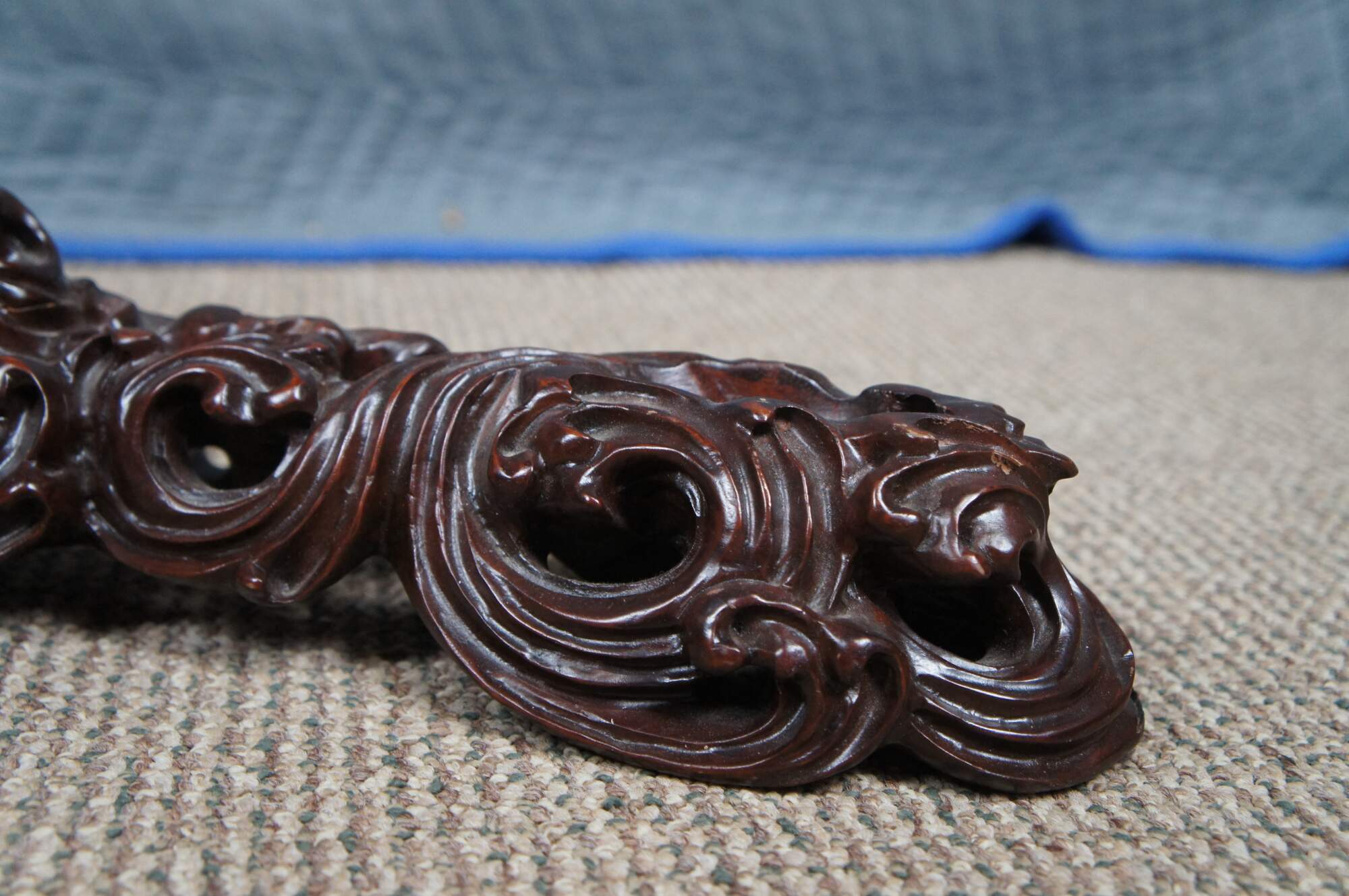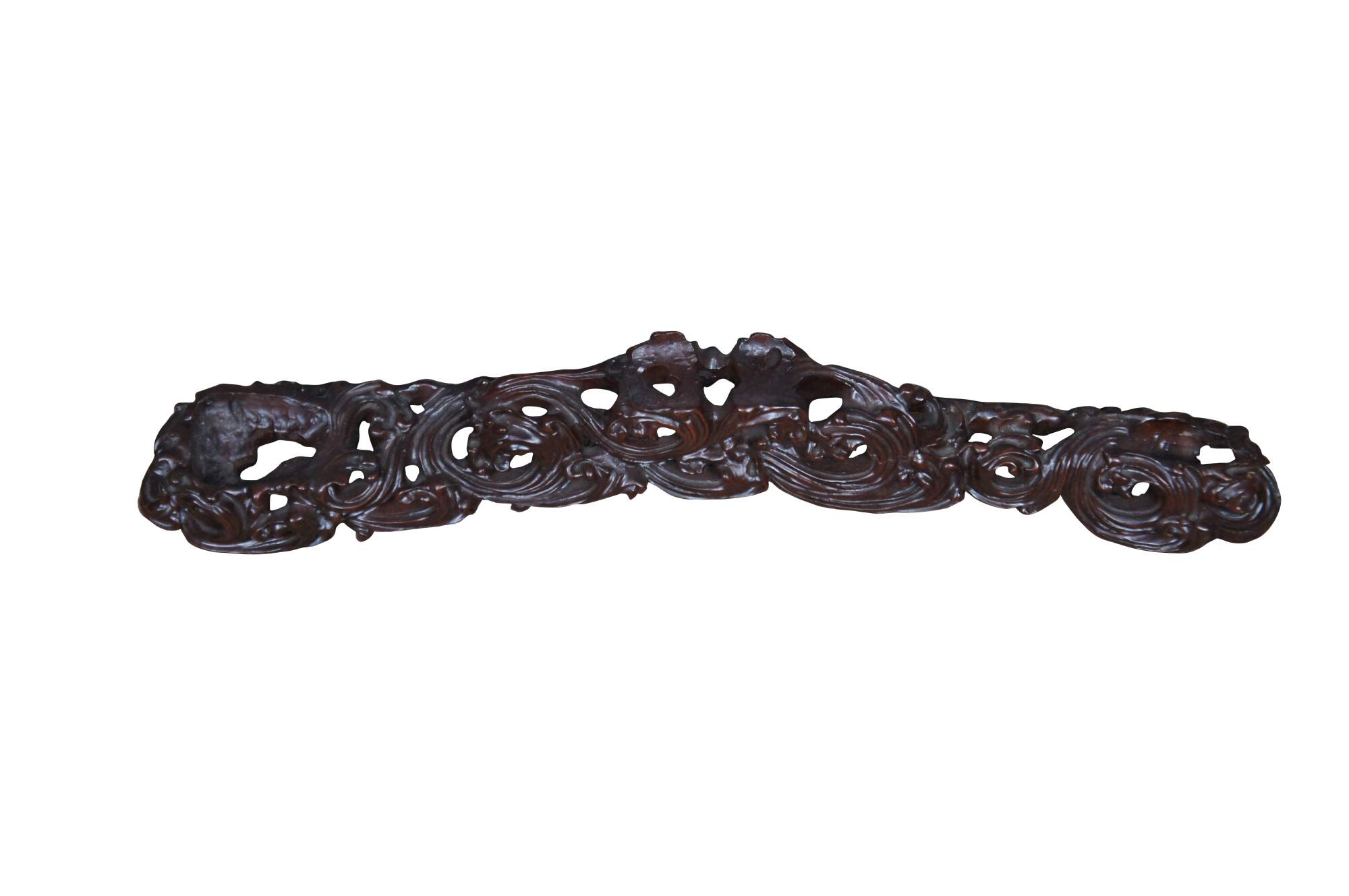 Ornate Baroque Style Composite Tusk or Bone Holder Stand. Feature flowing pierced foliate detail. Intended to hold an arched bone or tusk with the fat end on one side and the point sitting into the other side.