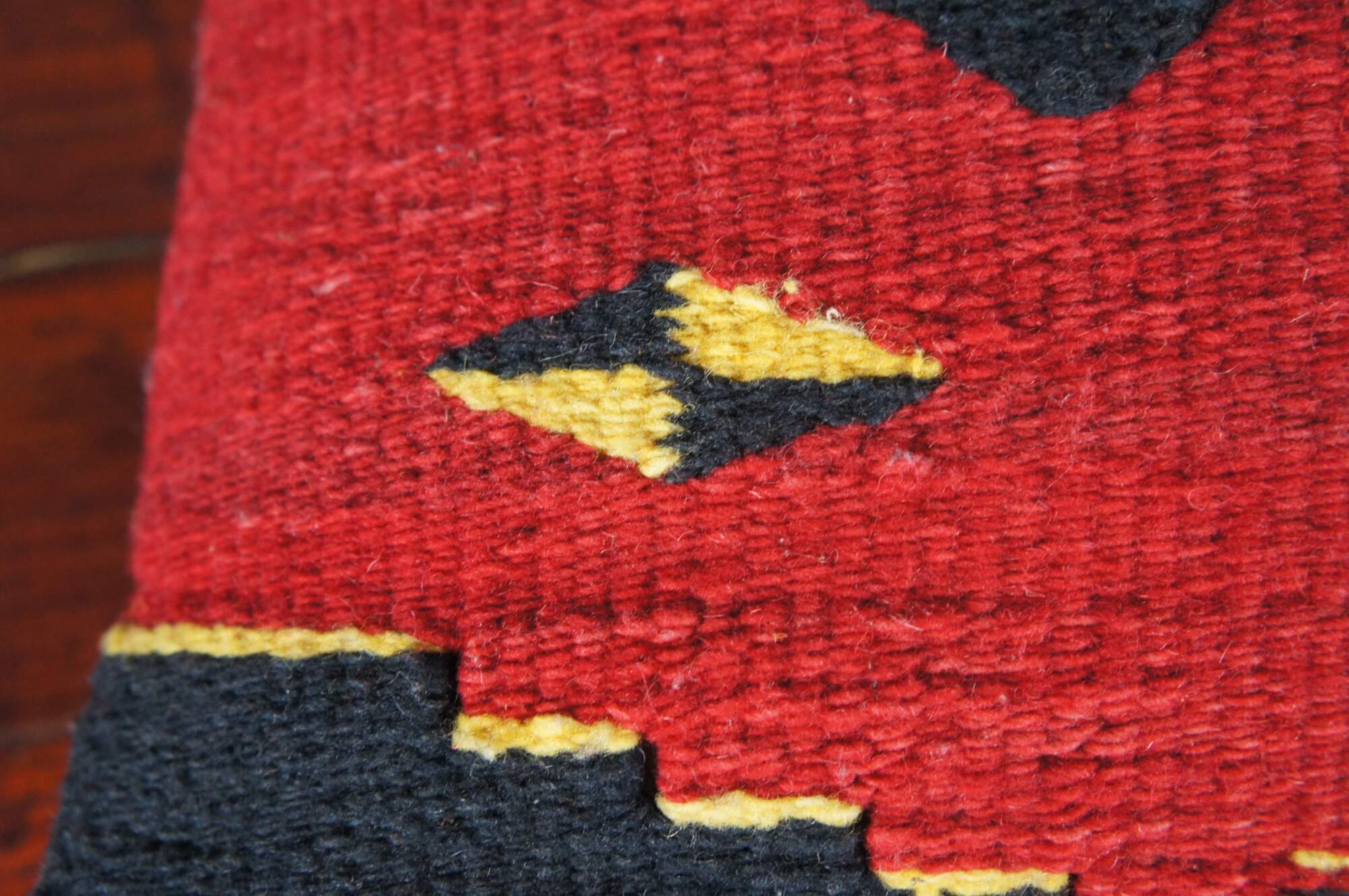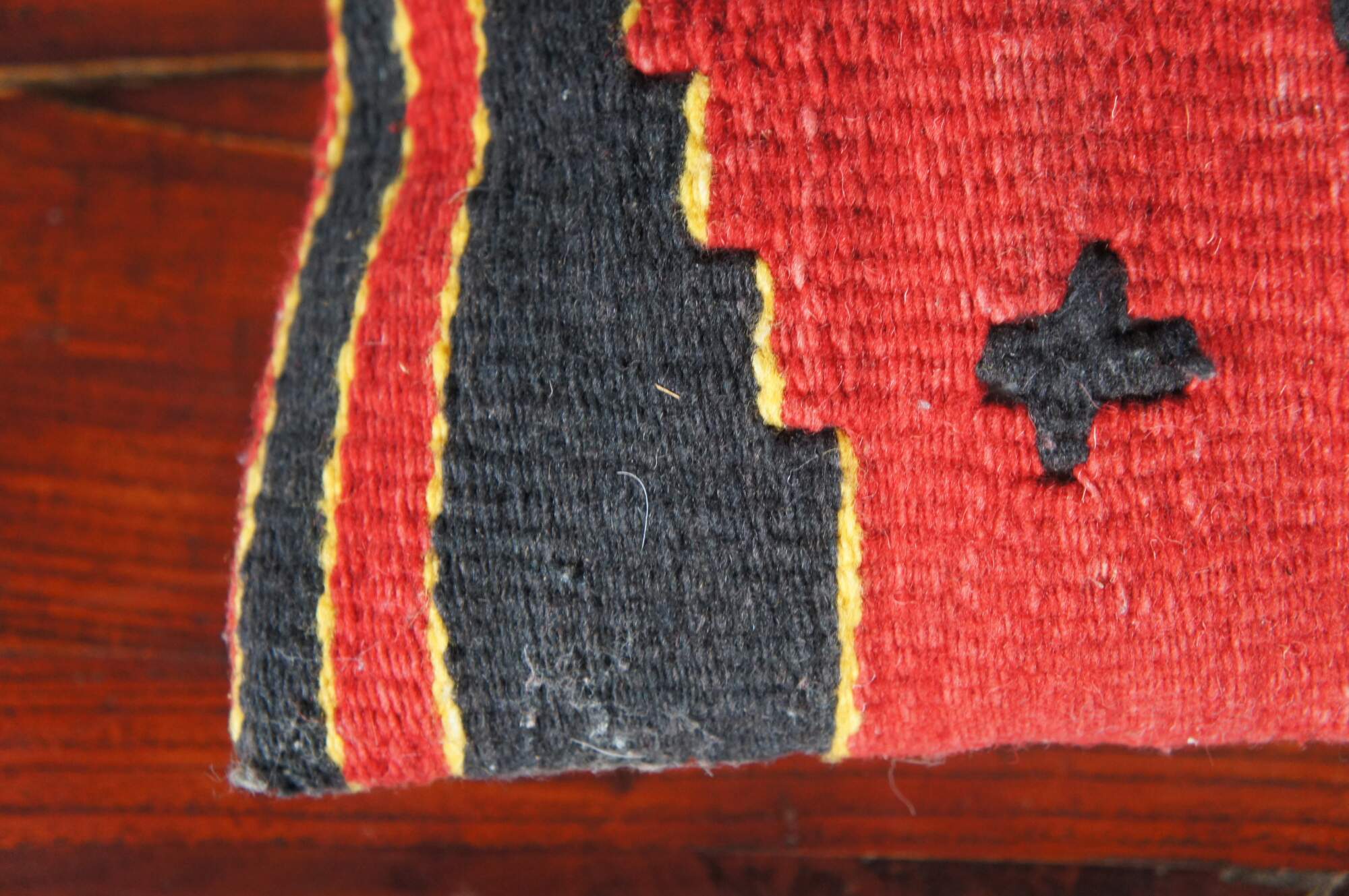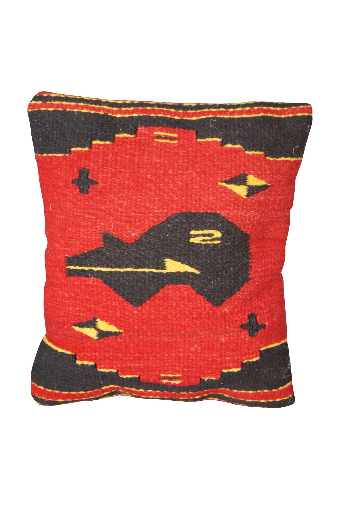 The Zapotecs of southern Mexico are internationally known for their weaving techniques. Here the bear motif marks a Zapotec wool weaving which was perfectly made into a pillow.