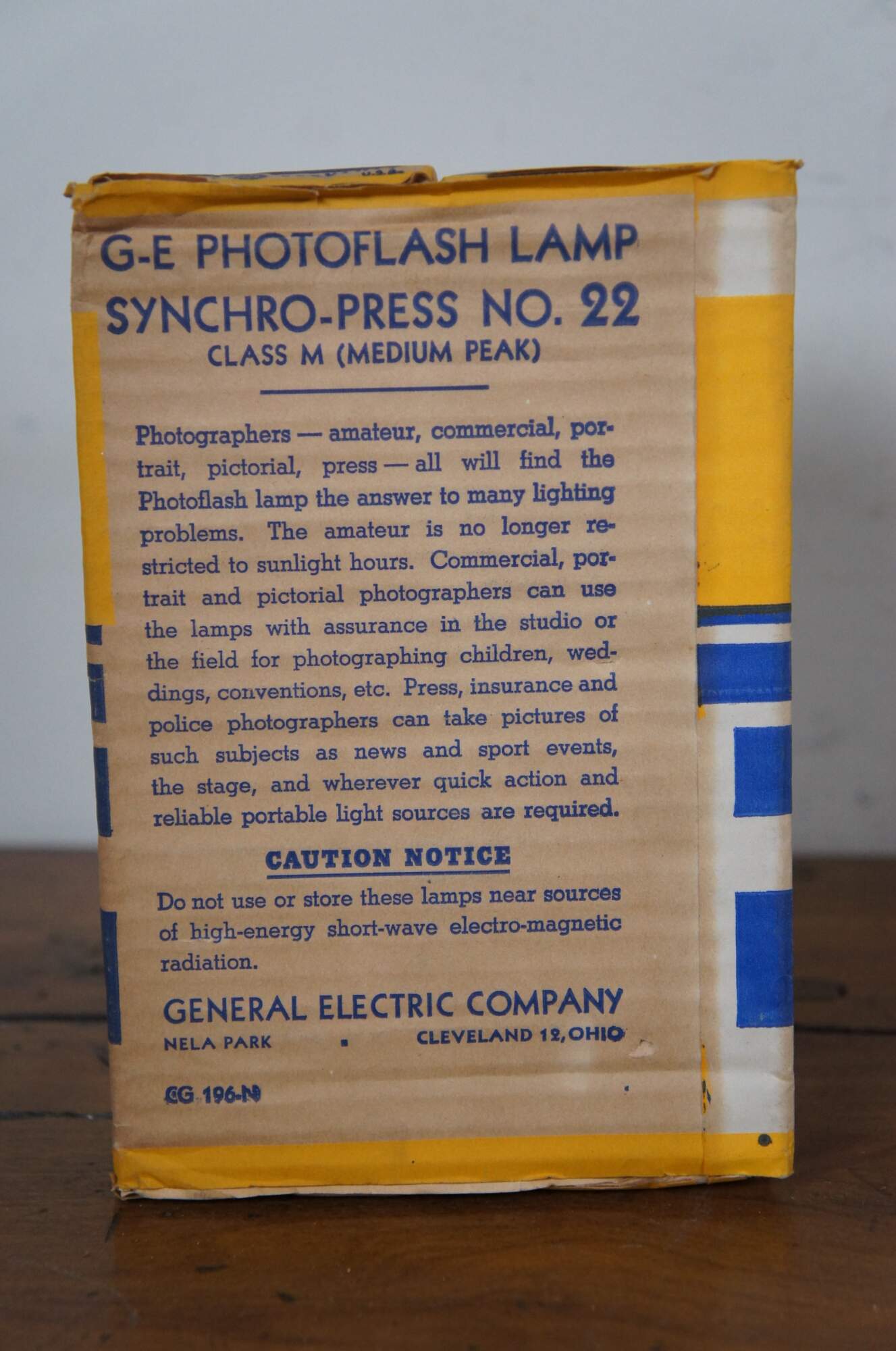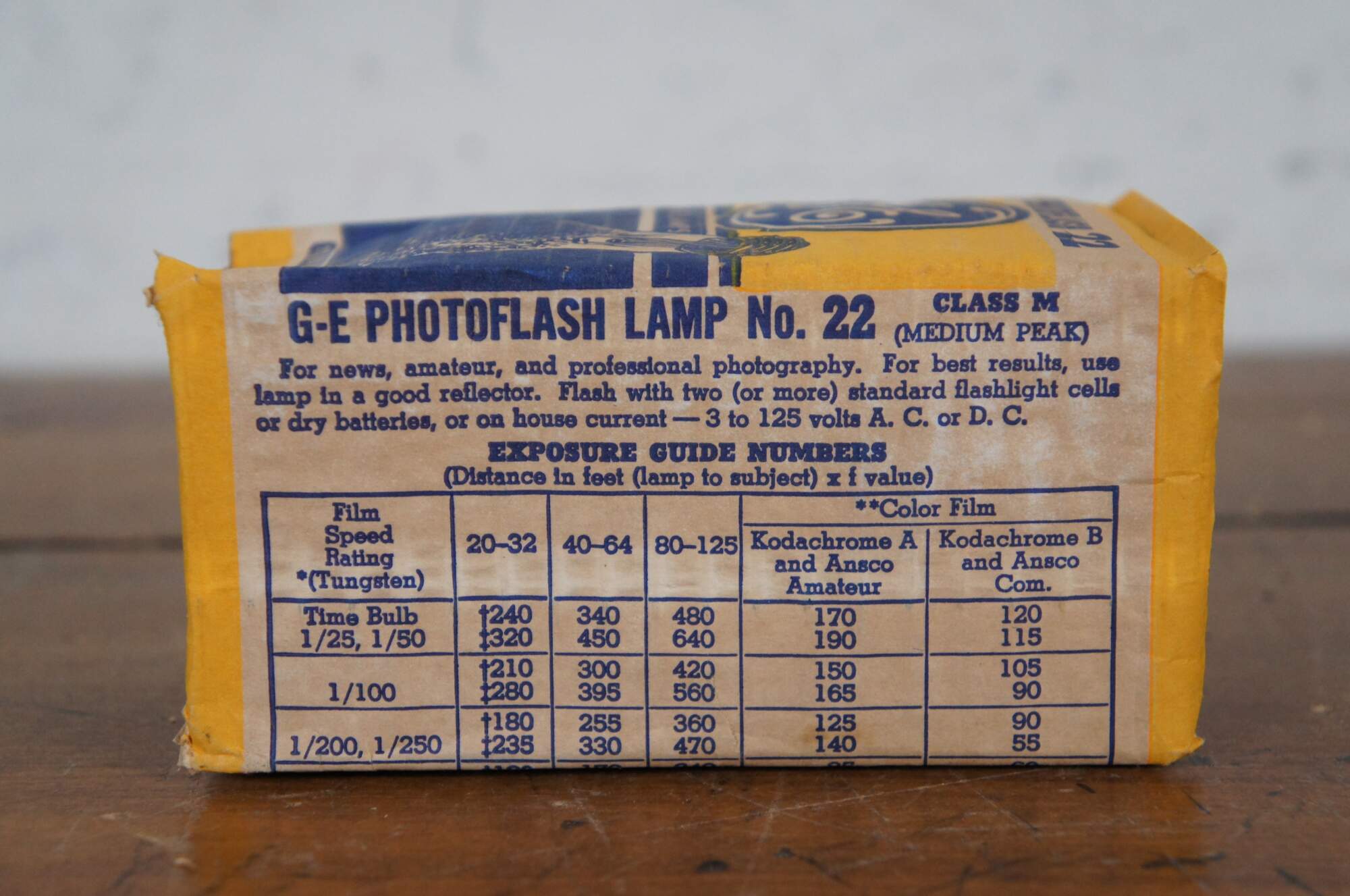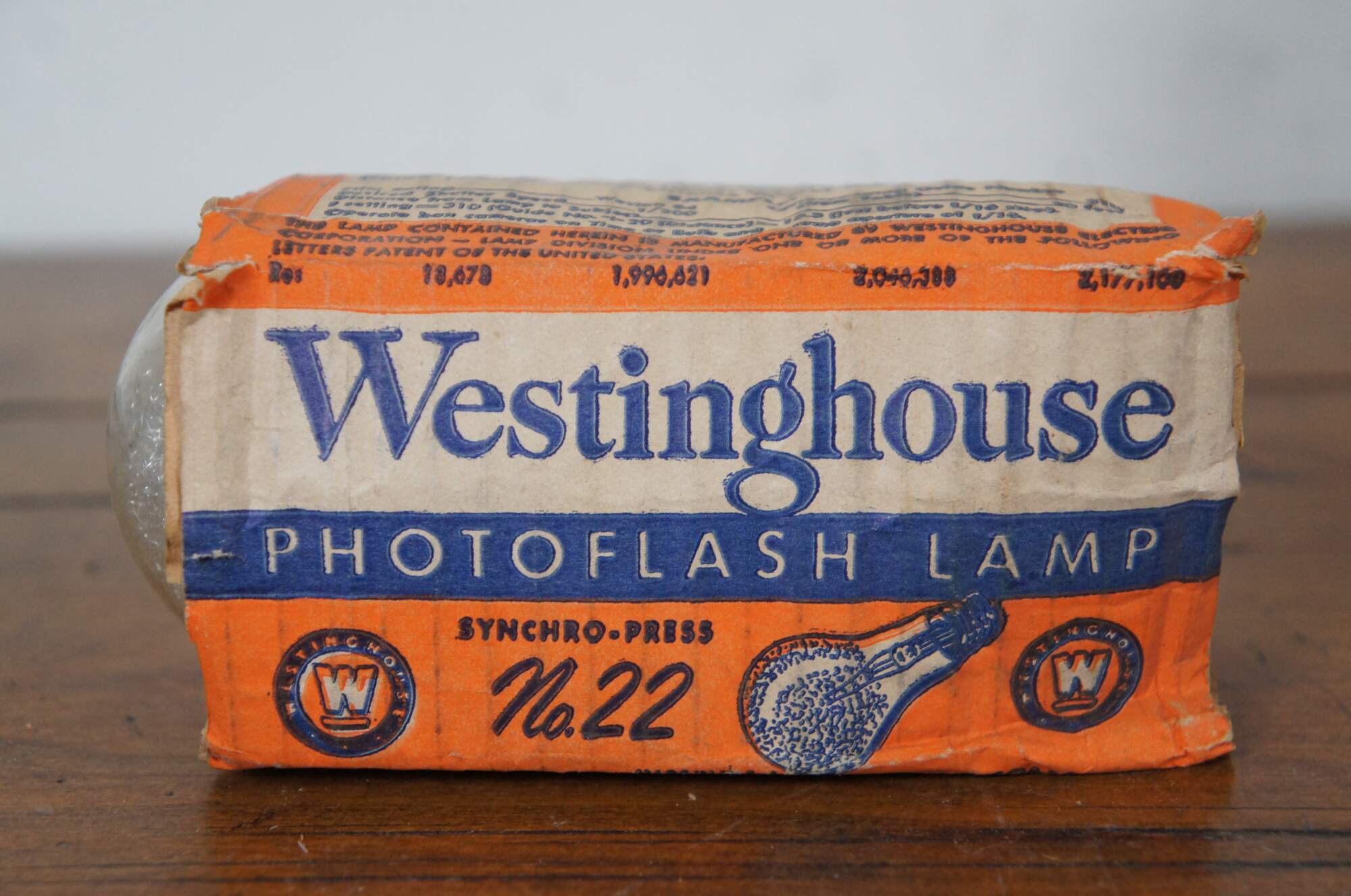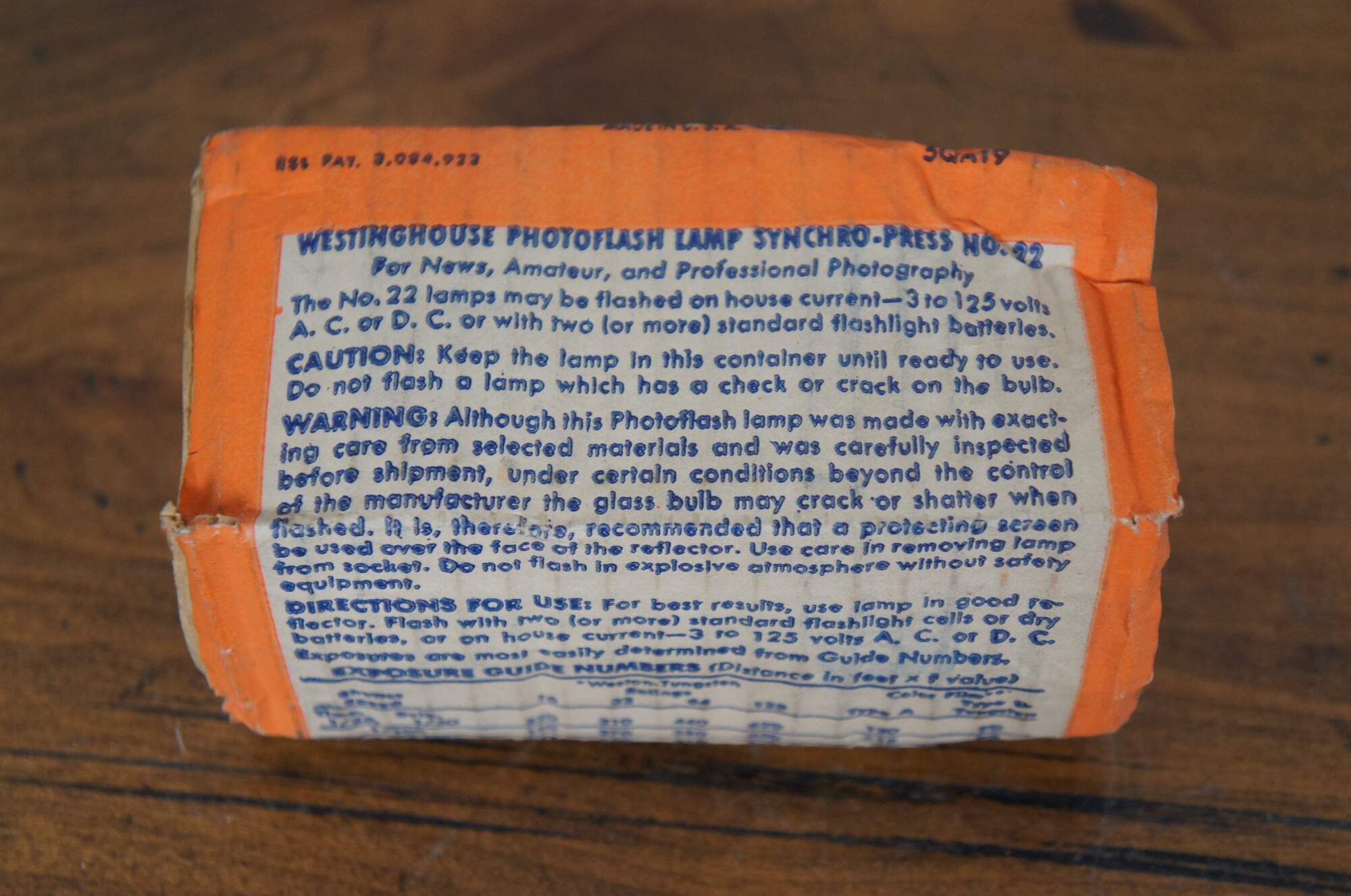 Lot of 119 mid to late 20th century Westinghouse and General electric No 22 Photoflash lamp / flash bulbs, some loose, some in original packaging. Inludes: 63 loose; 20 singles boxed; 6 boxes of 6.