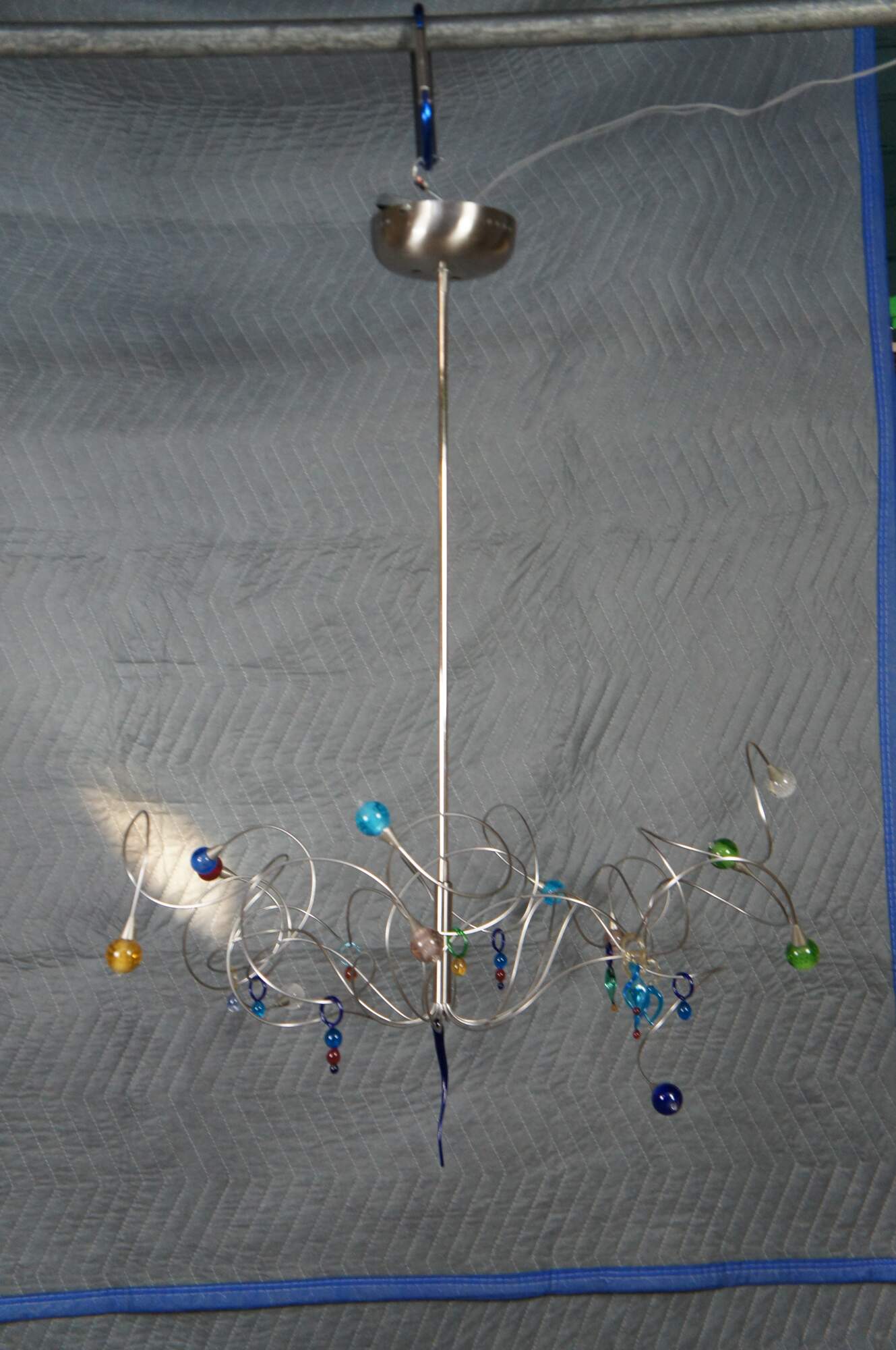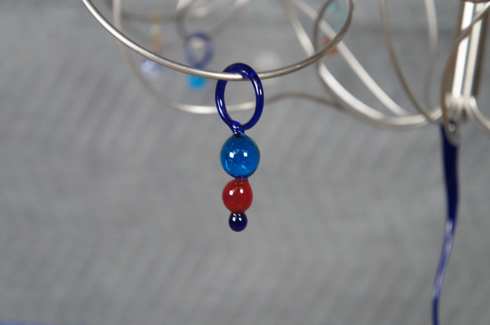 Strawberry suspension features stainless steel bendable arms with glass shades and trinkets in multicolor. Features Murano glass art trinkets.