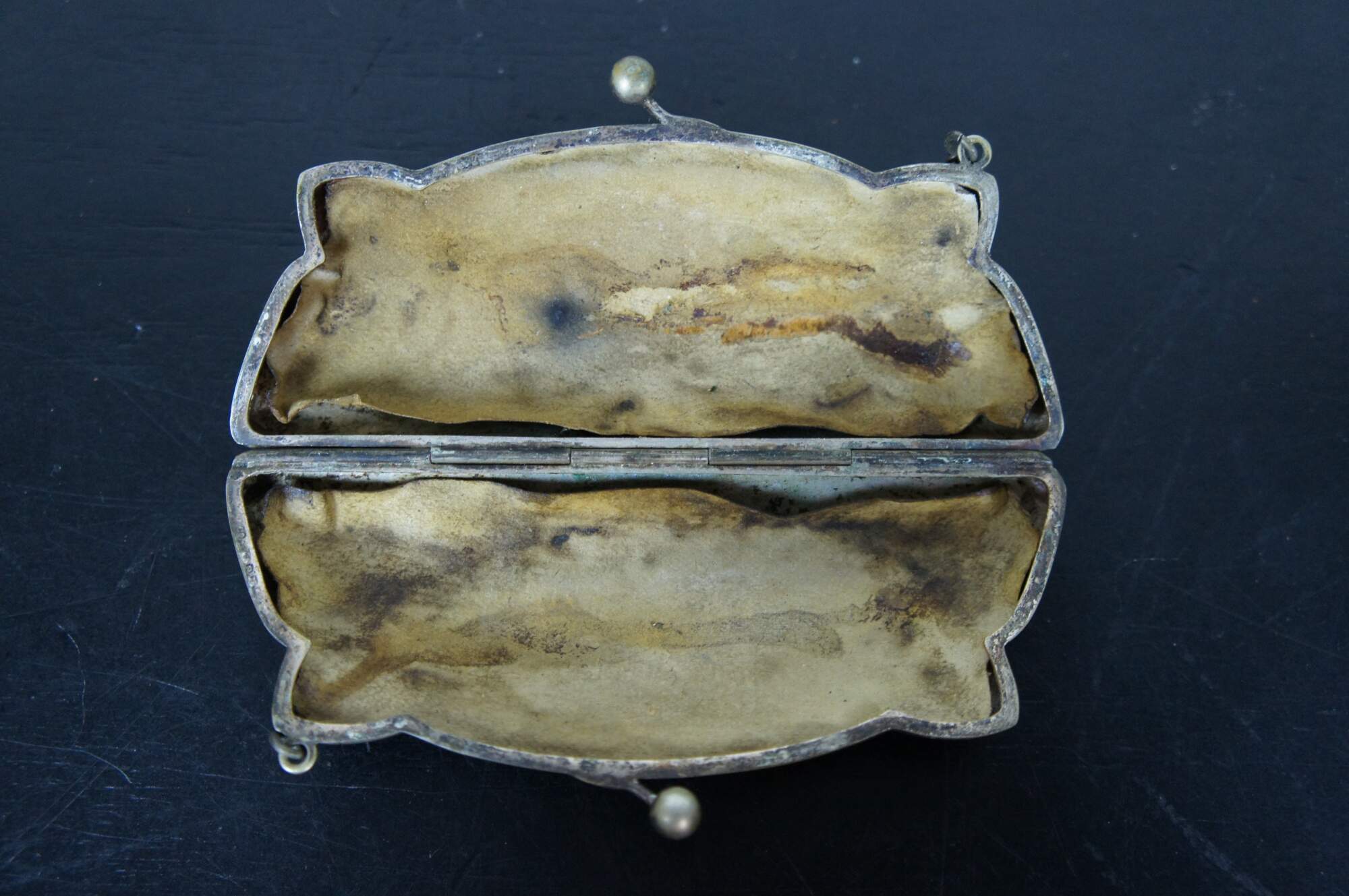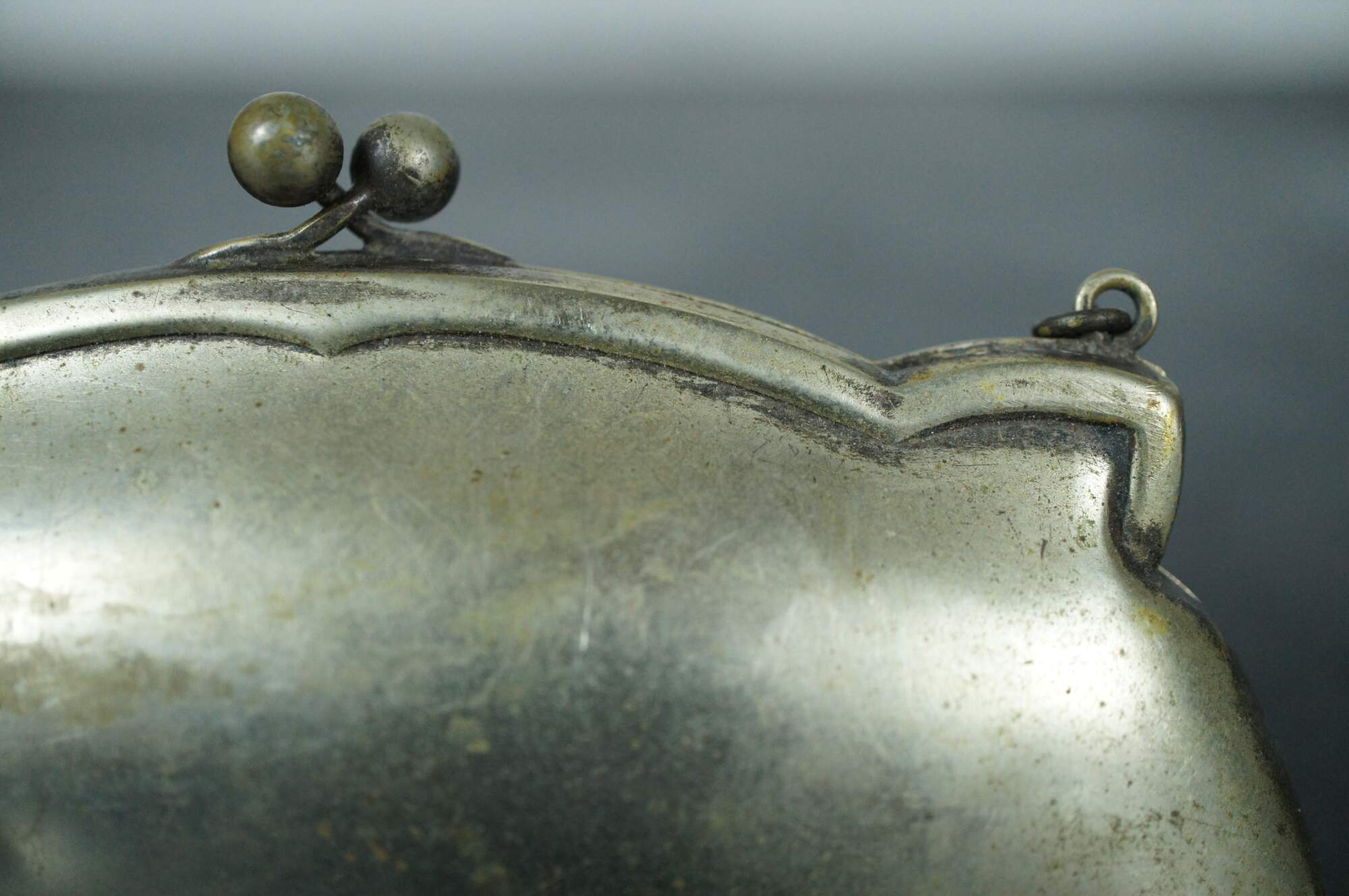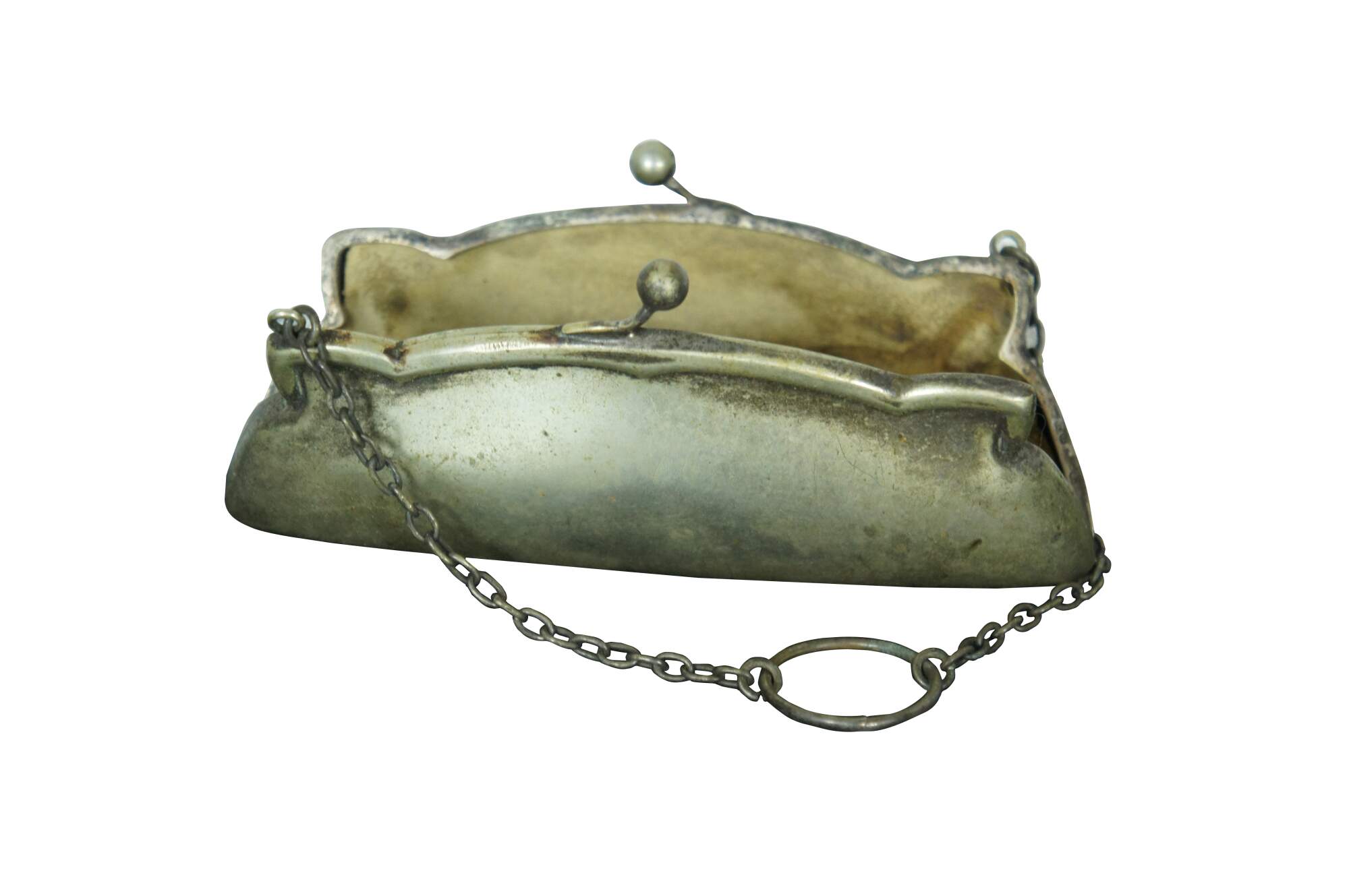 An elegant silver plated dance purse - the perfect party accessory of a 1920s/1930s lady; holding their dance tickets, coins and night essentials. Hanging from its finger chain.