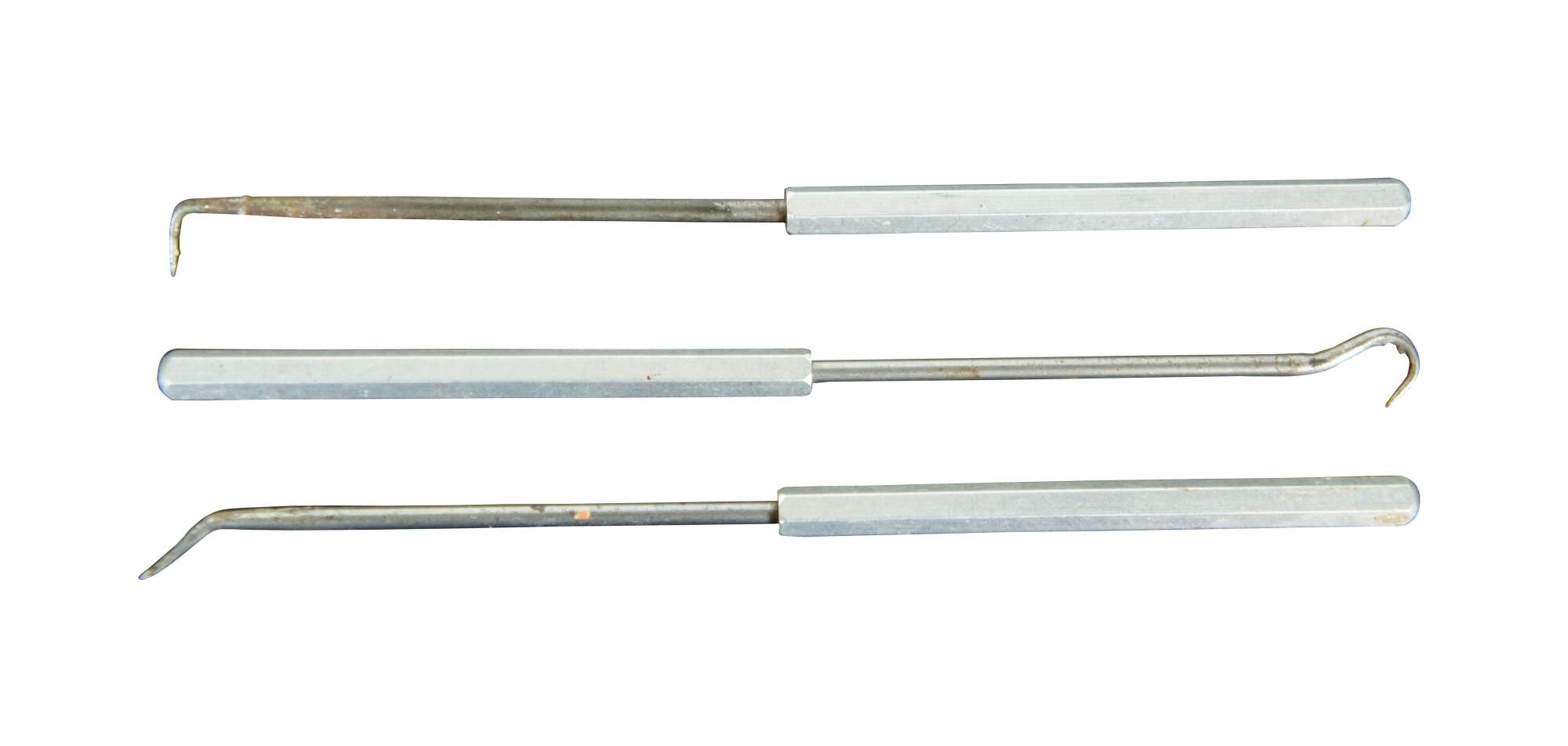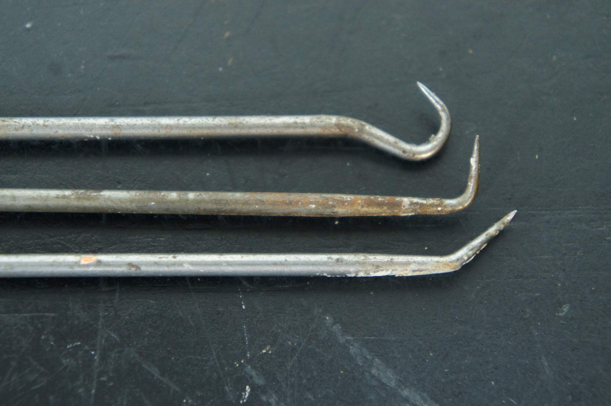 Set of three late 20th century hooks / picks with hexagonal handles.