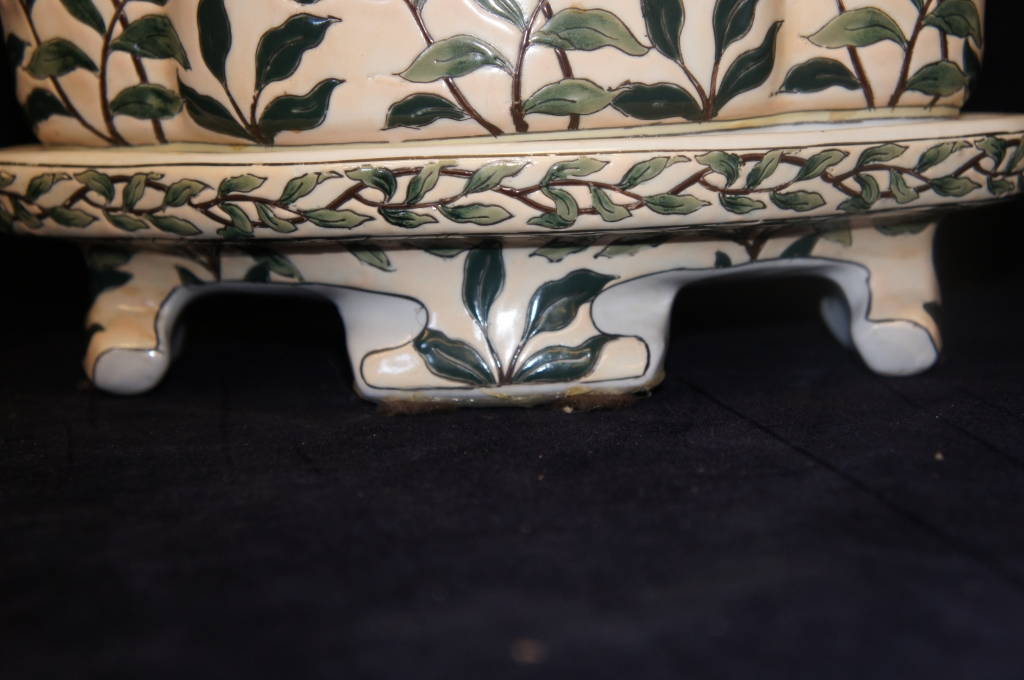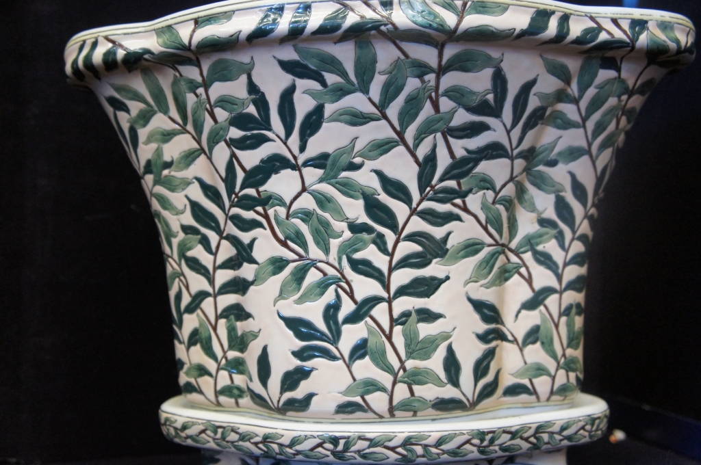 Vintage Ceramic Planter Vase Jardiniere Oriental Style Green Ivy Leaf Designs