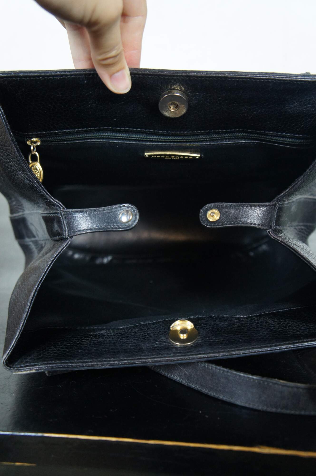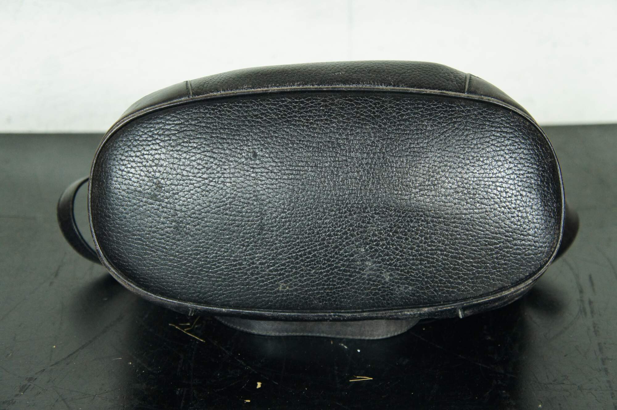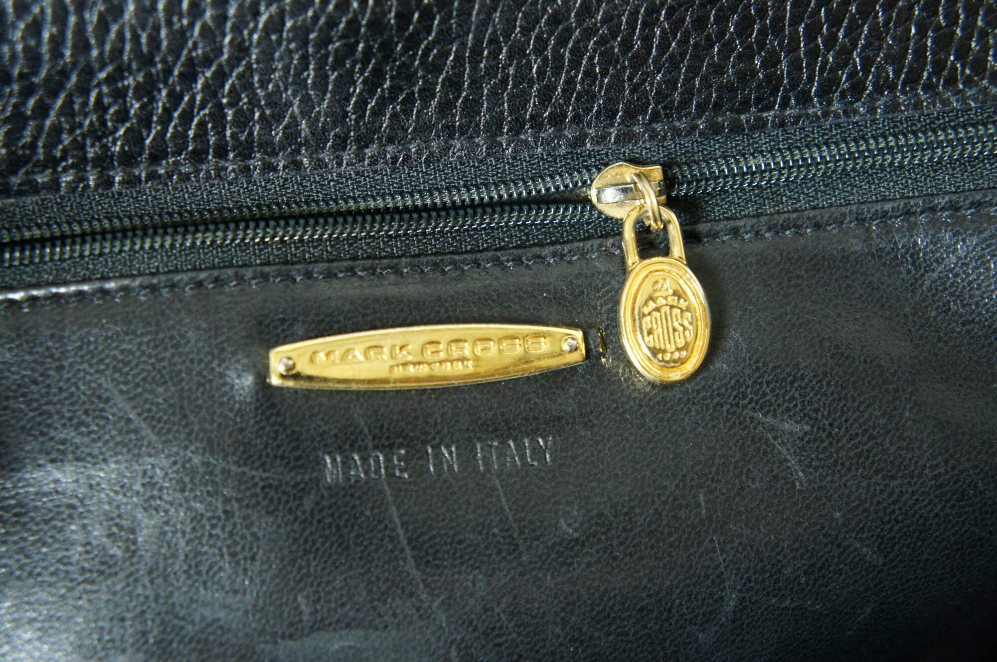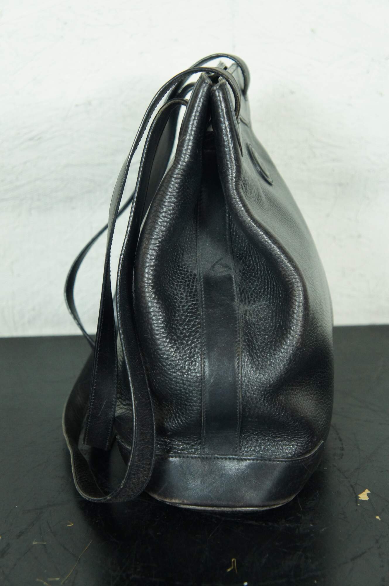Late 20th century Mark Cross black pebbled leather shoulder bag / bucket bag / purse. double snap closure; one zippered interior pocket. Two fixed length straps / handles. Made in Italy.