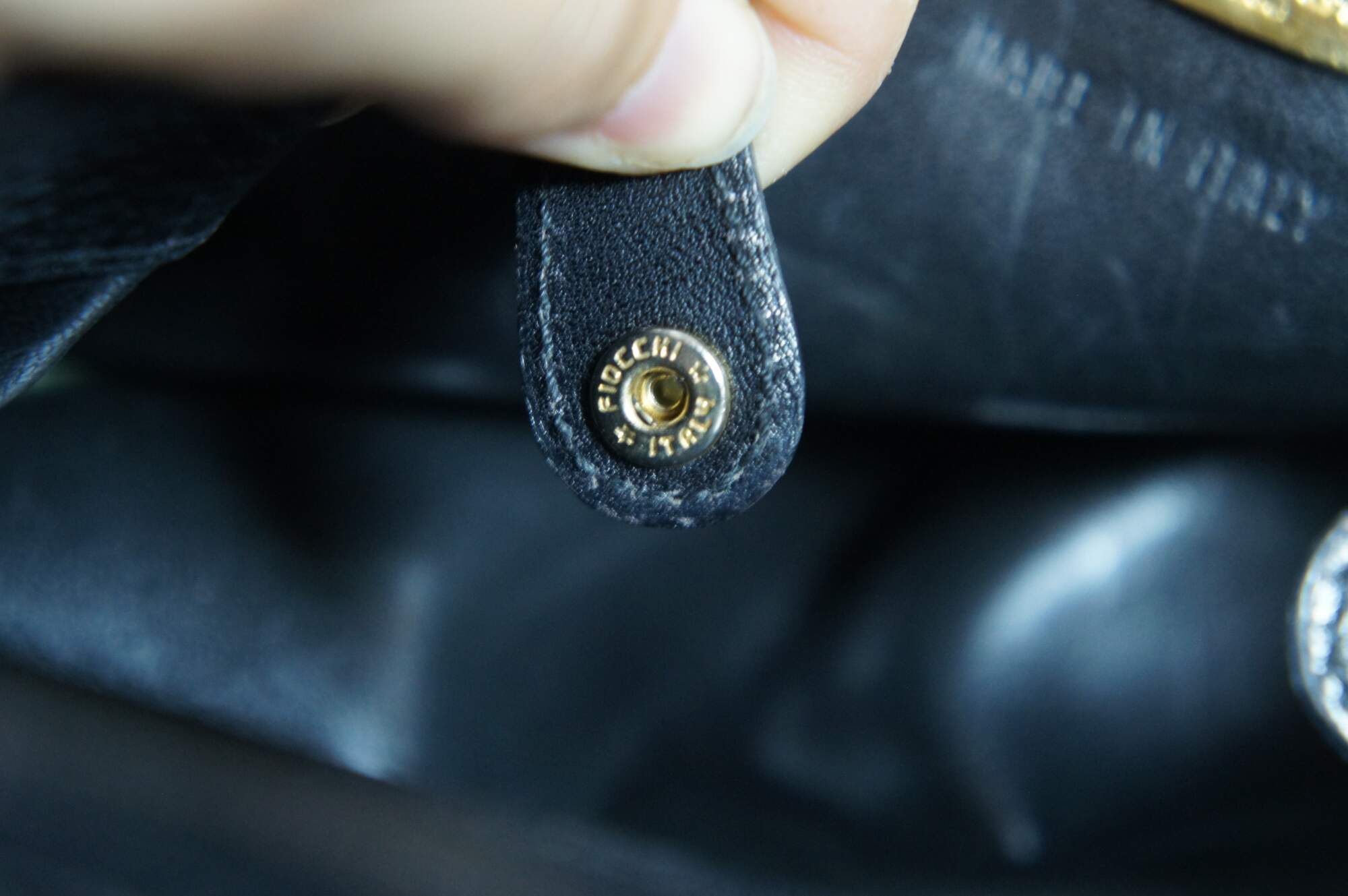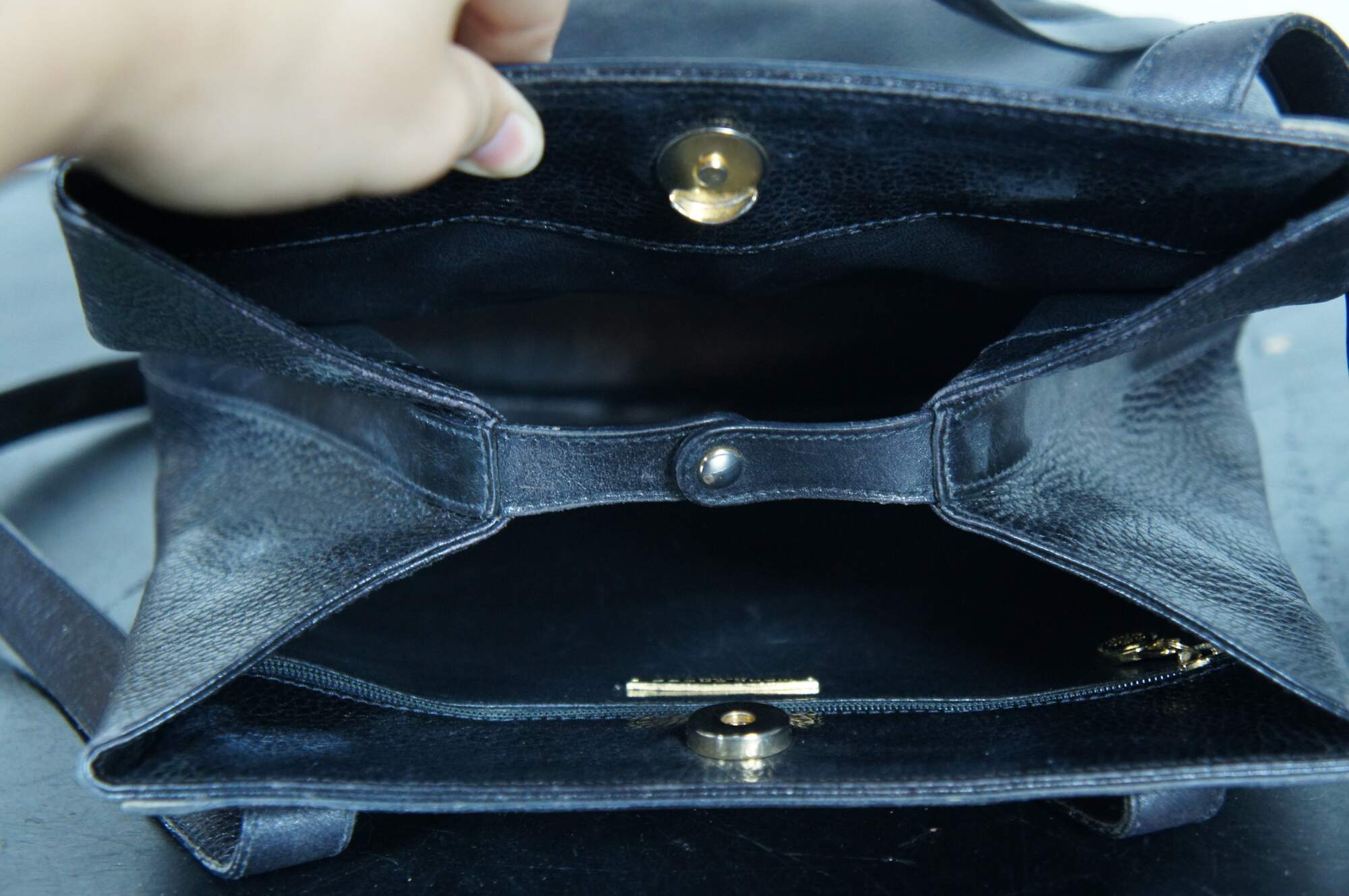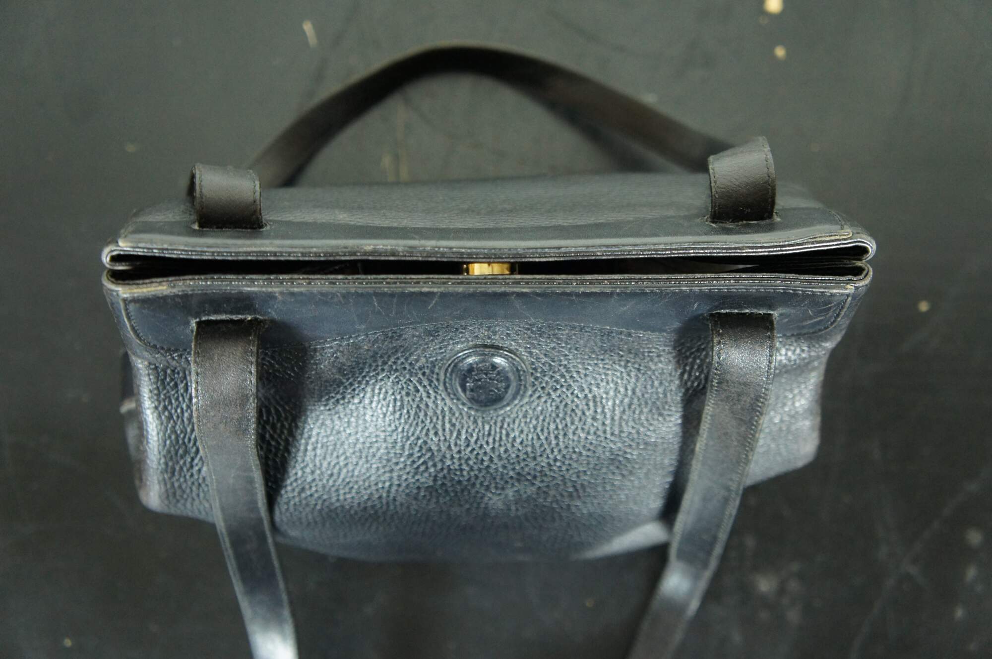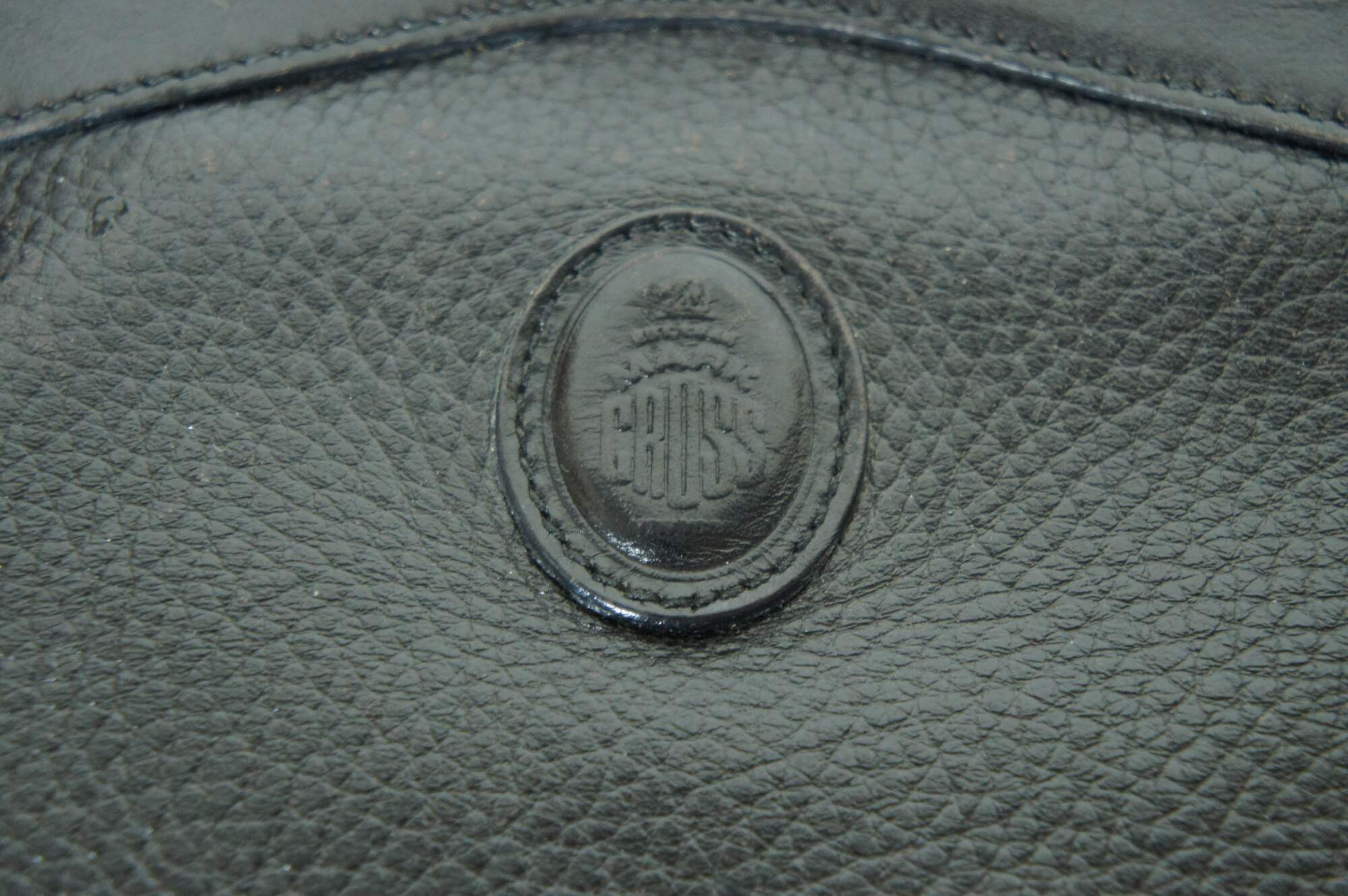 Late 20th century Mark Cross black pebbled leather shoulder bag / bucket bag / purse. double snap closure; one zippered interior pocket. Two fixed length straps / handles. Made in Italy.