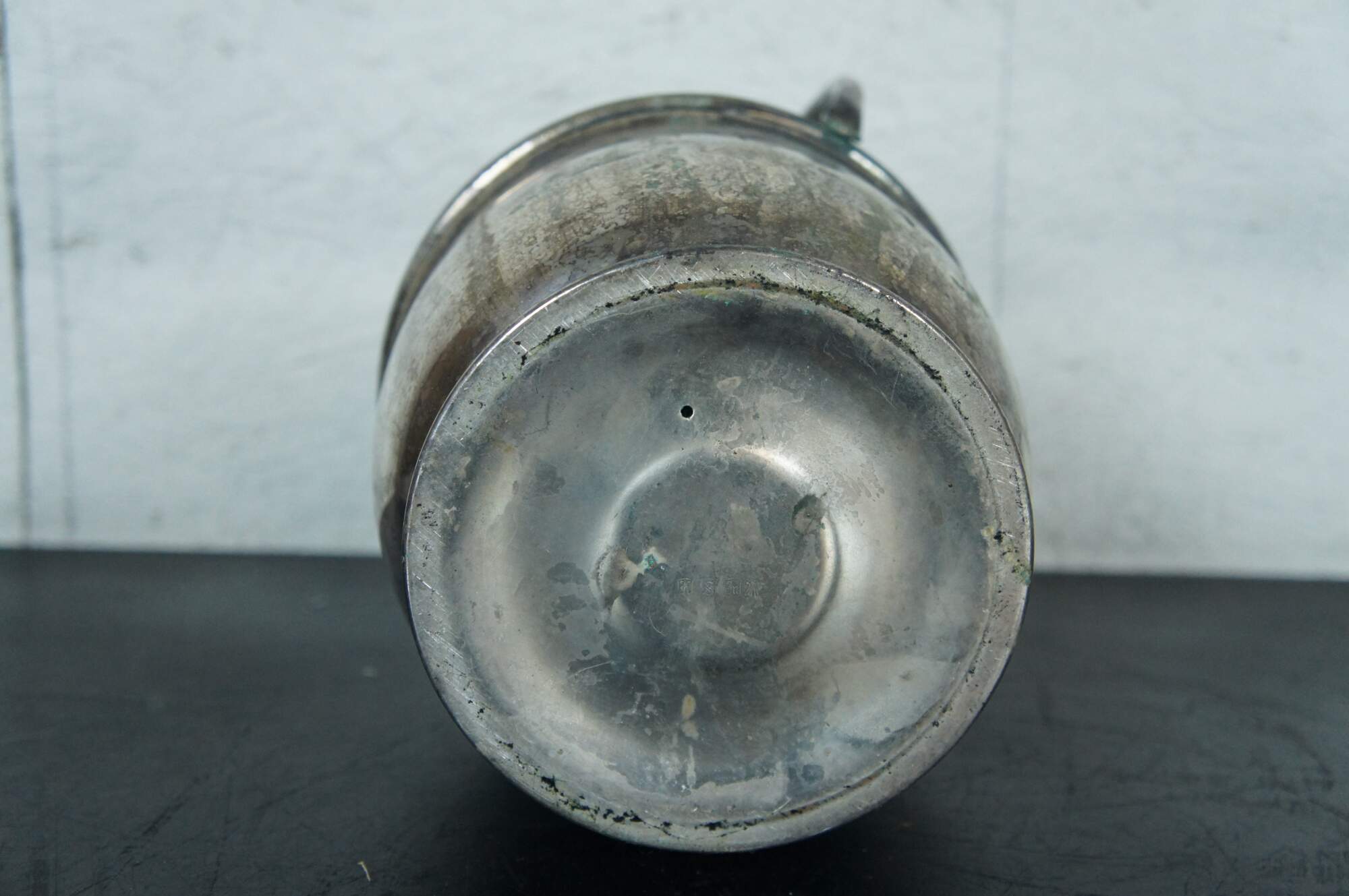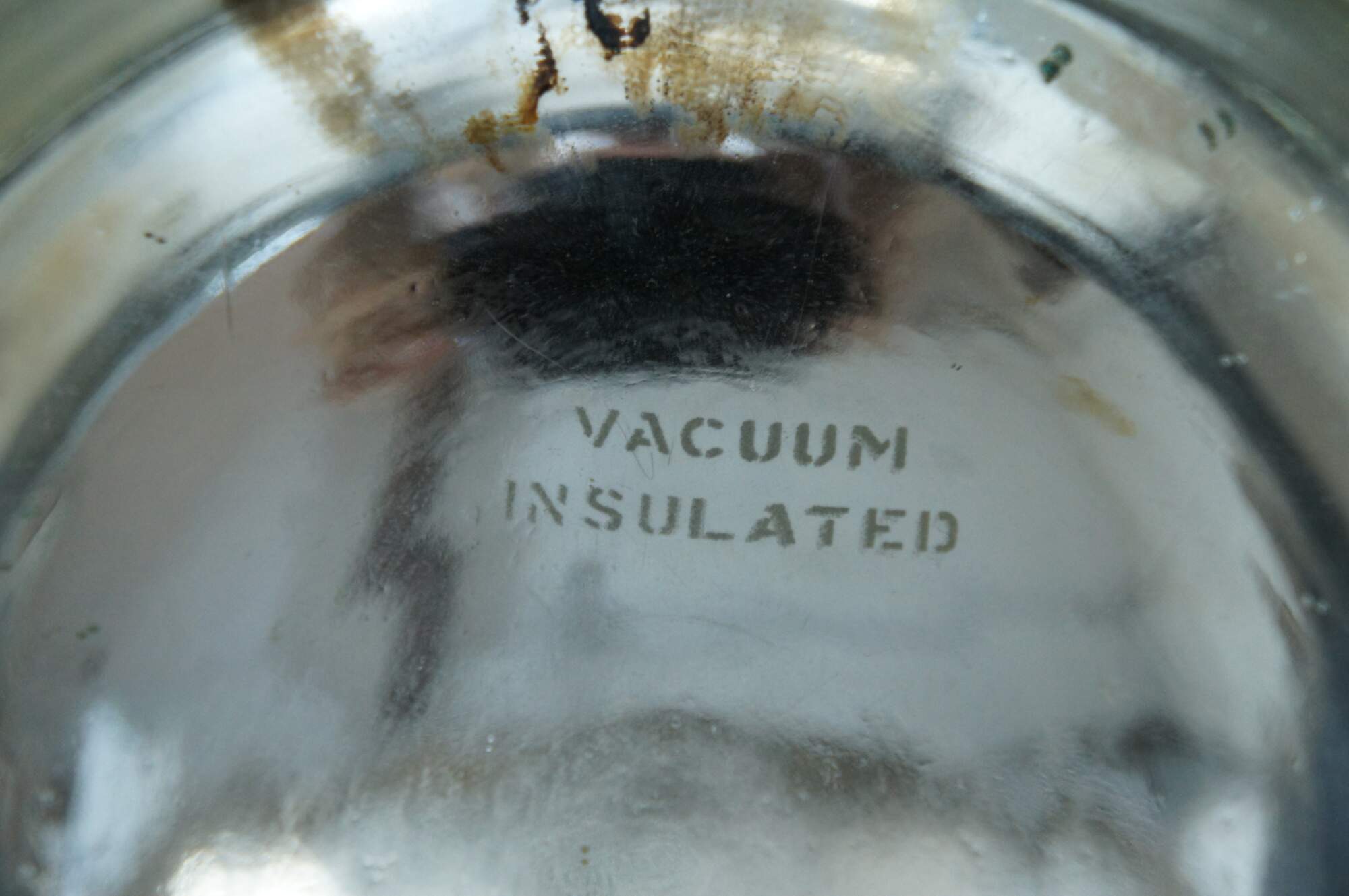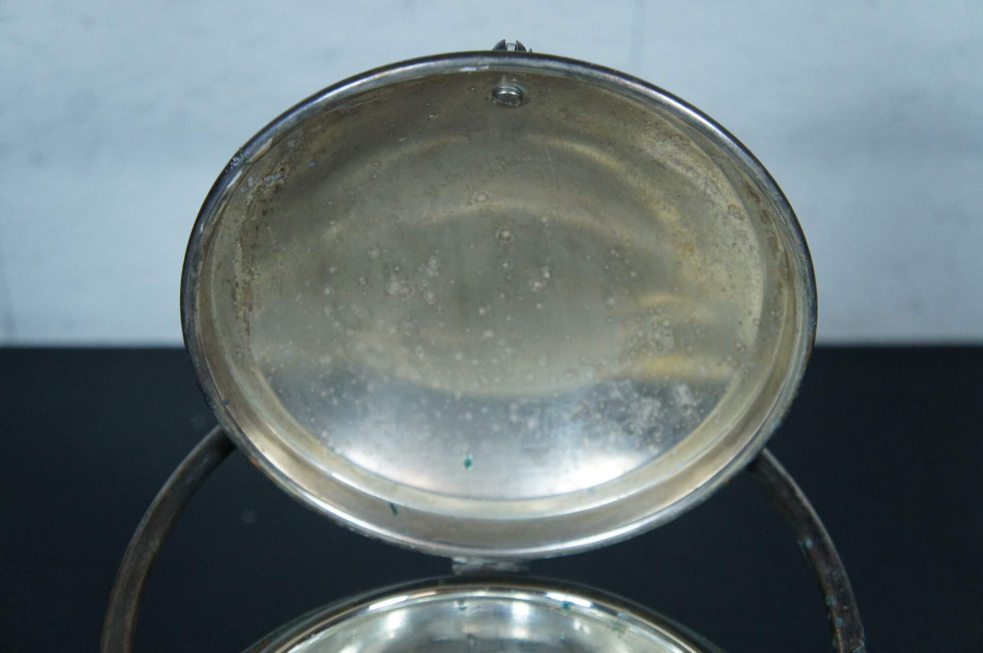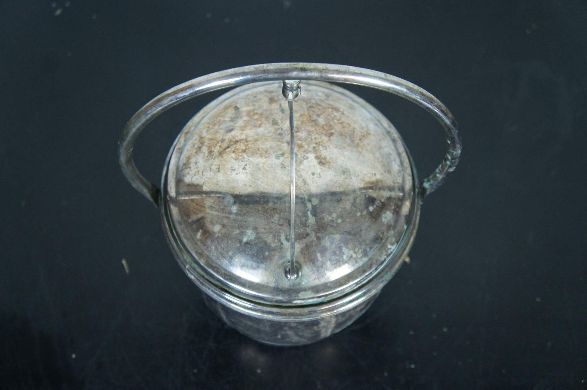 Early 20th century silver plate vacuum insulated ice bucket by Forbes Silver Company. Plain round design with simple art deco ridges around the rim; lid swivels open attached to handle.