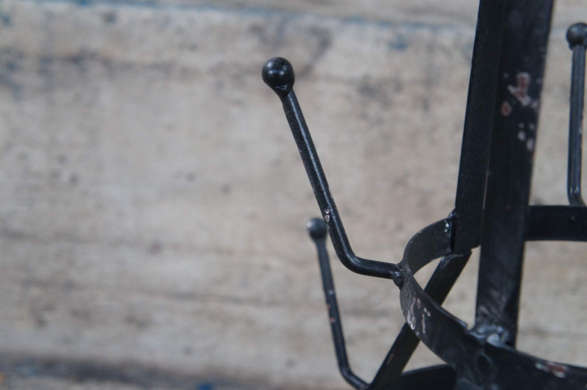 Mid century French Herisson industrial reclaimed bottle / mug drying rack. Made of iron featuring 28 prongs or hooks for hanging. These were also called a "IF" or a "Hedgehog", but are more commonly used now for coats / hats / umbrellas ect. You can still find these today being used in cafes and farmhouses for drying empty, washed bottles.