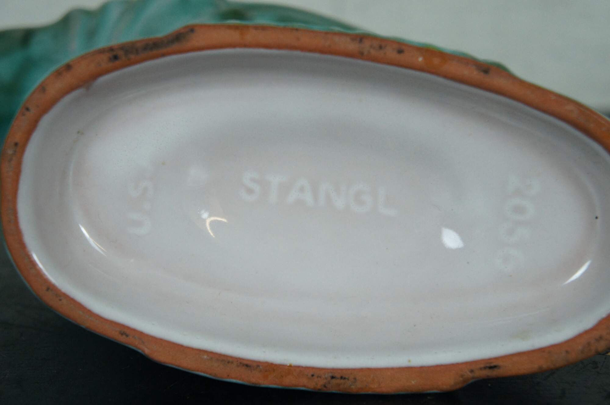 "Stangl Pottery was originally founded by Samuel Hill in 1814 in Flemington, New Jersey, and known as Samuel Hill Pottery. Hill was a utilitarian potter, producing drain pipes and storage crocks and jars from Flemington's red earthenware clay. Abraham Fulper later became Hill's partner and Fulper bought the company in 1860, naming it Fulper Pottery. He continued in the utilitarian pottery business, but produced primarily stoneware, rather than earthenware. By 1900, the company, now Fulper Pottery Co., was under the direction of William H. Fulper II, grandson of Abram Fulper. William H. Fulper II was responsible for the development and introduction of Fulper Pottery Co.'s now renowned Vasekraft art pottery in 1909. In 1910, he hired ceramic engineer Martin Stangl to develop new Fulper Pottery shapes and glazes. By 1924, Martin Stangl was vice president of the company, and was responsible for the introduction of America's first open stock solid-color dinnerware. Upon Fulper's death in 1928, Martin Stangl became president of the company and only the Stangl Pottery line was produced after 1935. From 1929 and onward, the pottery had the marking Stangl or Stangl USA. Also in 1928, the company moved to Trenton, New Jersey. In 1935, production was ceased at the small remaining Flemington location, and that building was utilized solely as a retail showroom for the company's ceramic products, becoming one of the Nation's first "factory outlets". By the 1940s, hand-painted dinnerware had become popular, augmented in 1942 with the introduction of Stangl's best-known product, hand-carved, hand-painted dinnerware. The company's name was changed to Stangl Pottery in 1955, but the company's dinnerware had the Stangl mark from 1930. When Stangl died in 1972, the company's assets were sold to Frank Wheaton, Jr., the owner of Wheaton Industries. The pottery was produced until 1978 when Pfaltzgraff bought the rights and the rest of the assets were liquidated. The original Flemington, New Jersey, location and showroom were bought in May 2011 to make space for a restaurant, a studio, and an art gallery." (Source: Wikipedia / Stangl Pottery)