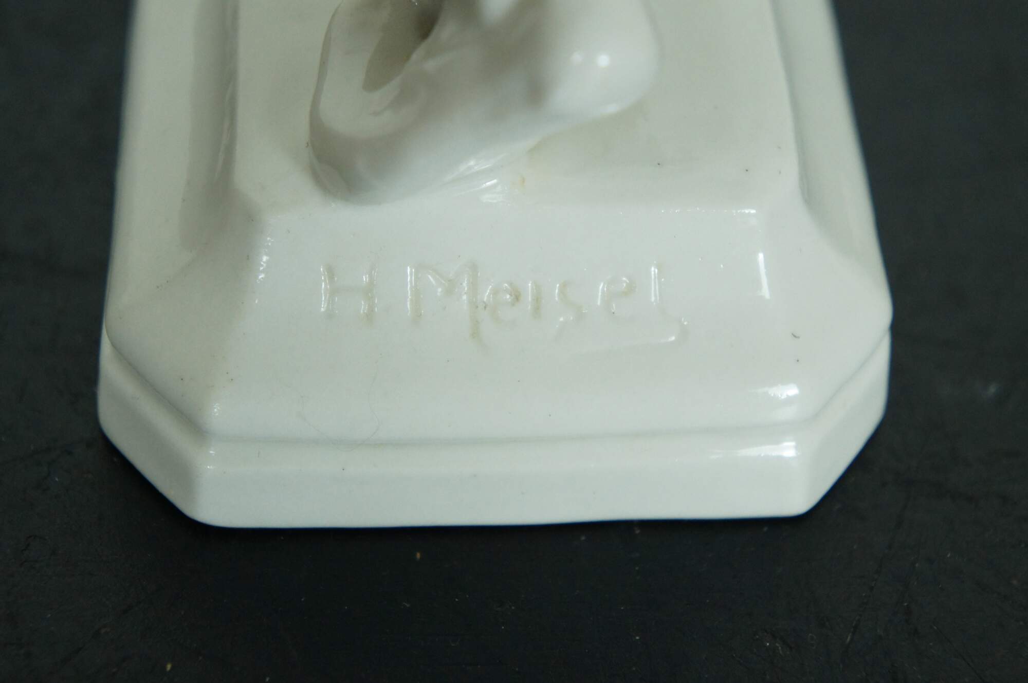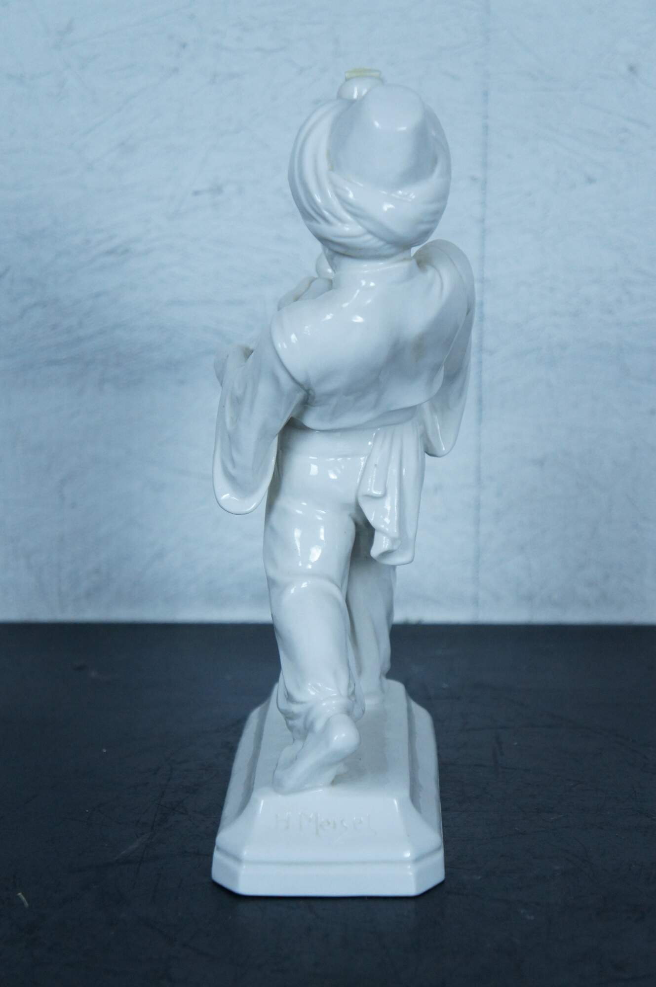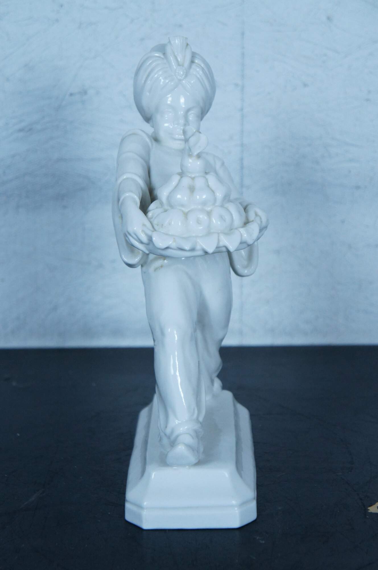 Antique circa 1936 white porcelain statue / figurine of a moor / Turk carrying a tray of fruit by Hugo Meisel (German sculptor/artist, 1887-1966). Produced by Schwarzburger Werkstatten fur Porcellankunst.