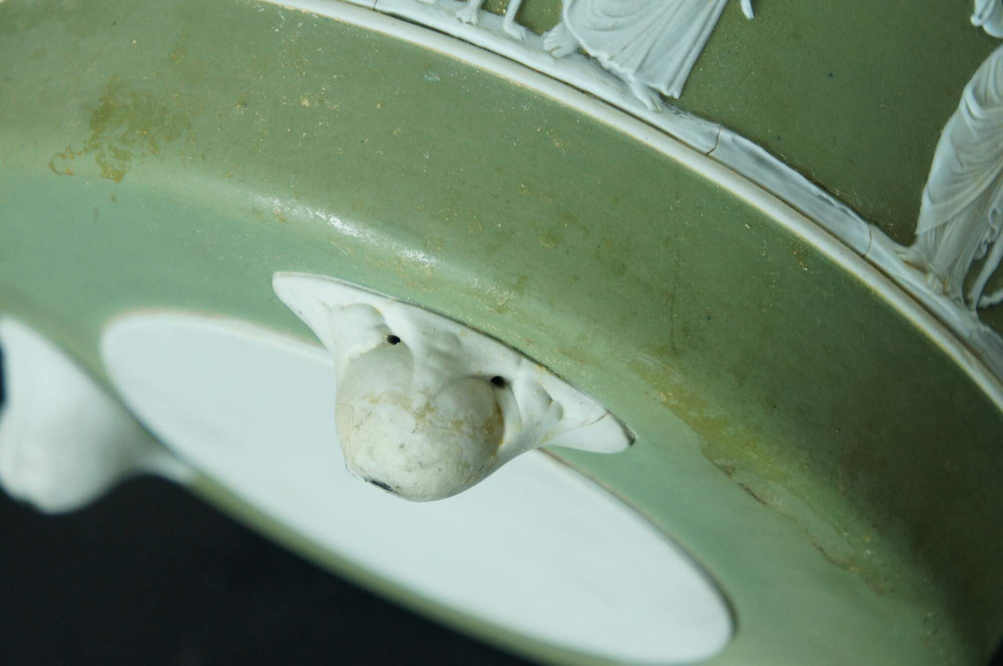 Rare Antique Wedgwood England Green Jasperware Footed Planter Cachepot 8"