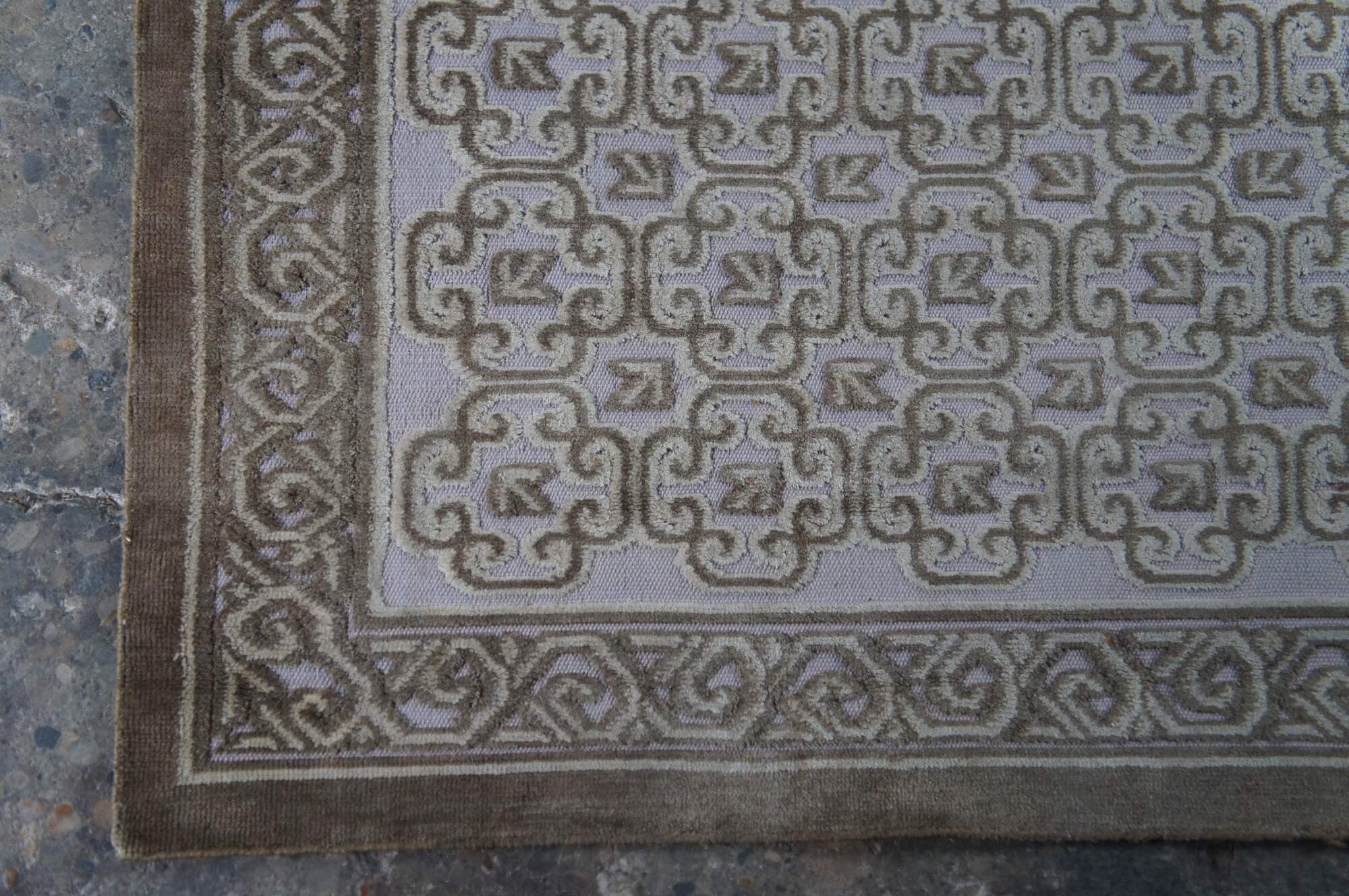 Vintage JD Staron luxury broadloom Tibetan / Moroccan style area rug, mat or carpet featuring a modern geometric repeating pattern.