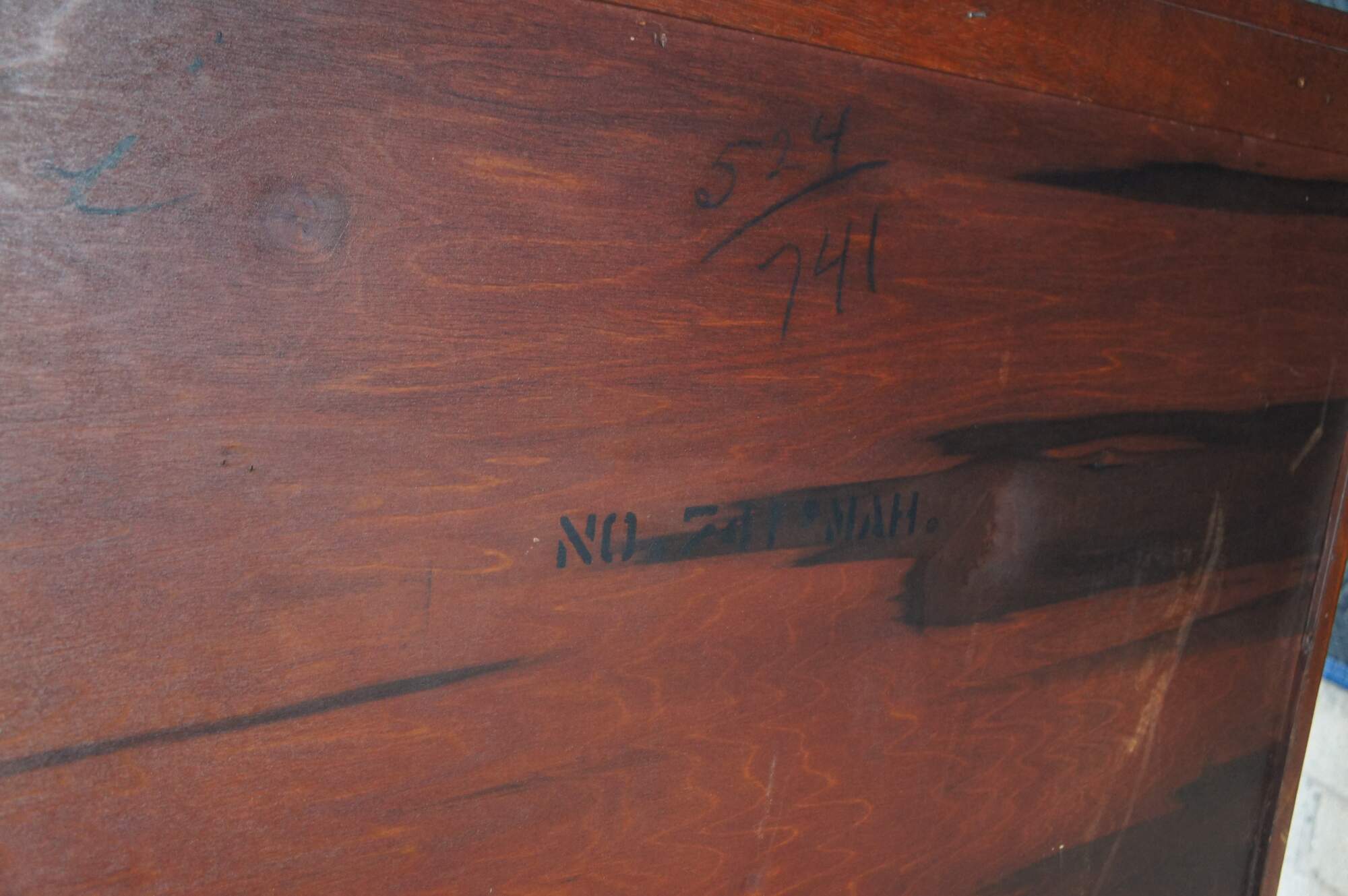 Antique Georgian style cupboard / china cabinet / hutch. Made of flamed mahogany featuring open pediment crown over large fretwork door that opens to mulitple shelves with plate grooves over a three drawer chest and serpenine base with flared legs.