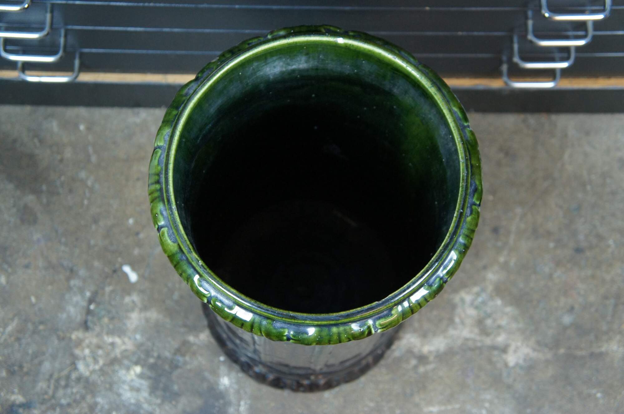 Antique Brush McCoy Green Brown Glaze Majolica Pottery Umbrella Cane Stand 23"