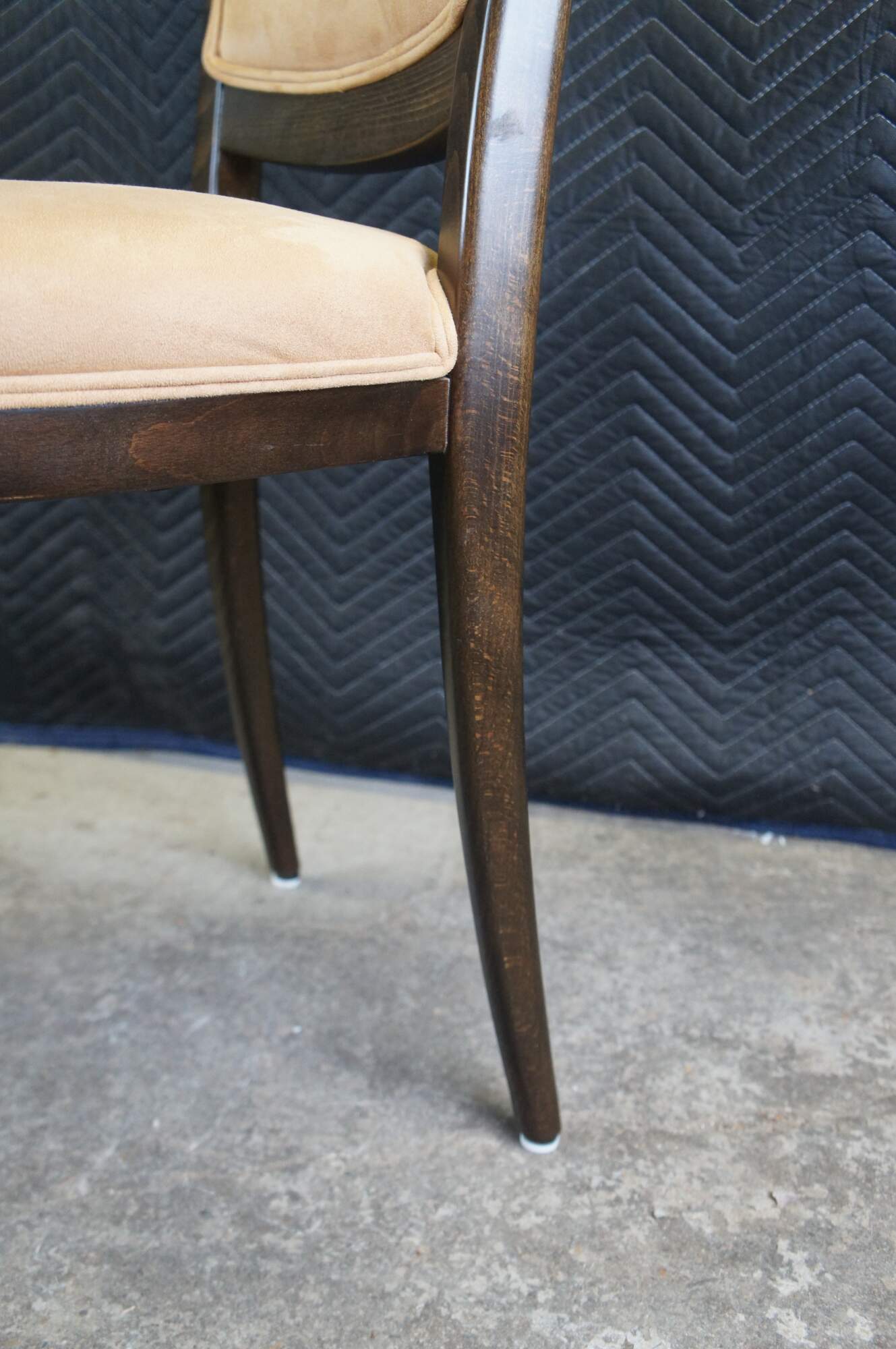 Four vintage modern Italian Parsons dining chairs featuring dark oak frame with suede upholstery. Made in Italy.