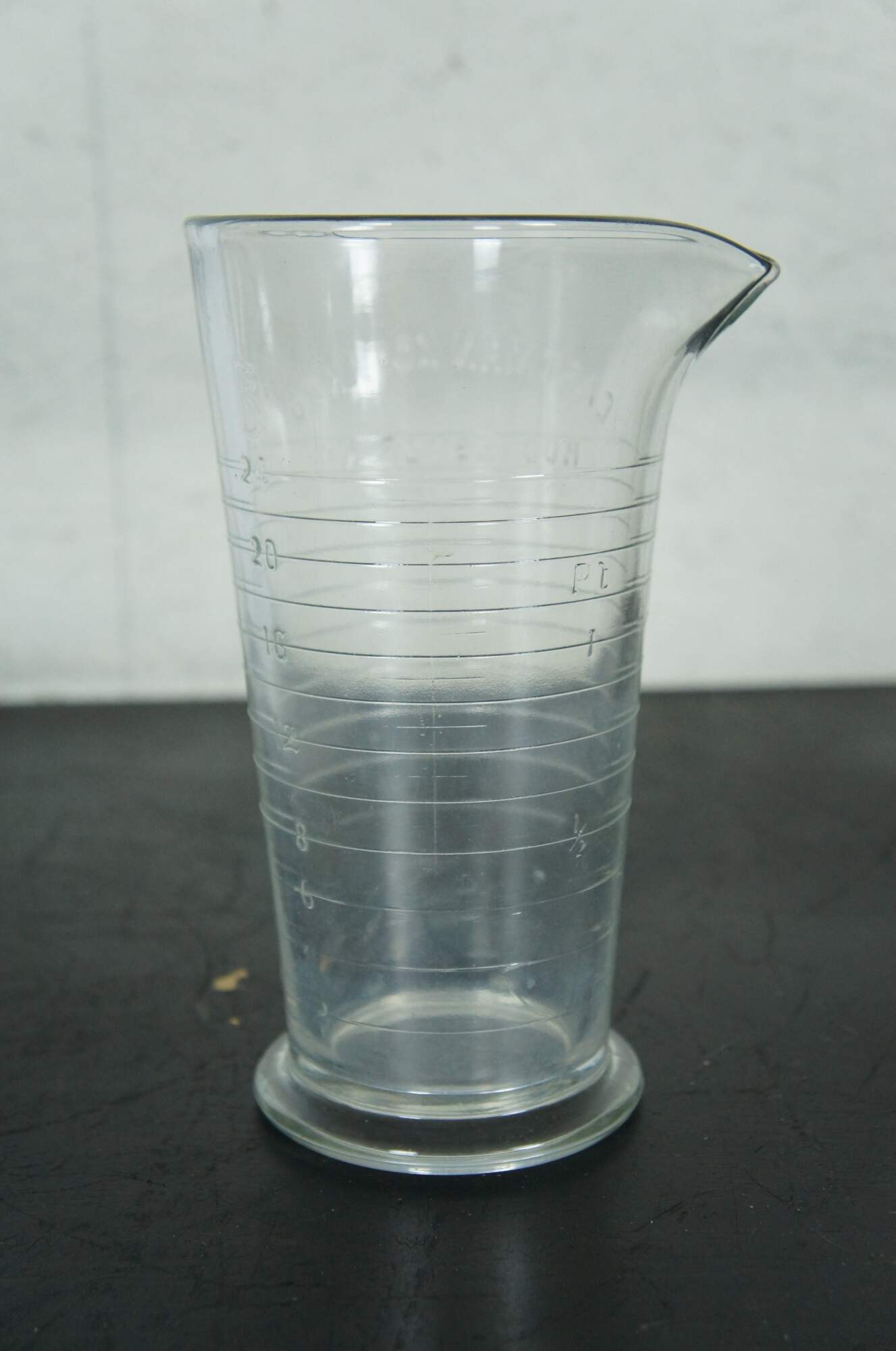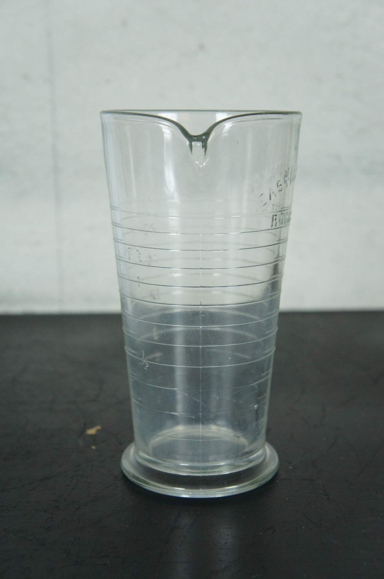 Circa 1940's Eastman Kodak 24 ounce glass mixing / measuring beaker and glass stirring rod / swizzle stick.