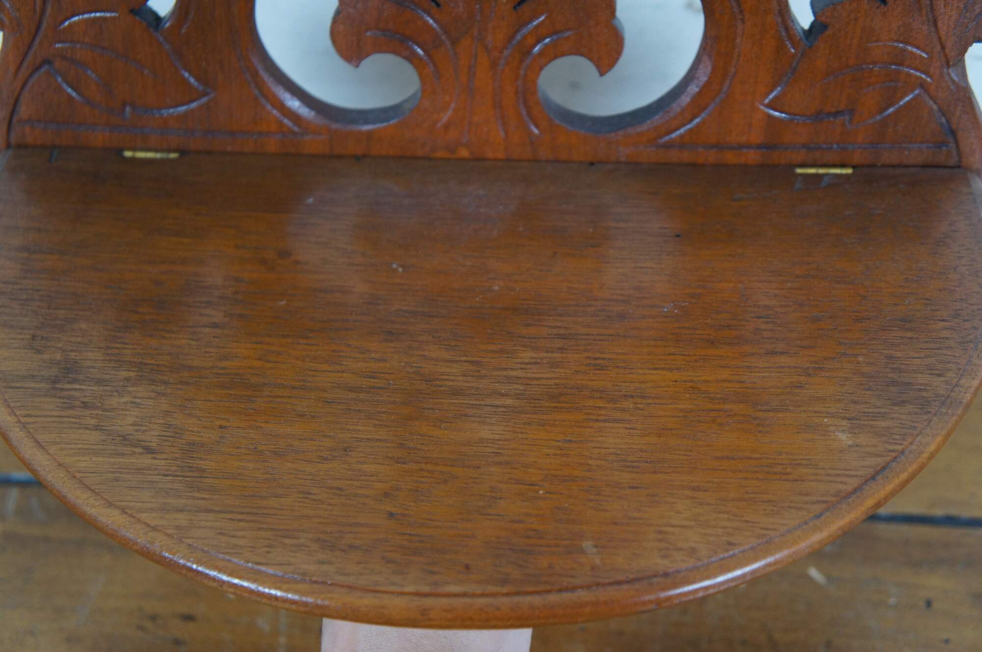 Early 20th century Victorian / Eastlake style wooden wall shelf carved with swirling leaves. Demilune shelf folds down. Impressed 173 on back.