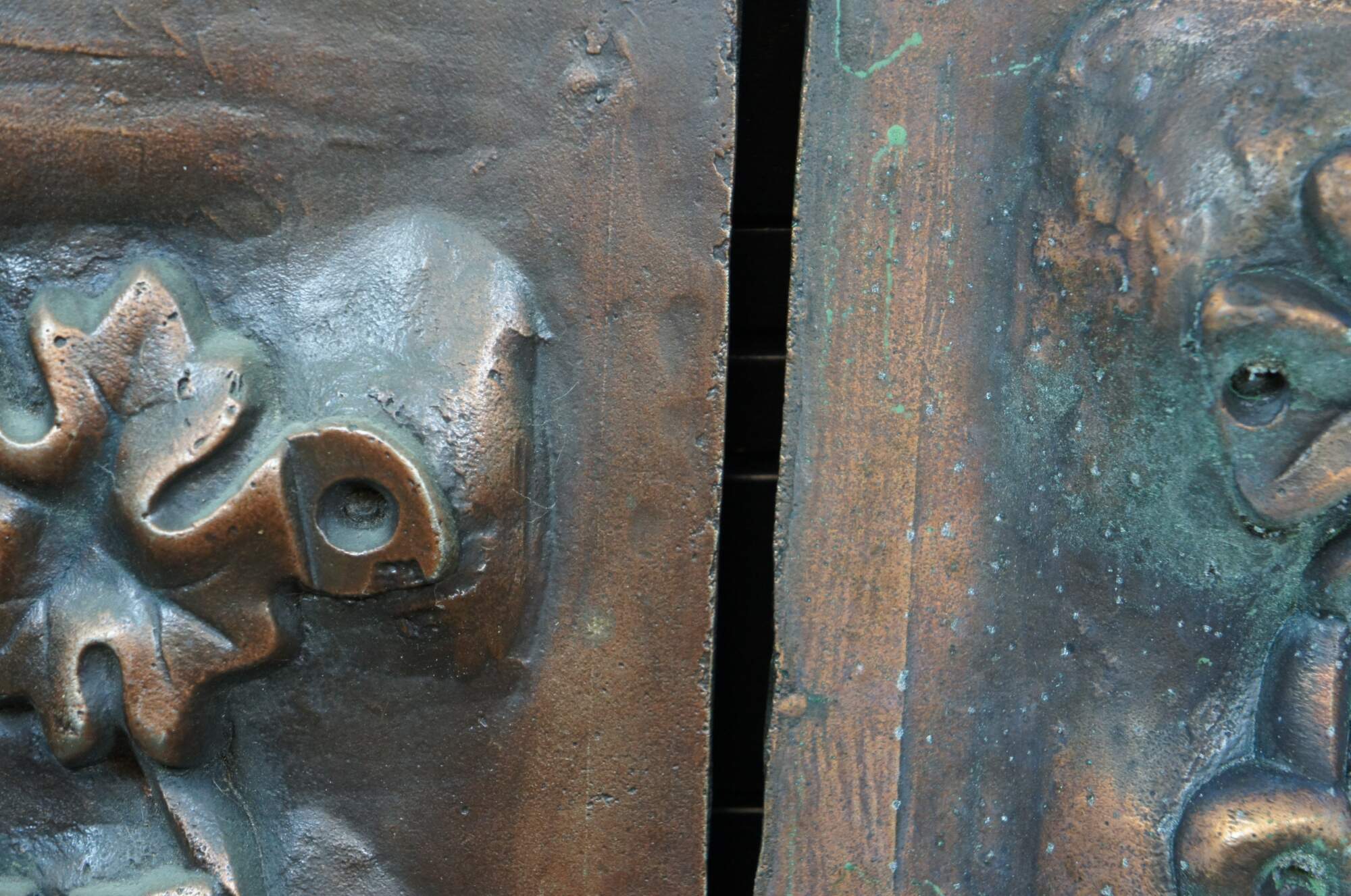 Two antique industrial salvaged copper molds / wall plaques / plates featuring a grapvine design in high relief. Very heavy.