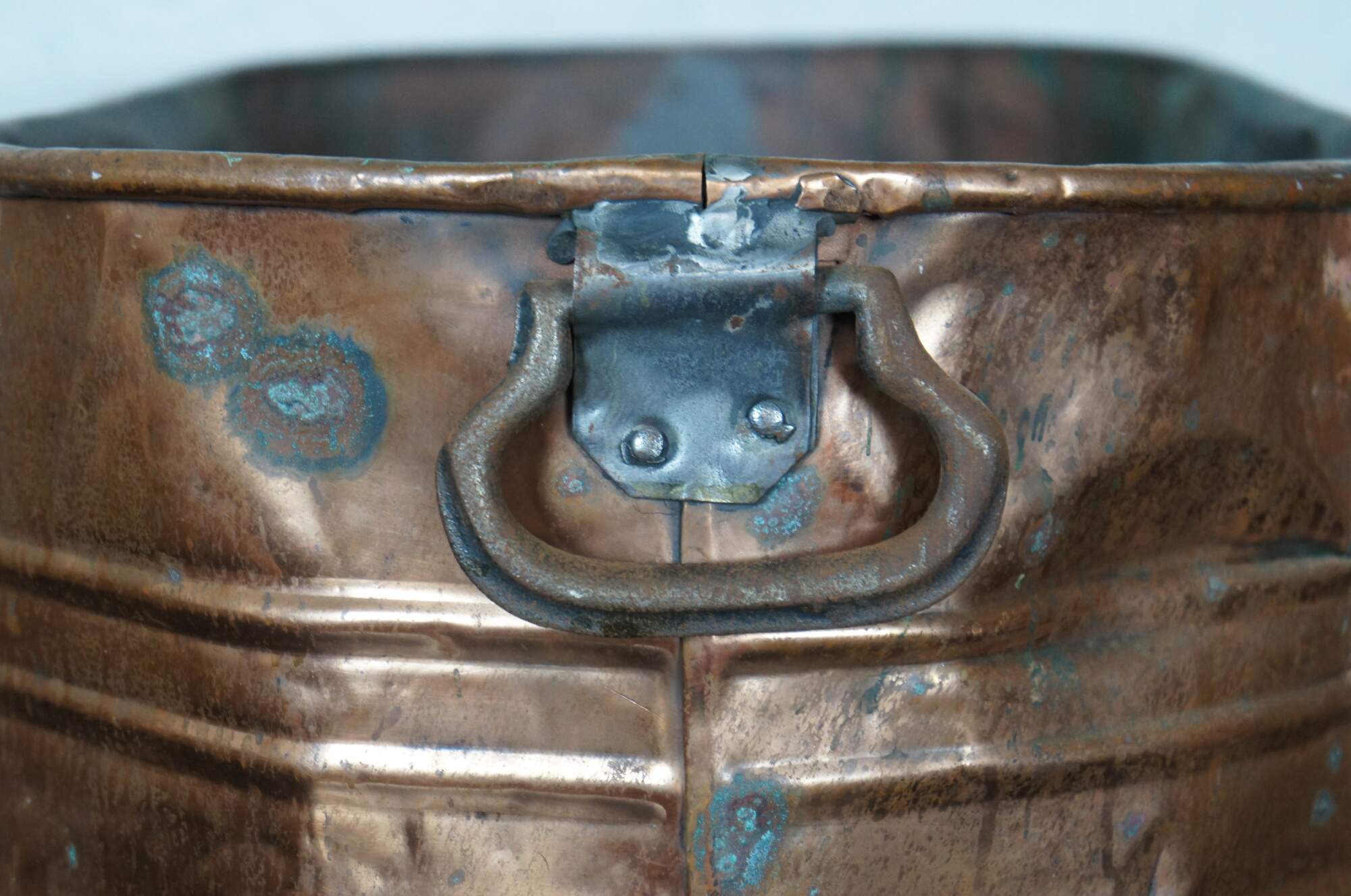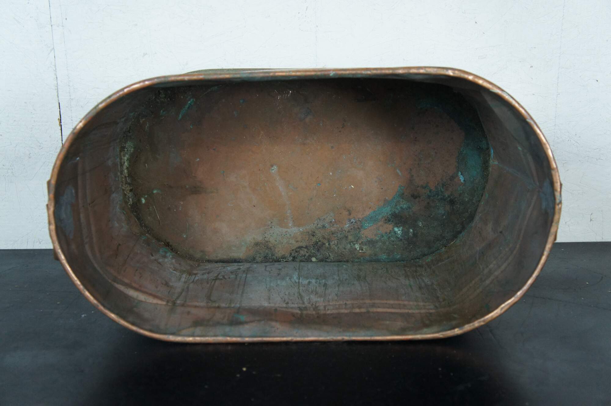 Early 20th century galvaized copper country or farmhouse wash tub / boiler - oval form with rotating iron handles.