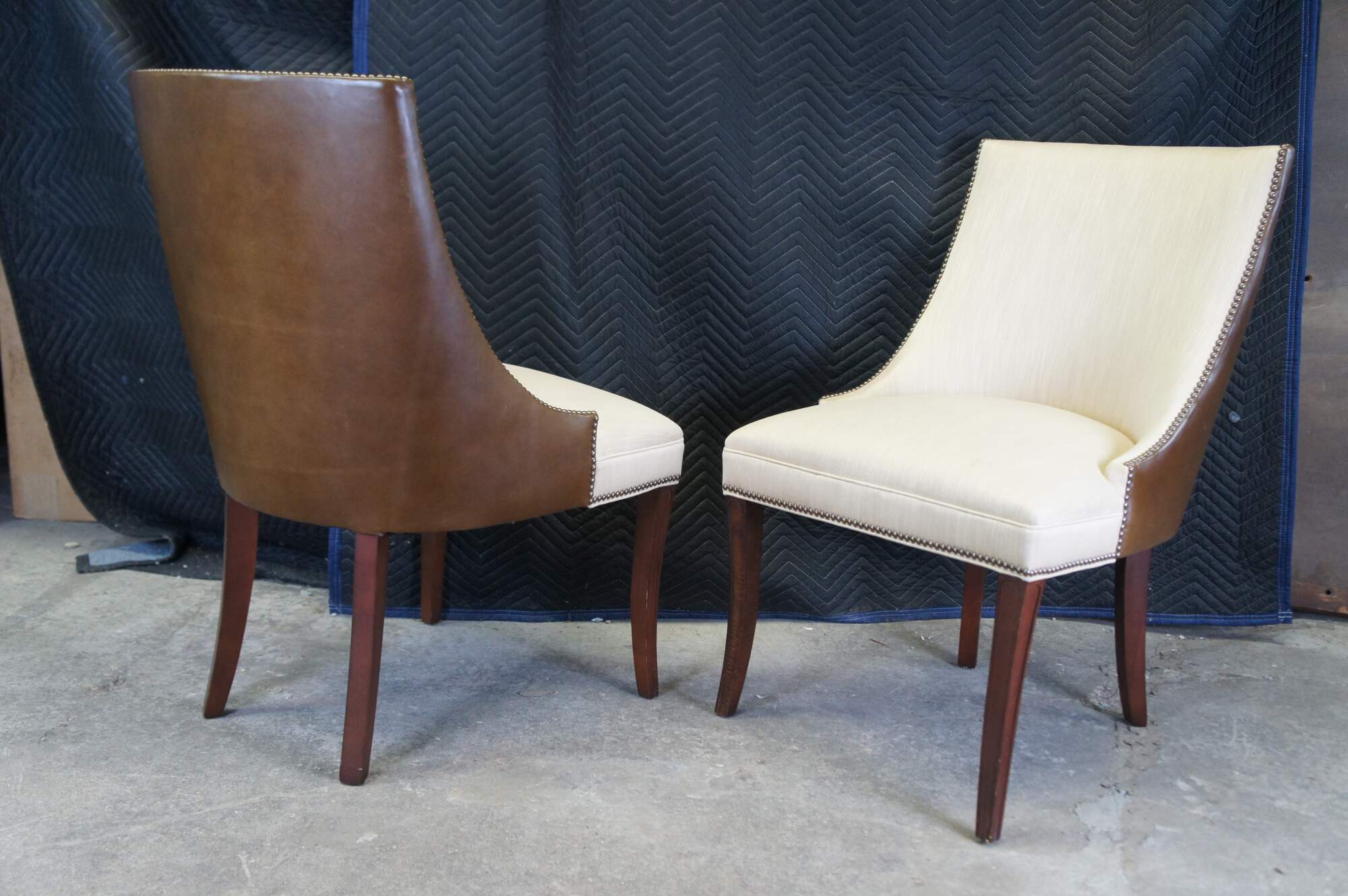Vintage Hickory Chair company Biedermeier style scoop back Hunt dining chairs. 1508-23 Hunt Chair, Plainestorie Herringbone, Cappuccino.