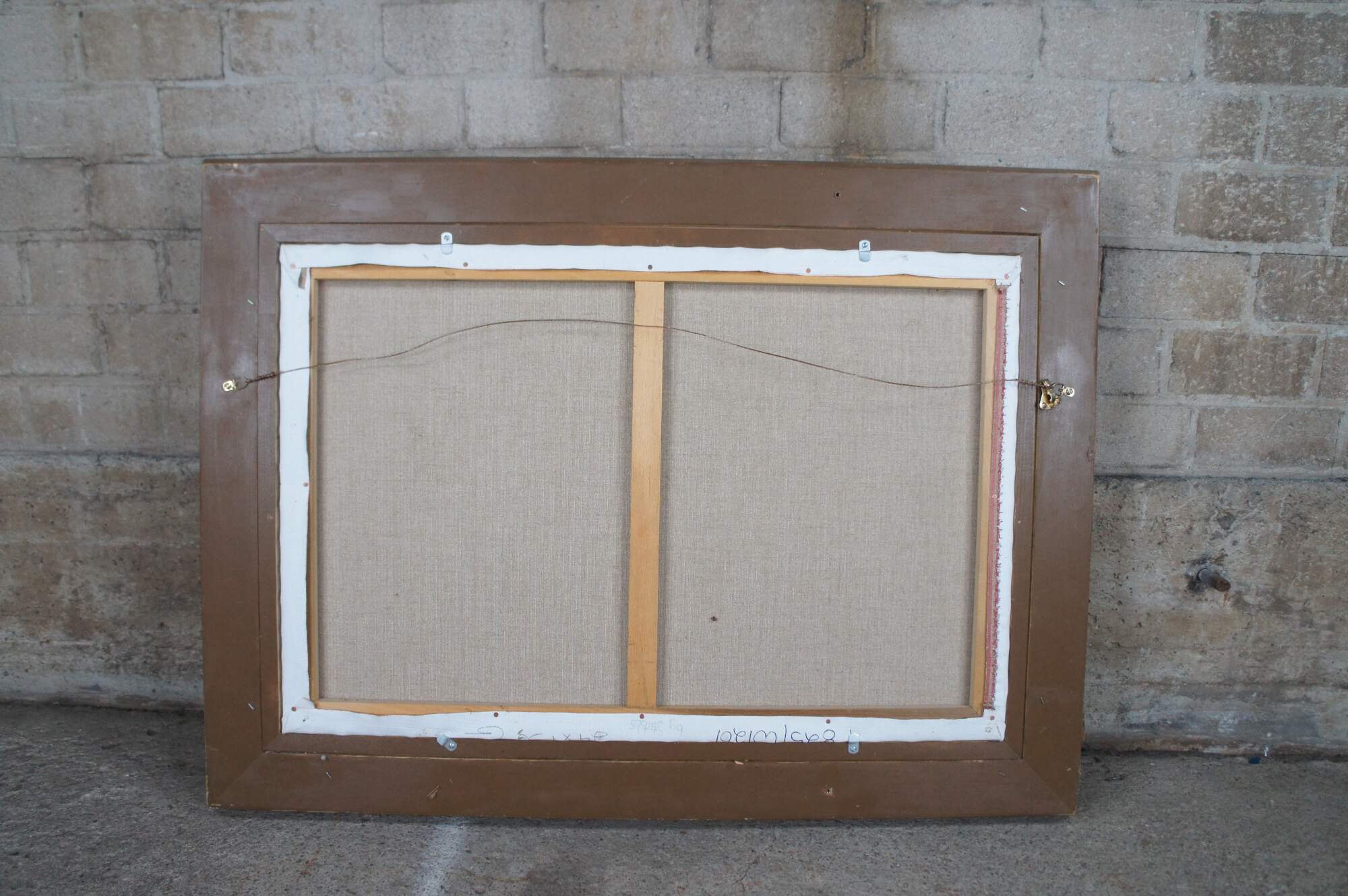 A lovely equestrian reproduction painting of Mares and Foals After George Stubbs. The original painted in 1763. Features four horses grazing under oak trees in the countryside. A fence and building can be seen in the background. The oil painting is on canvas and framed in Baroque manner.