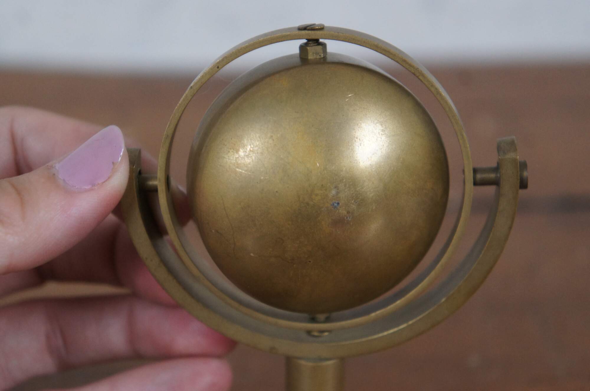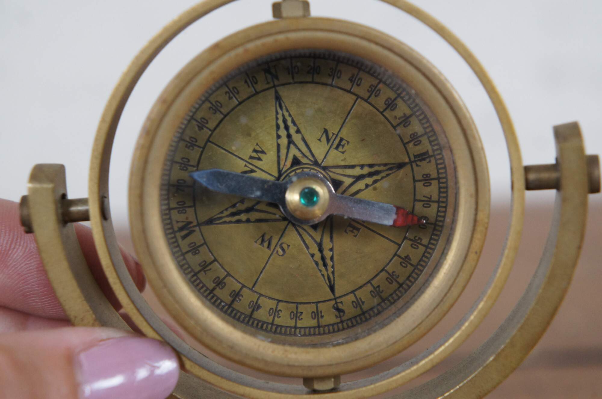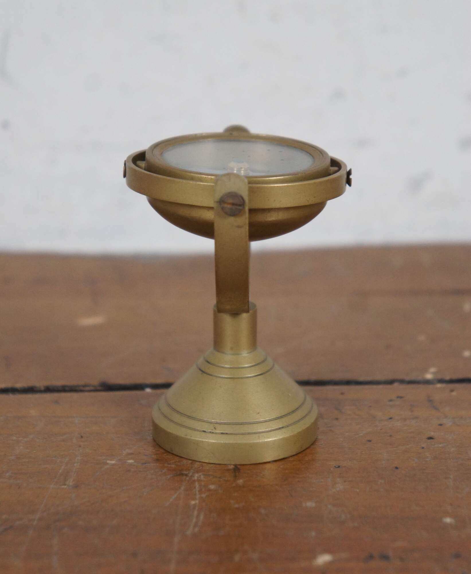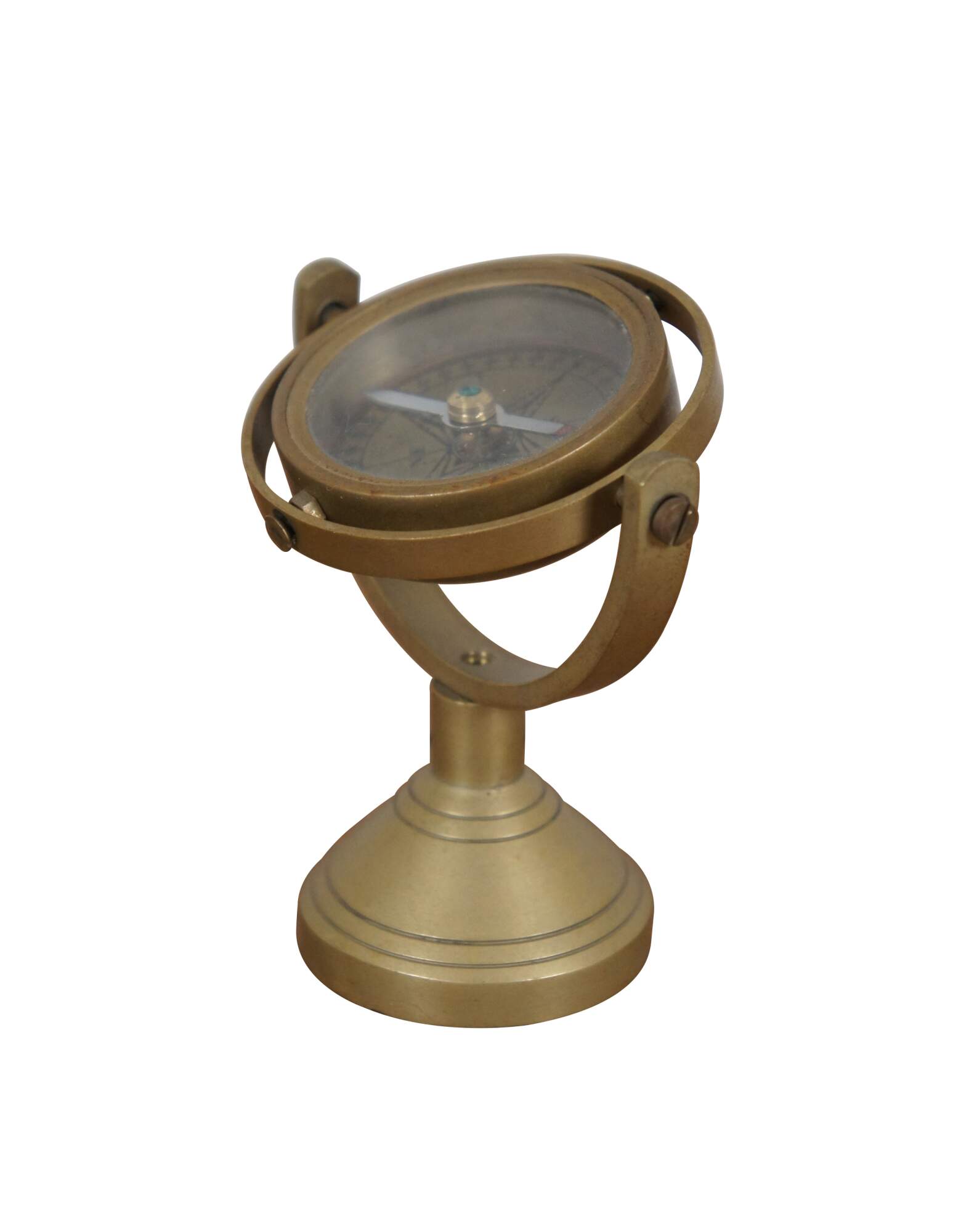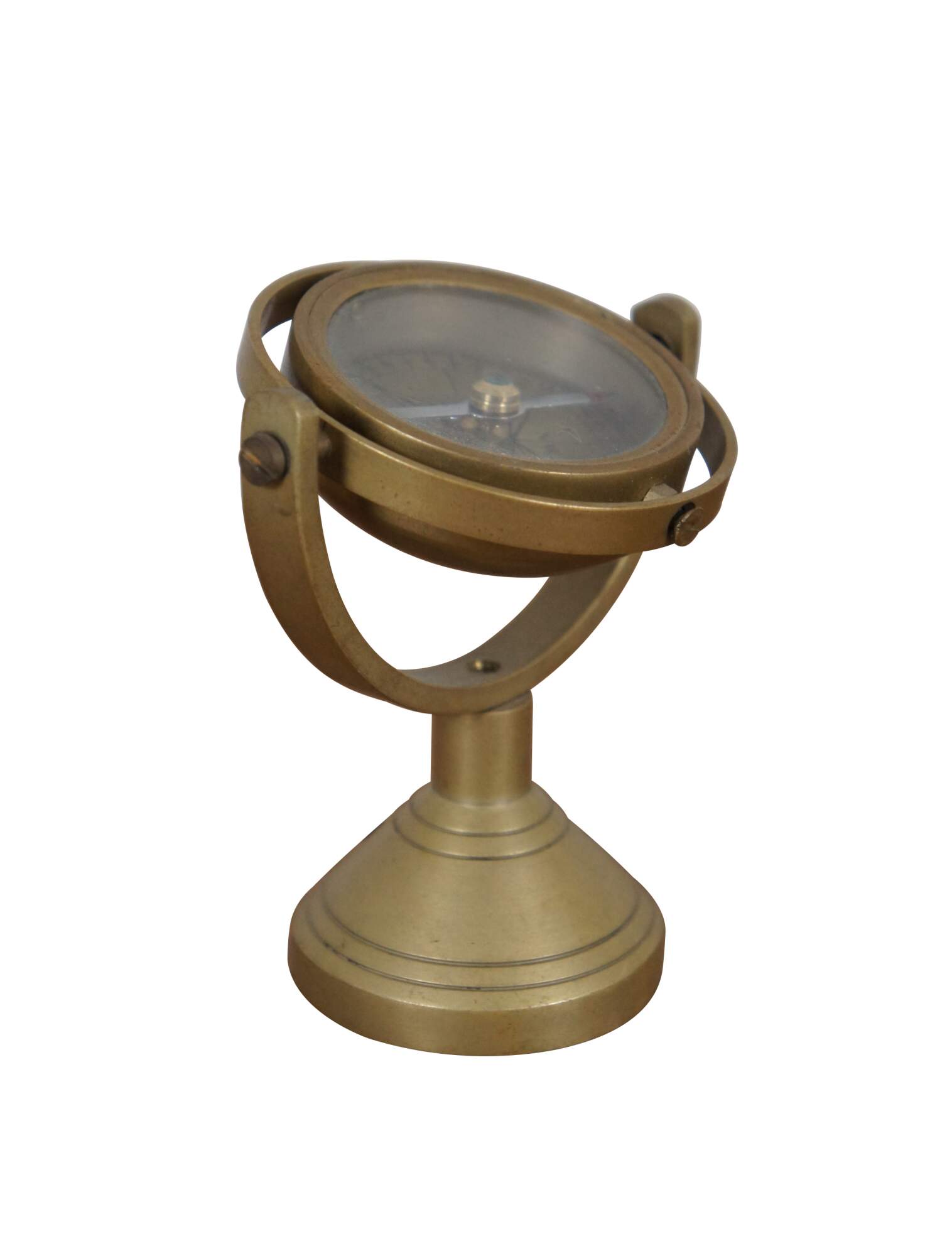 Late 20th century desktop library free standing brass swiveling / gimbal style nautical compass.