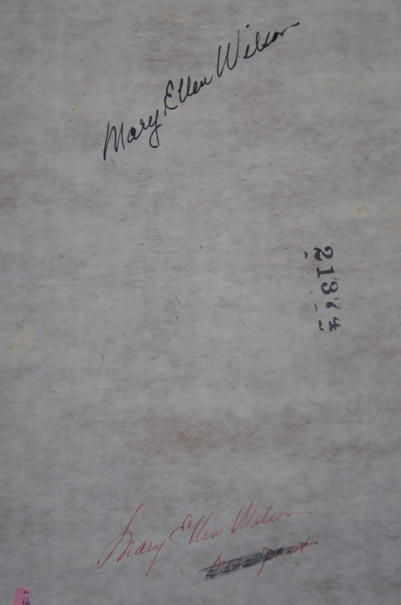 "Mary Ellen Wilson was born June 21, 1926. Mary Ellen was a 1944 graduate of Julienne High School in Dayton, Ohio. She was an accomplished water color artist and active member in Dayton Society of Painters and Sculptors, High Street Gallery, Western Ohio Watercolor Society, Tri-Arts Group, and University of Dayton Crèches program. She taught art formally and informally to many schools and groups. She passed away March 20, 2016." (Source: Dignity Memorial Obituaries)