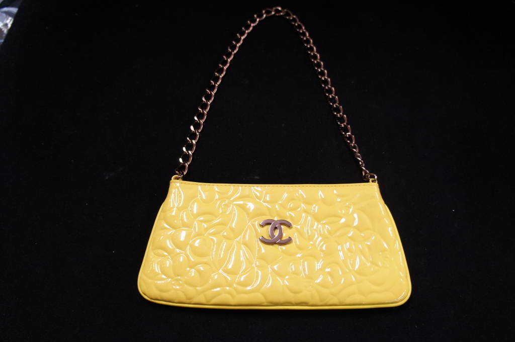 Vintage Yellow Patent Leather Chanel Evening Bag