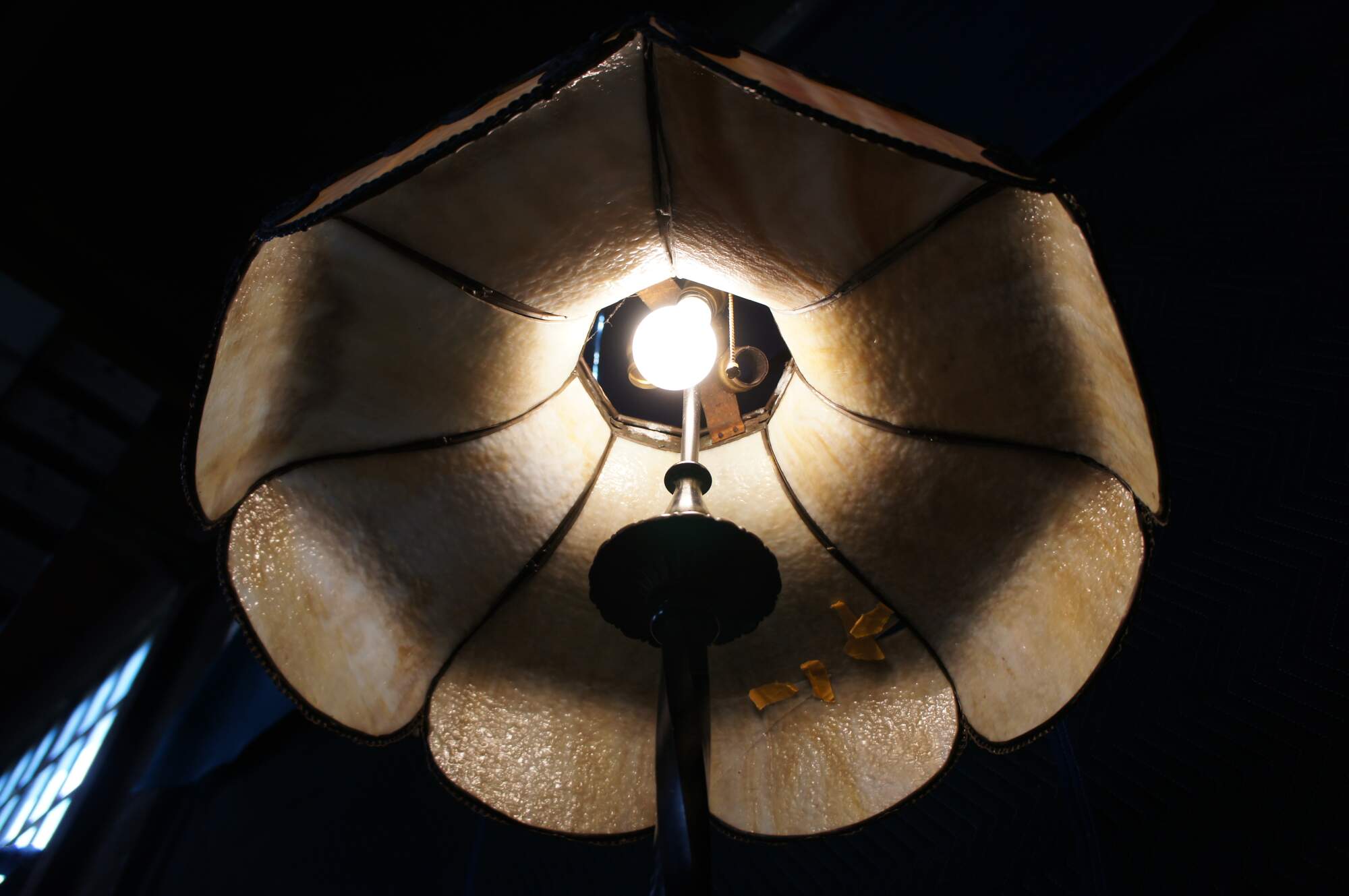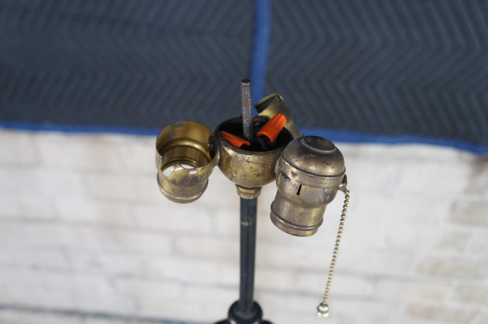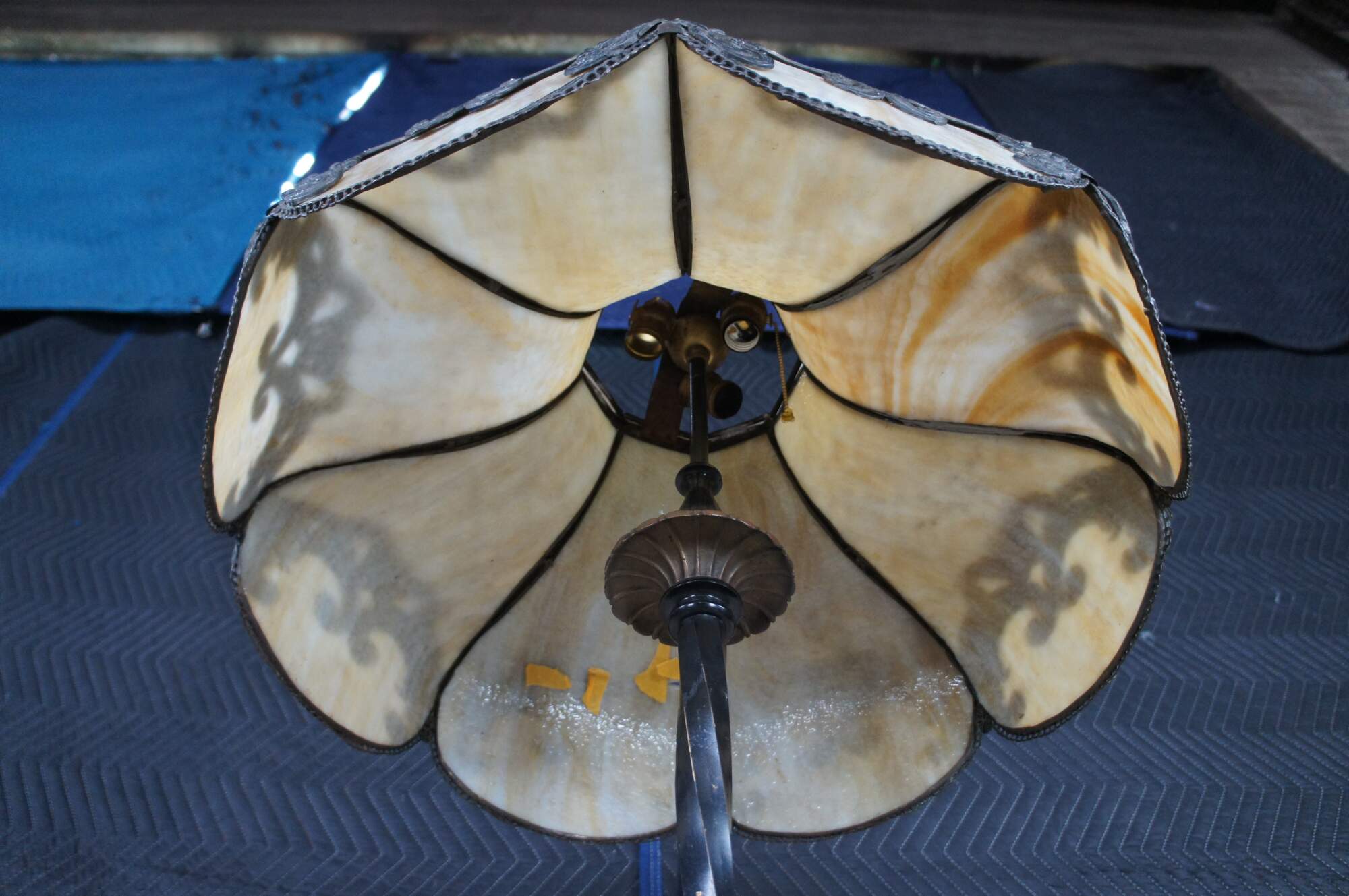 Fair condition, wear and distressing from age and use, rust / pitting, needs 2 sockets wired, breaks to glass.