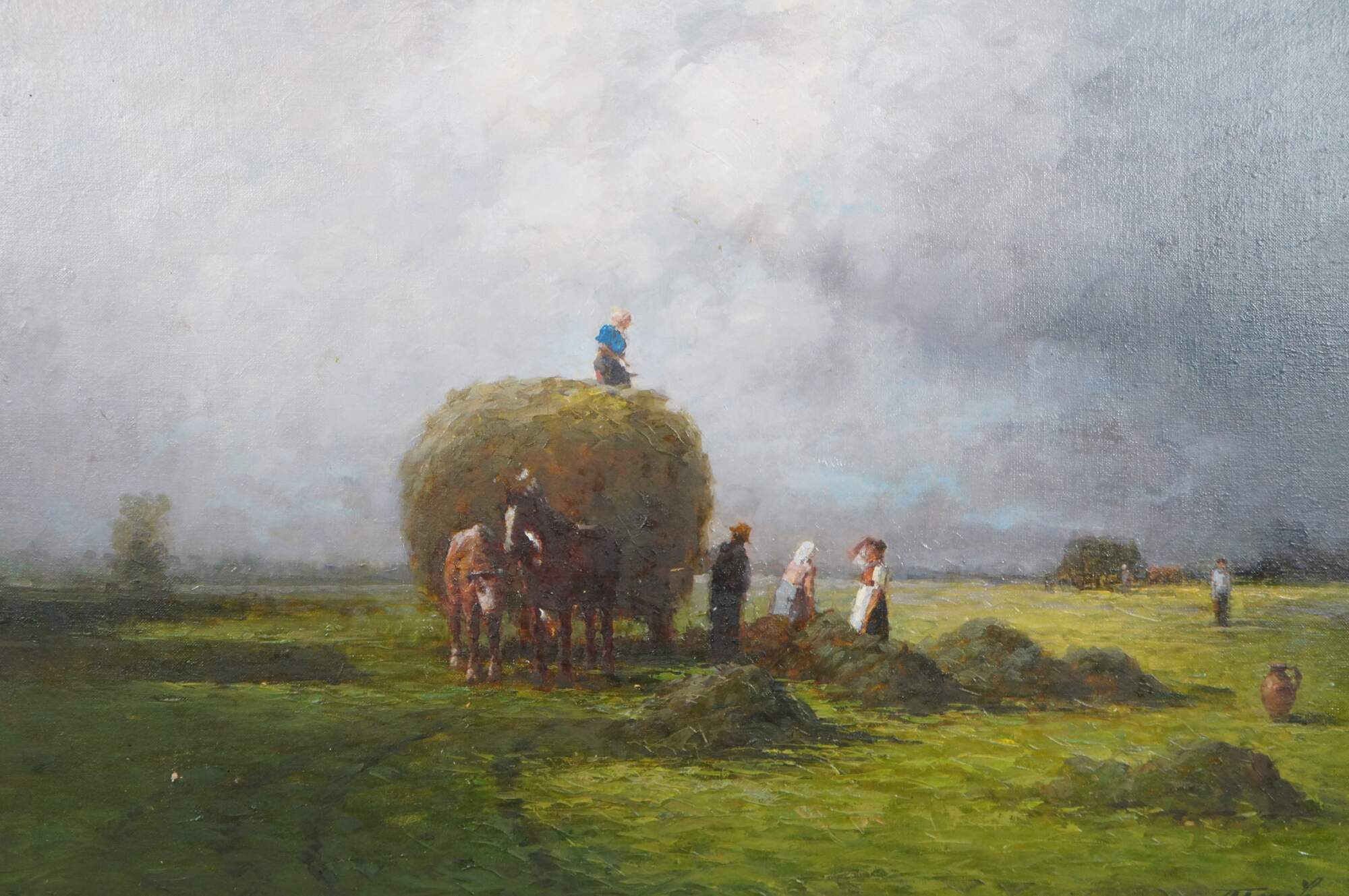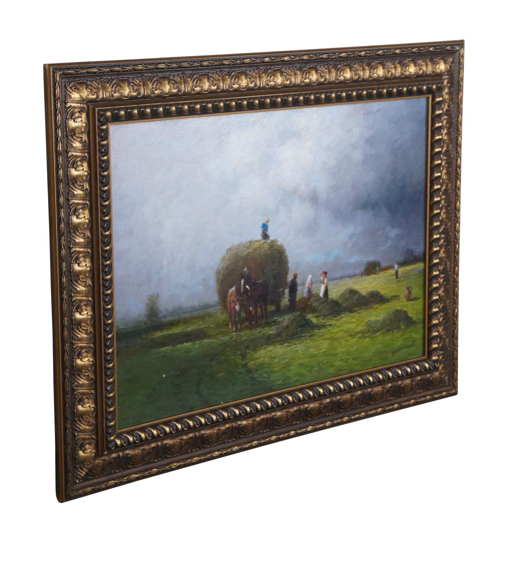 Very Good; Gently Used, small paint chip to the canvas on lower left near the carts trail in the grass