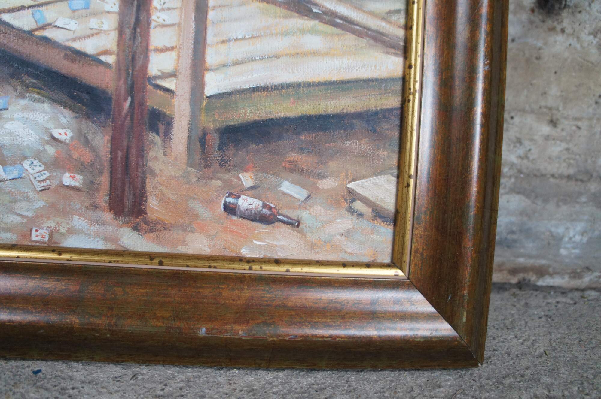 A large reproduction painting of "In Without Knocking" by Charles Marion Russell. Unsigned, framed in wood. Circa last quarter 20th century.