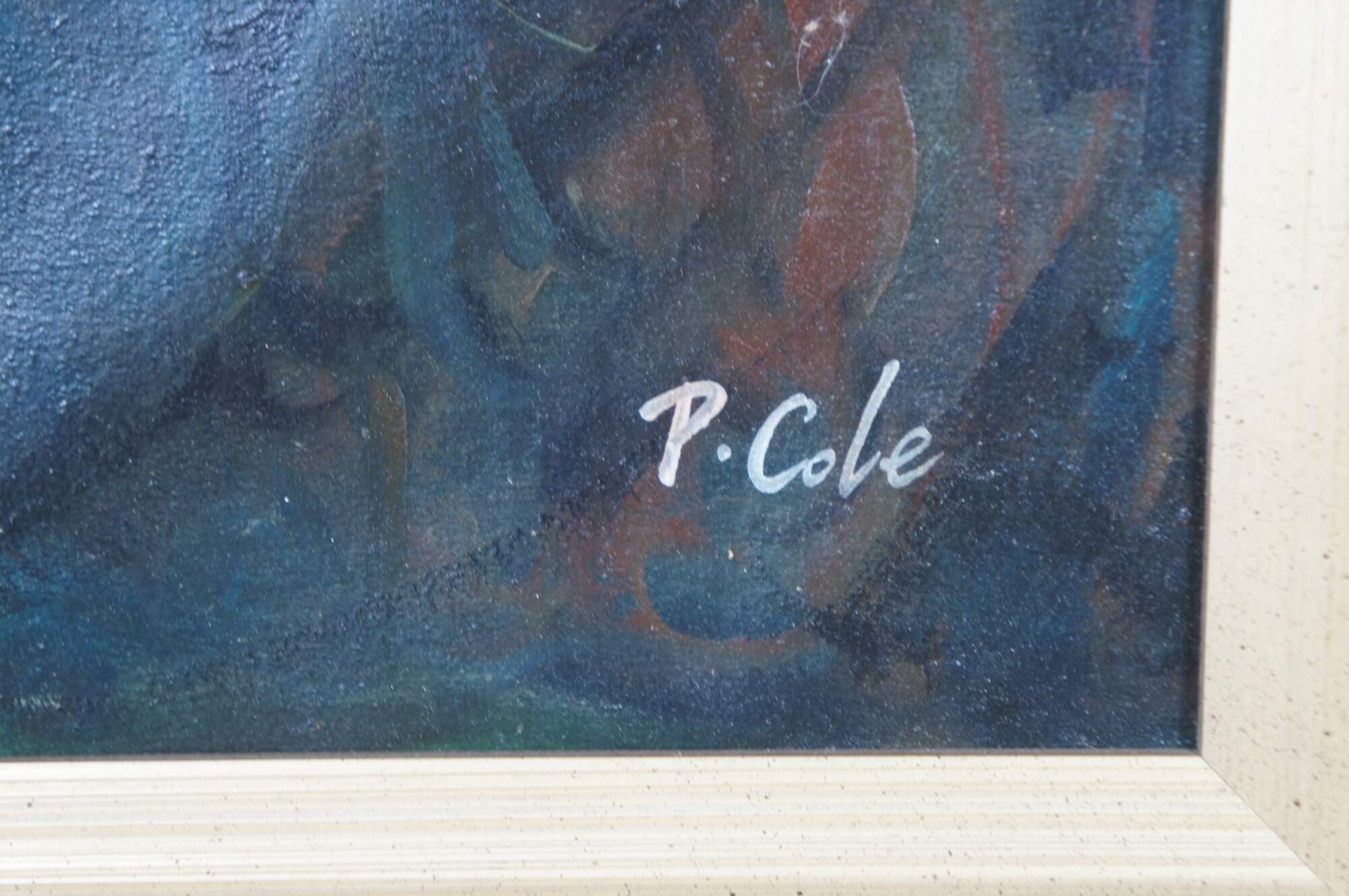 Alegoria De La Danza by P. Cole After Jose Royo (Spanish, B. 1941). The oil painting depicts three women in impressionist style dancing in flowing dresses surrounded by foliage. Signed lower right, canvas framed in French manner with gold finish.