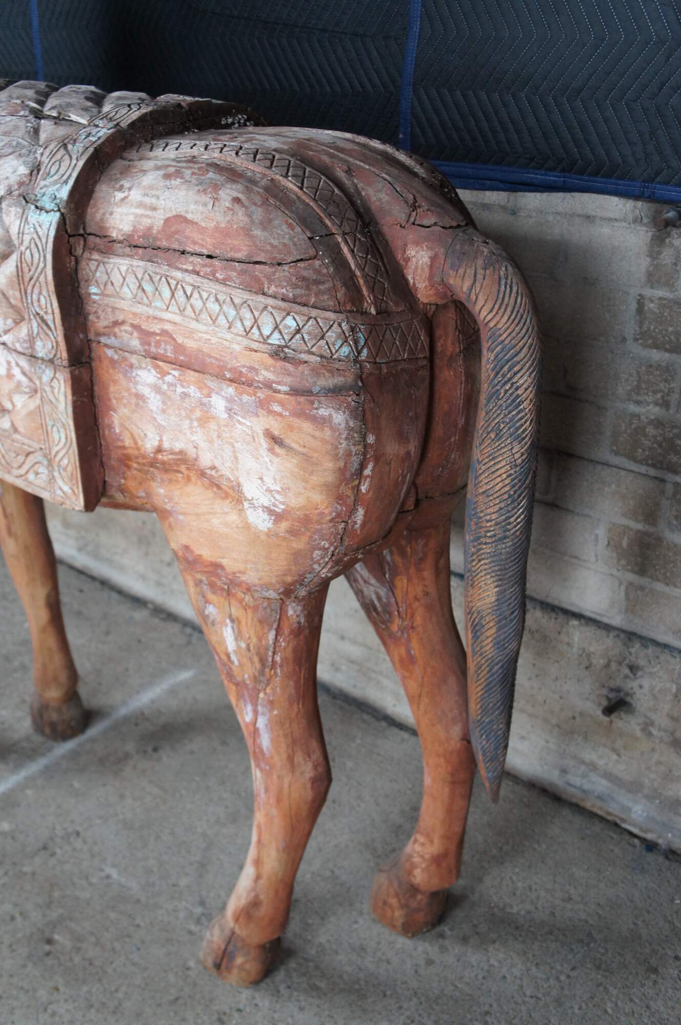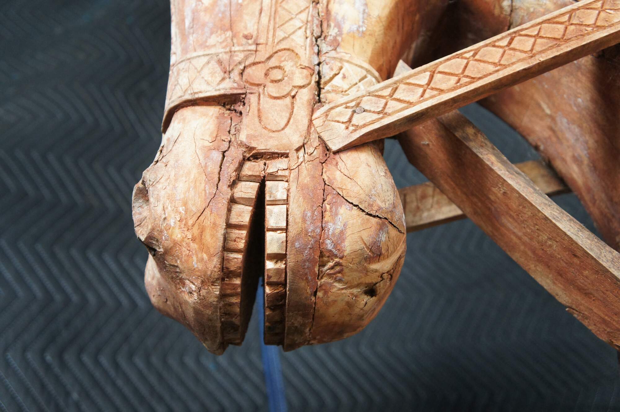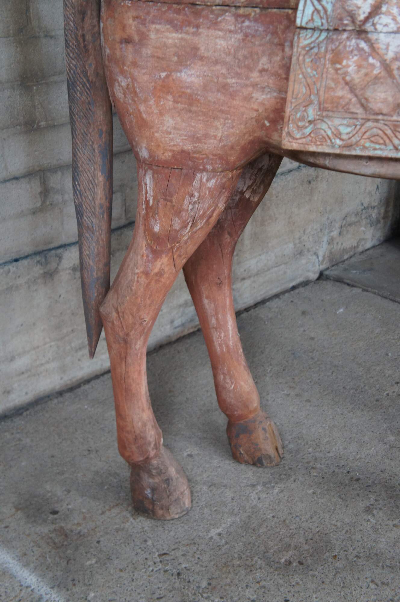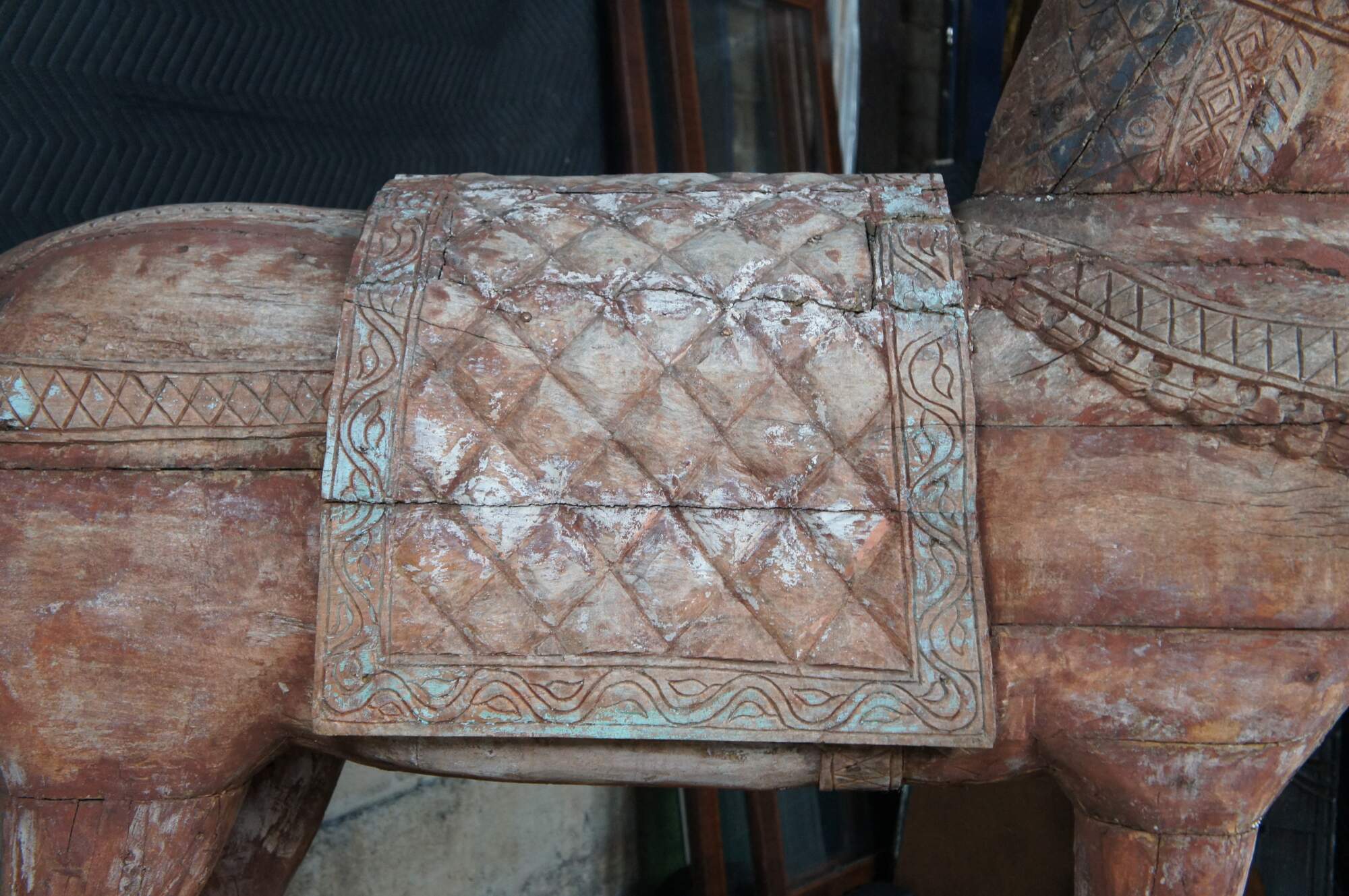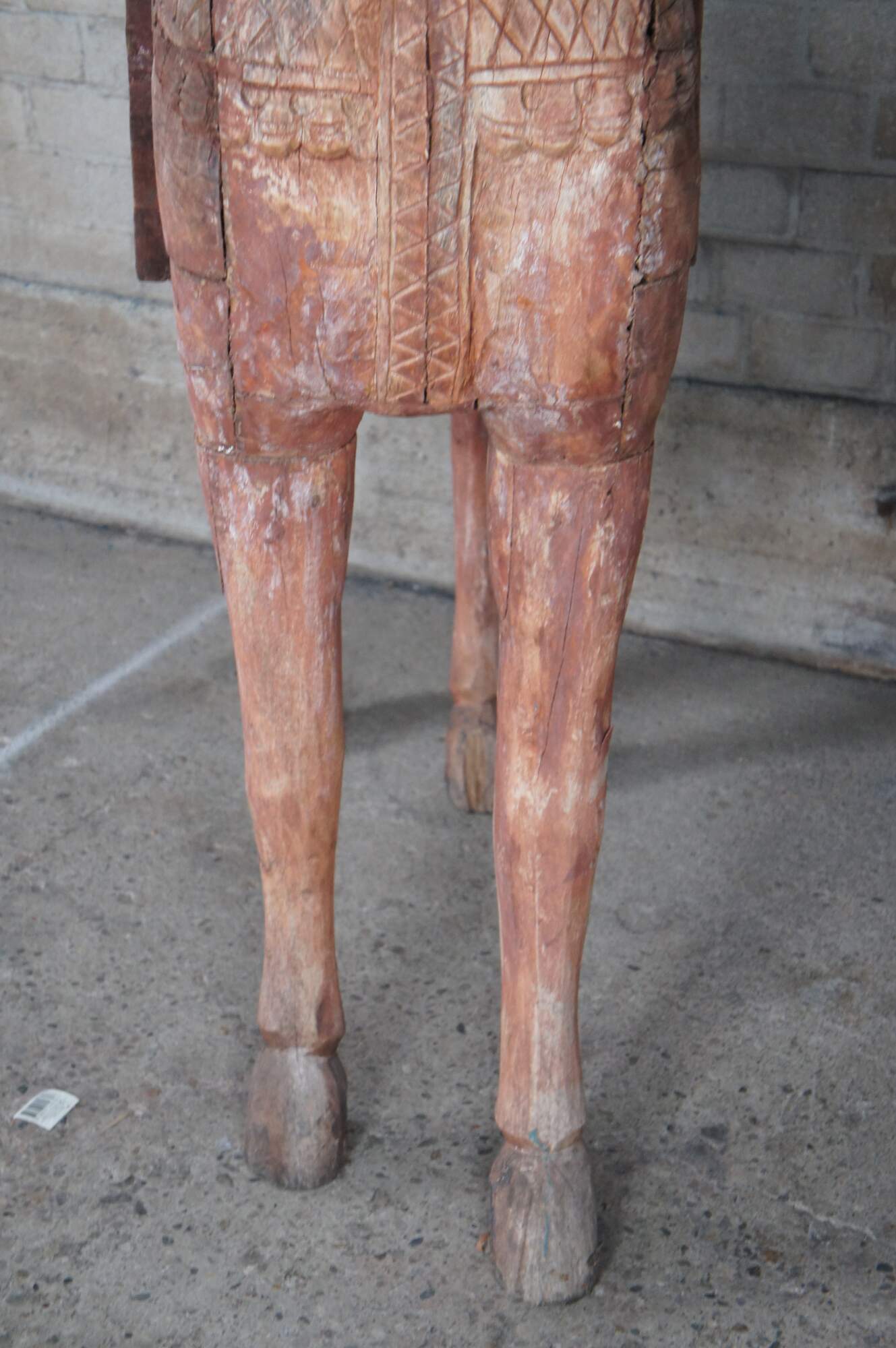 Very impressive pair of vintage lifesize horse sculptures or statues. Made of wood featuring a primitive / rustic asian design. Very heavy and sturdy.