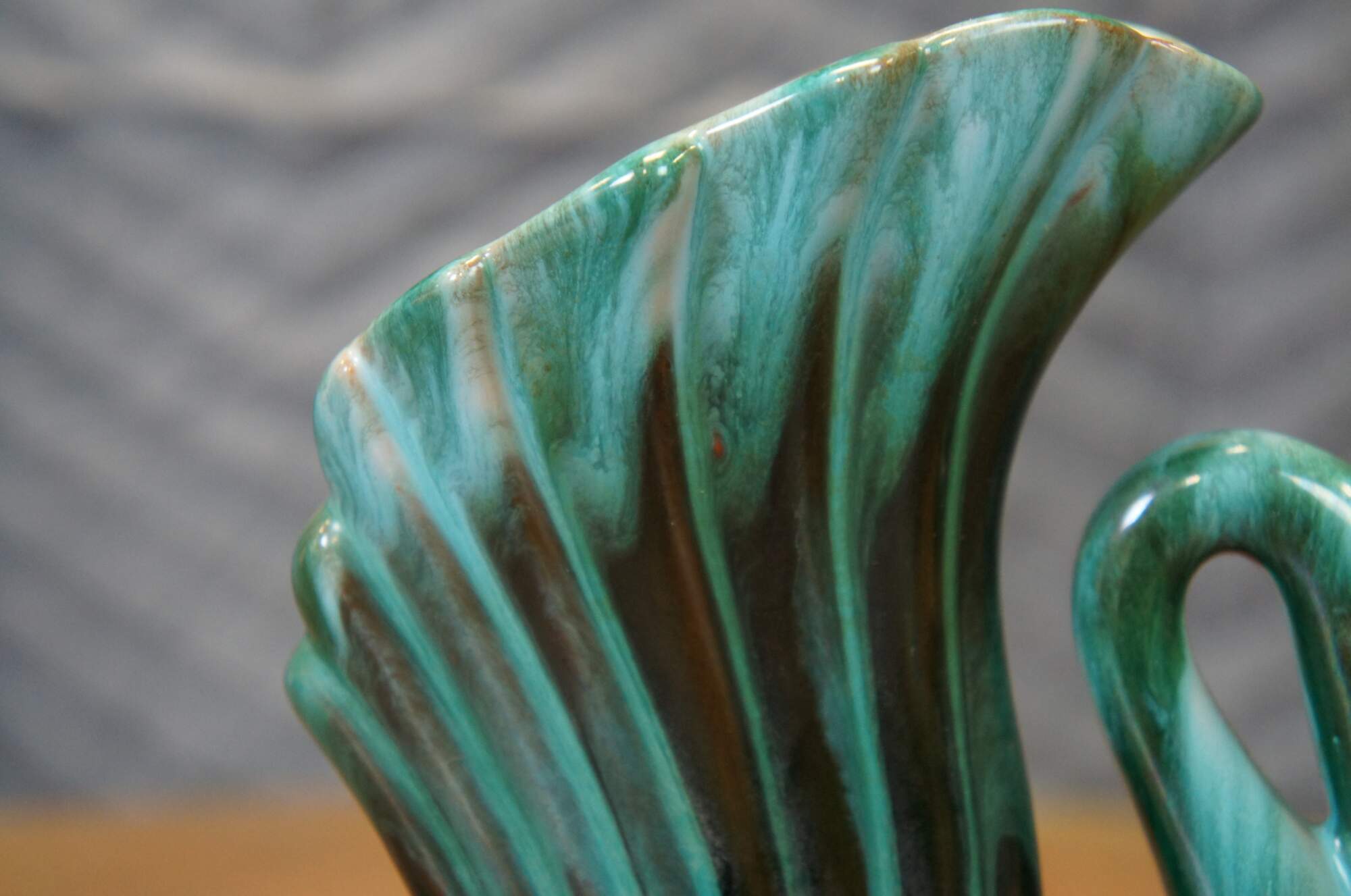 Mid to late 20th century Blue Mountain Pottery vase in the shape of a swan with raised wings, finished in a black and teal green / turquoise drip glaze. Marked on base.