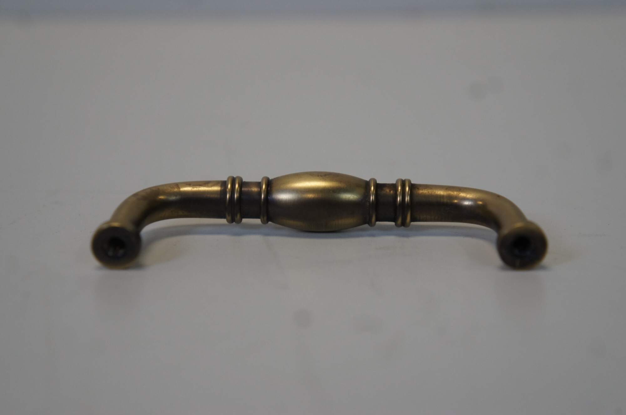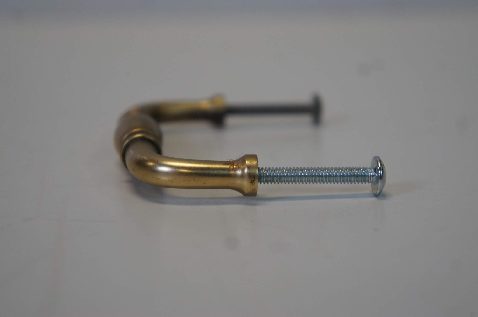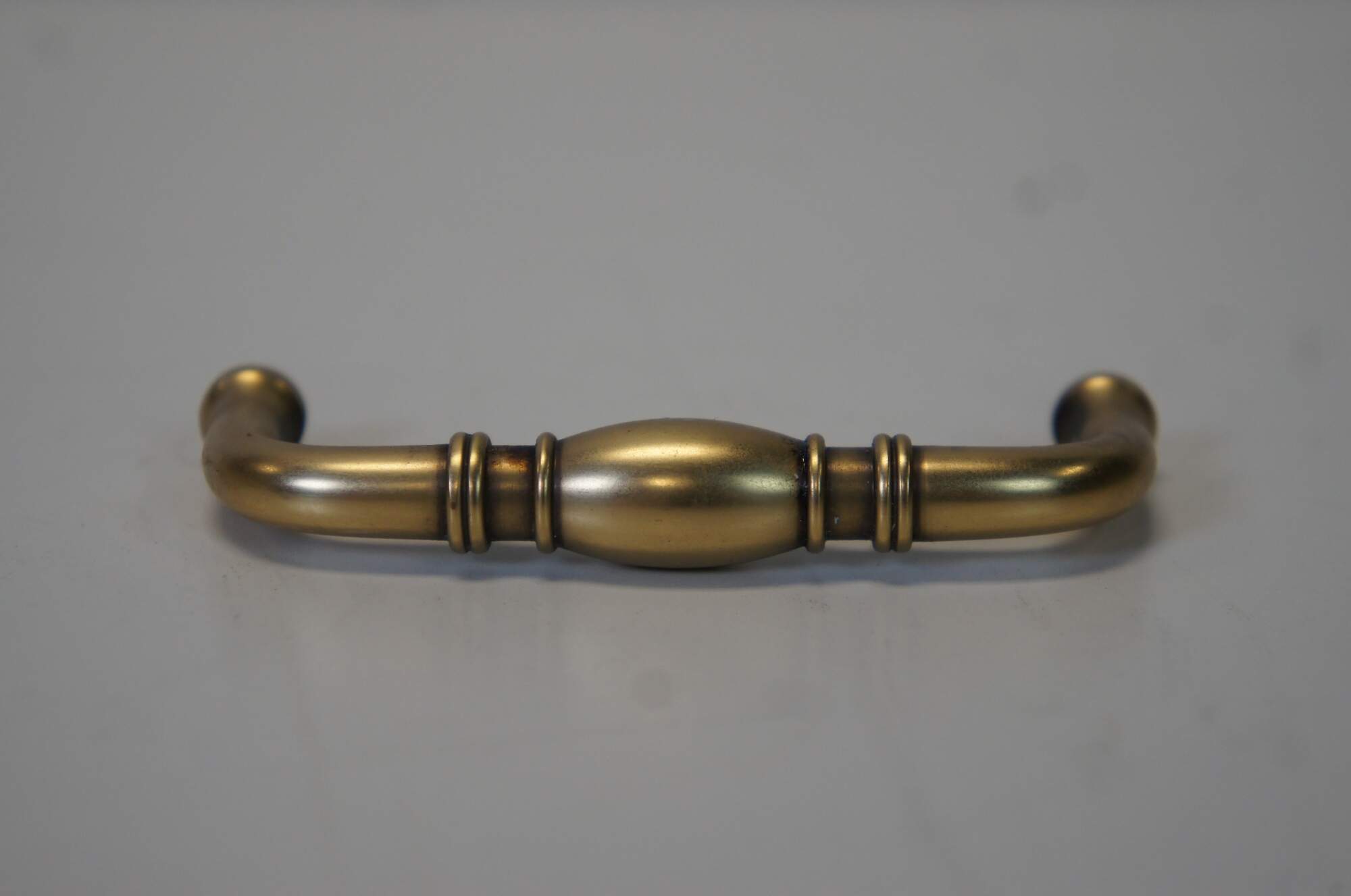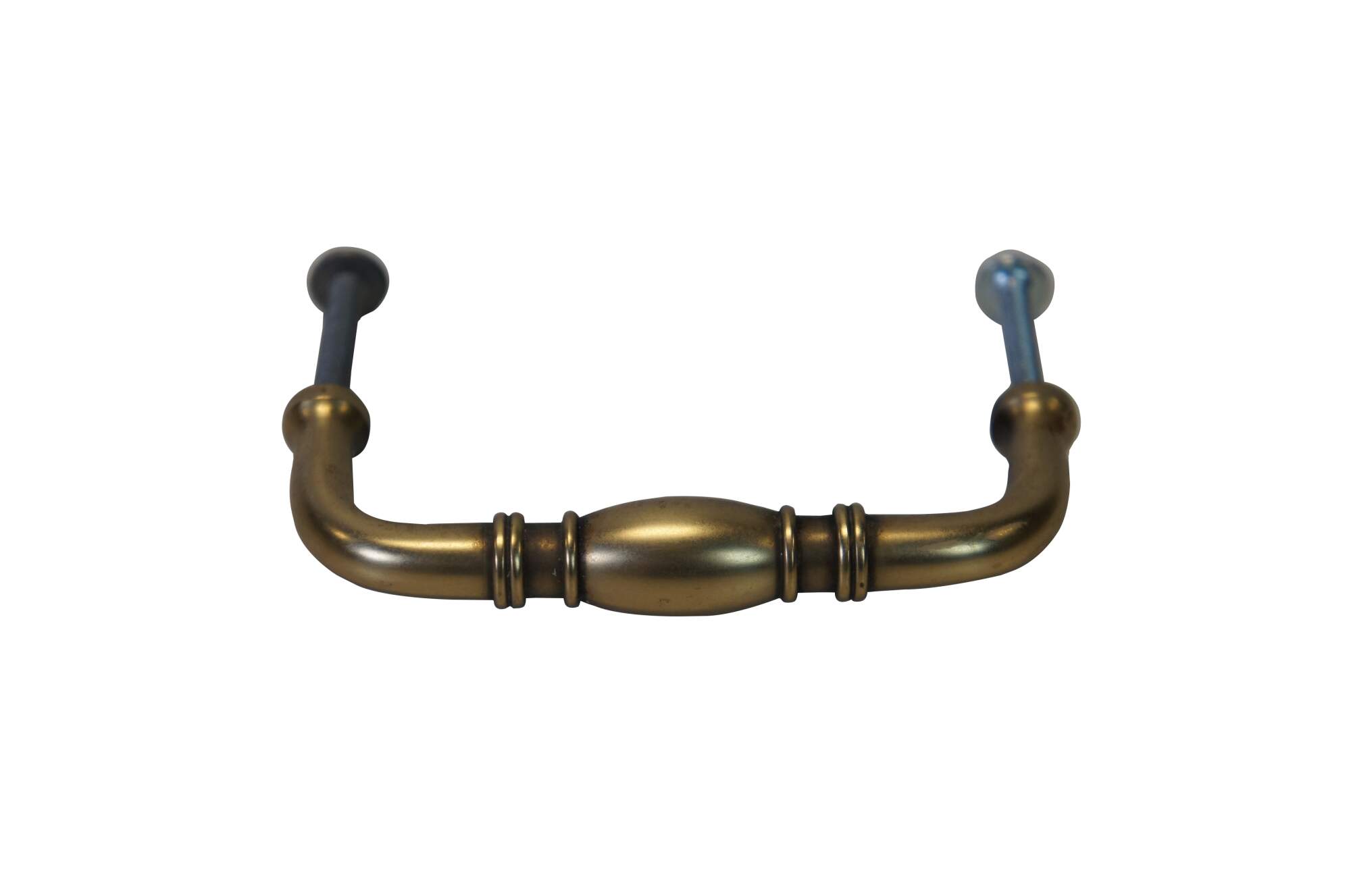 Late 20th century package of eight Hickory Hardware Somerset brass drawer / cabinet pulls. Item number HH74673-SN - 1-3/4" x 3/4". Produced by Belwith Products LLC. Made in Vietnam.