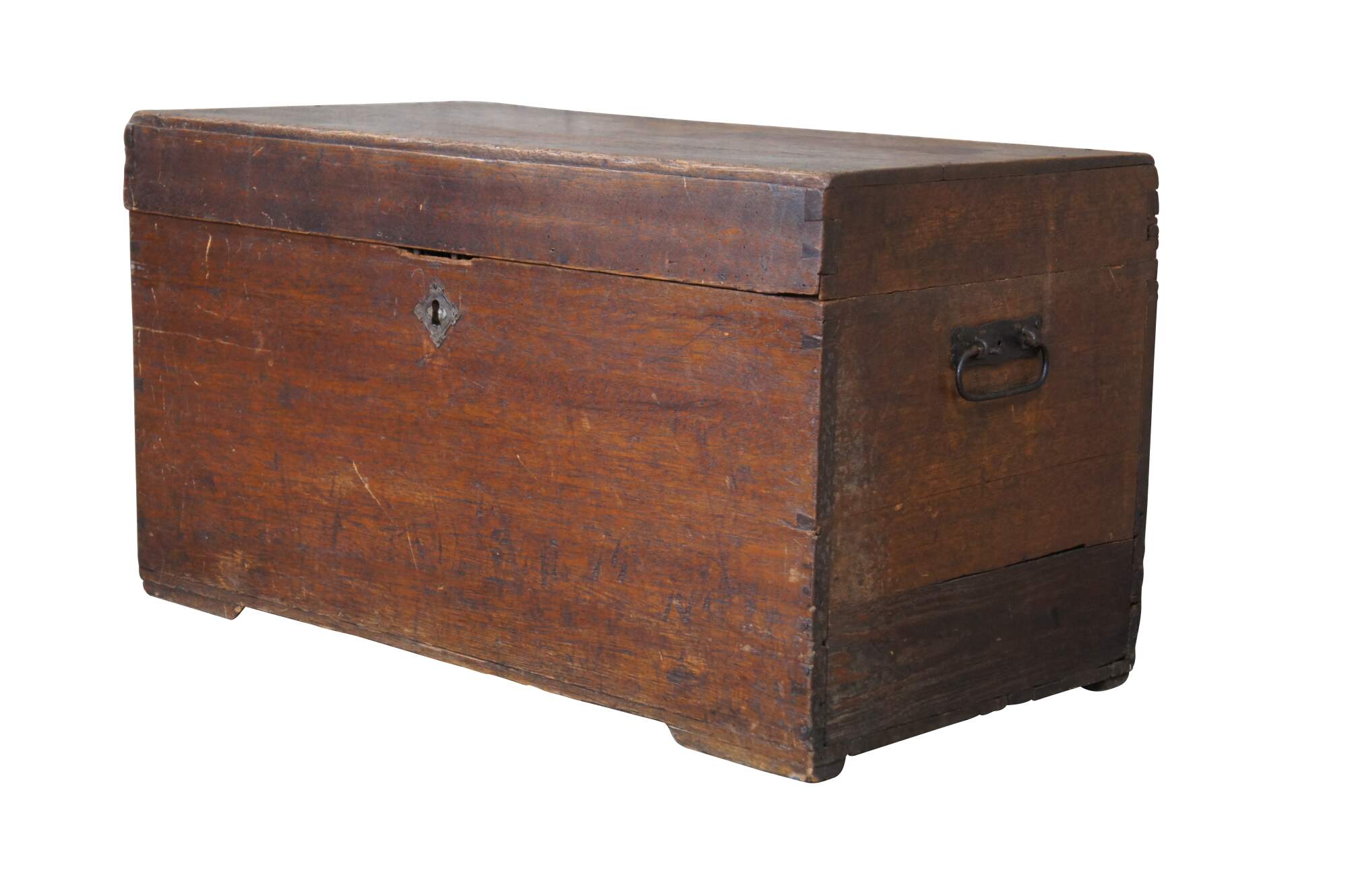 Early 20th Century antique trunk. Features a mahogany case with hand dovetailed joinery.