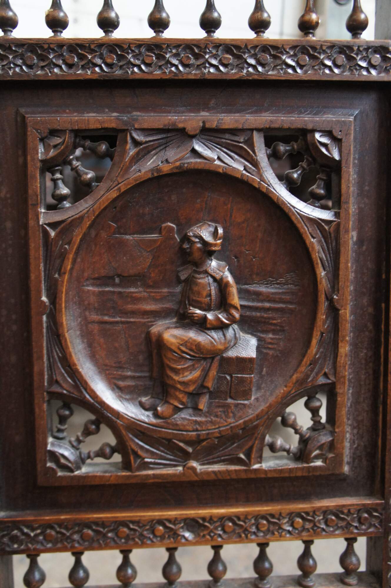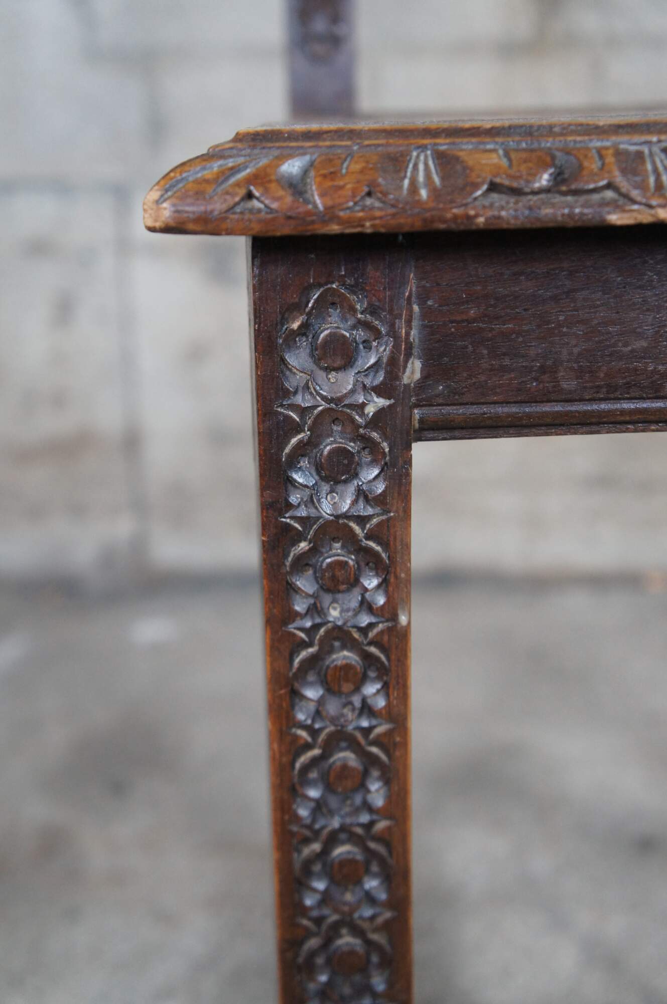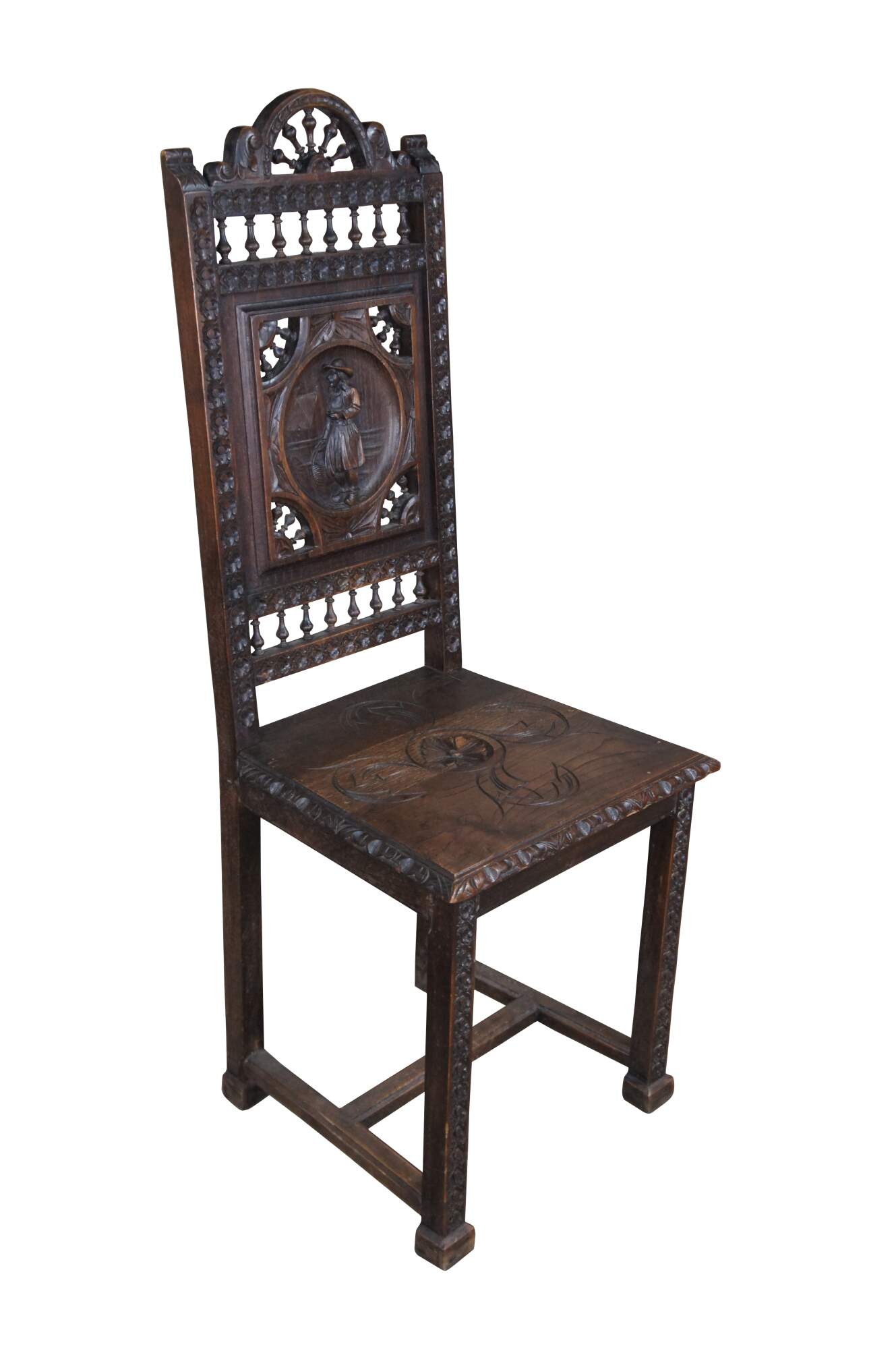 6 Antique 19th C. French Breton Brittany Figural Carved Chestnut Dining Chairs